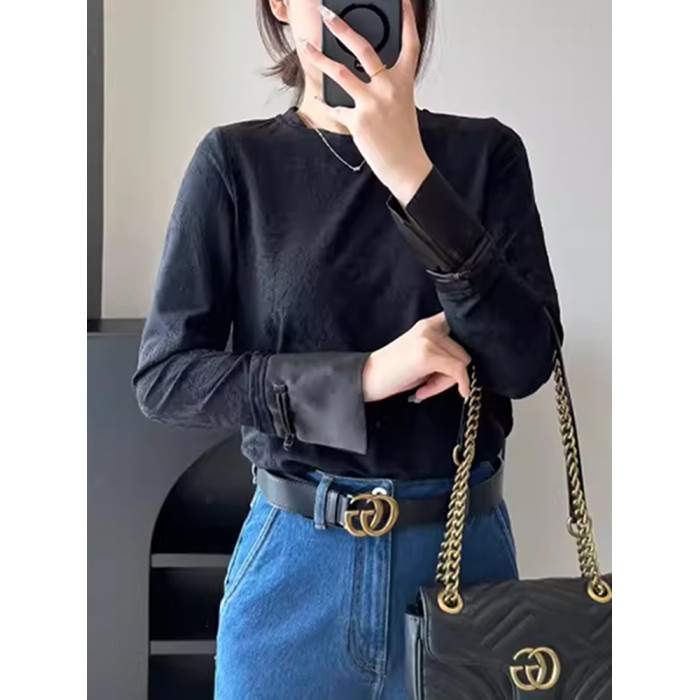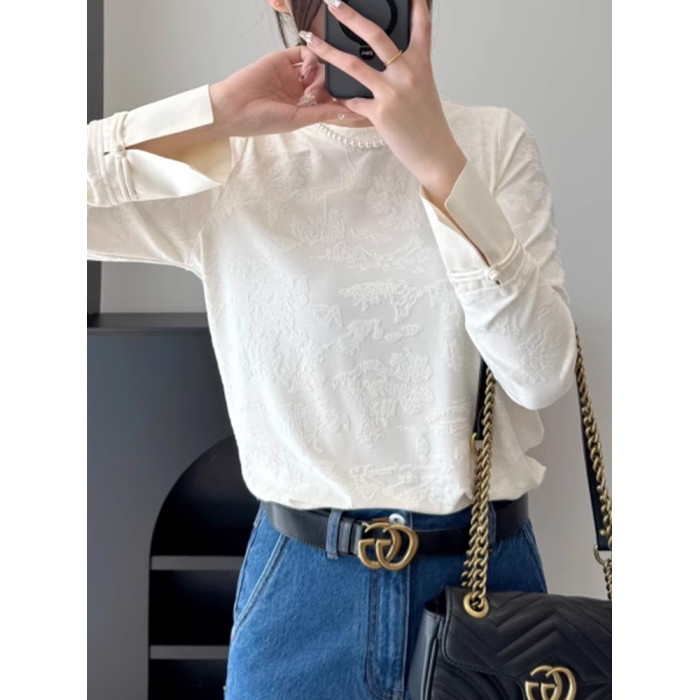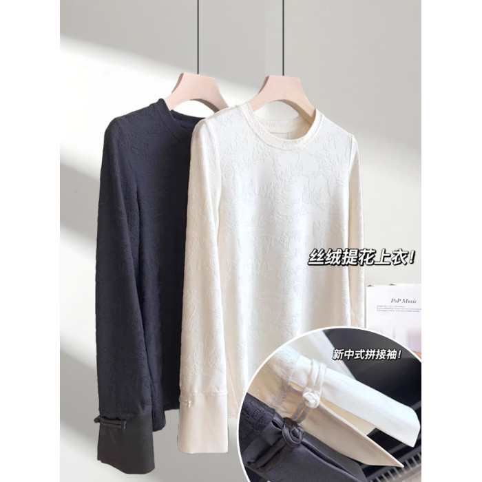 【浮雕提花】新中式圓領長袖打底衫2026秋季新款國風襯衫T恤上衣