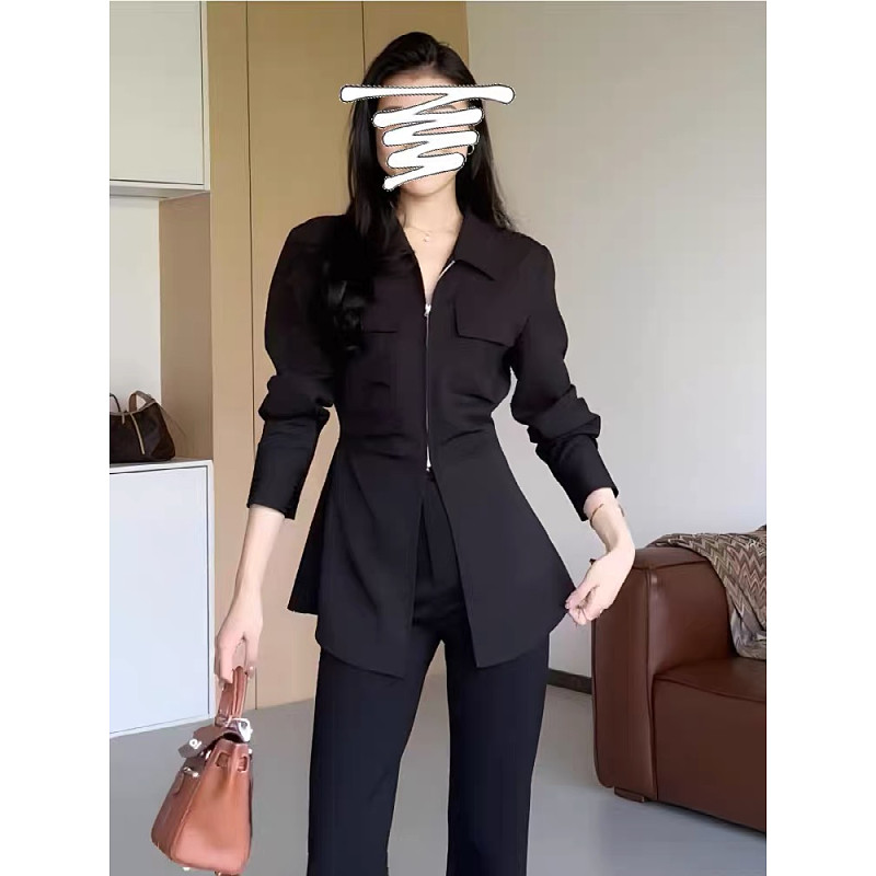 2026早秋新款大碼女裝胖妹妹襯衫收腰側邊褶皺時尚超百搭顯瘦上衣