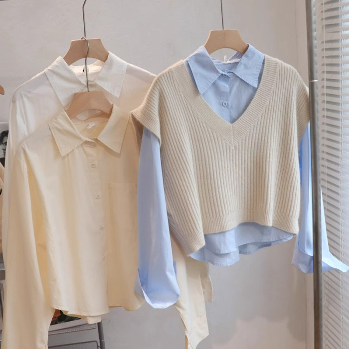 短款襯衫女秋冬純棉新款小個子內搭曡穿襯衣長袖計感小衆白色上衣