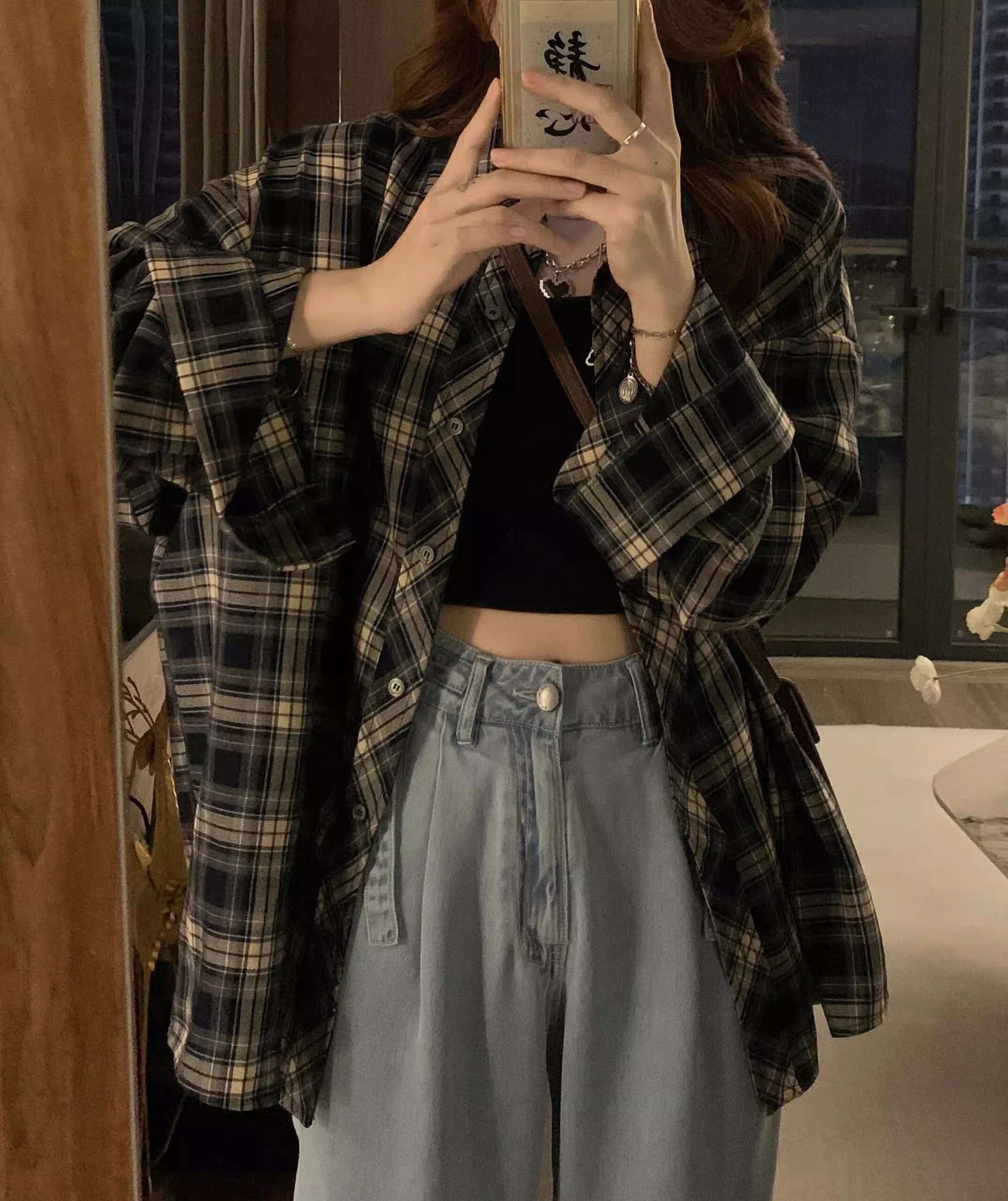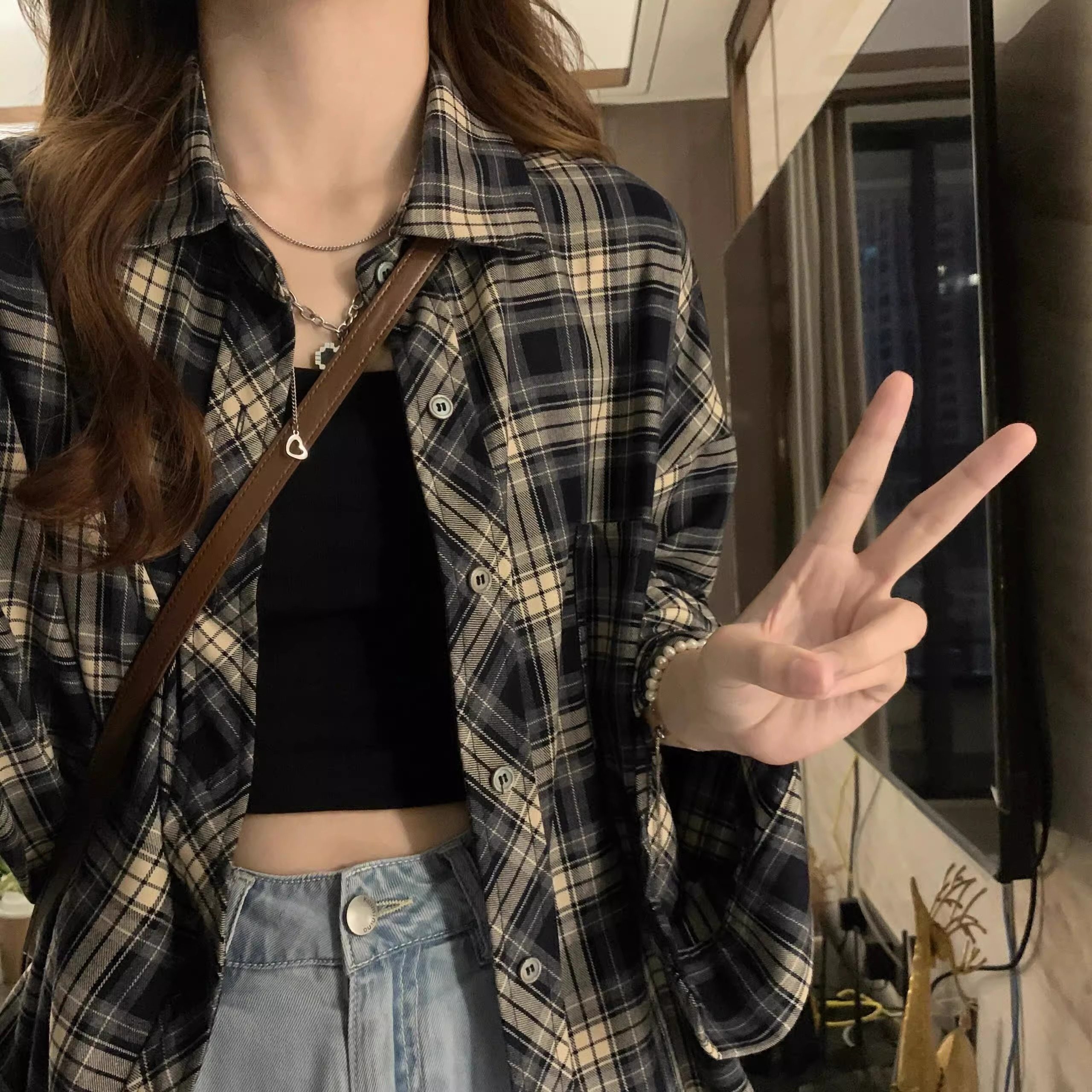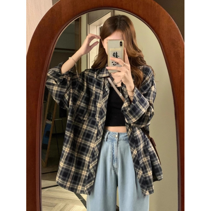 復古格子襯衫女夏季2025年新款襯衣設計感薄款外搭防曬上衣外套女