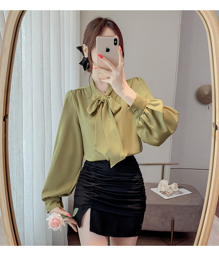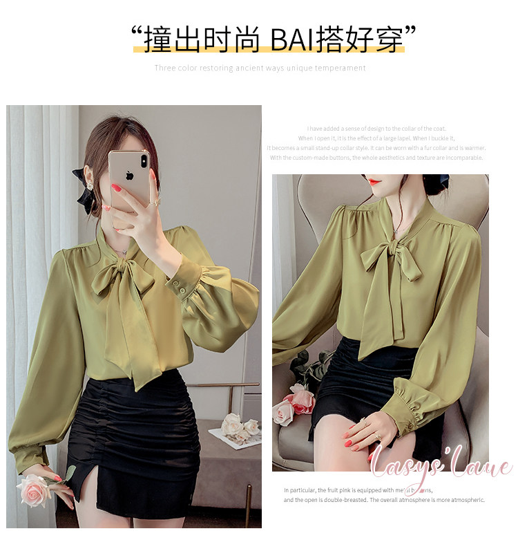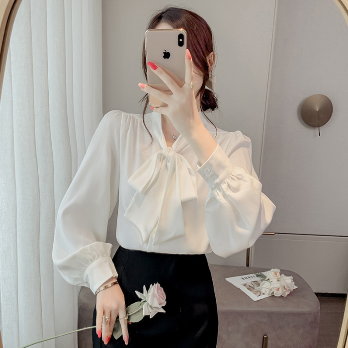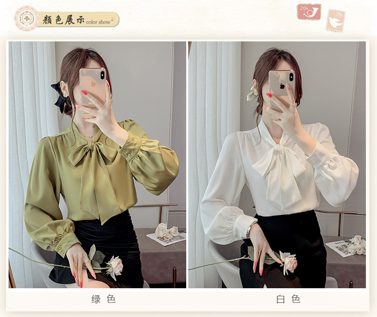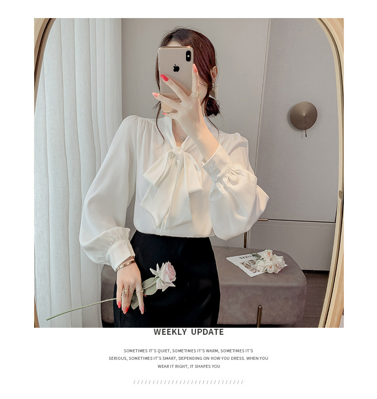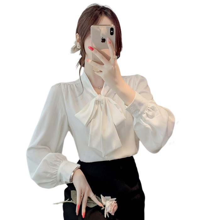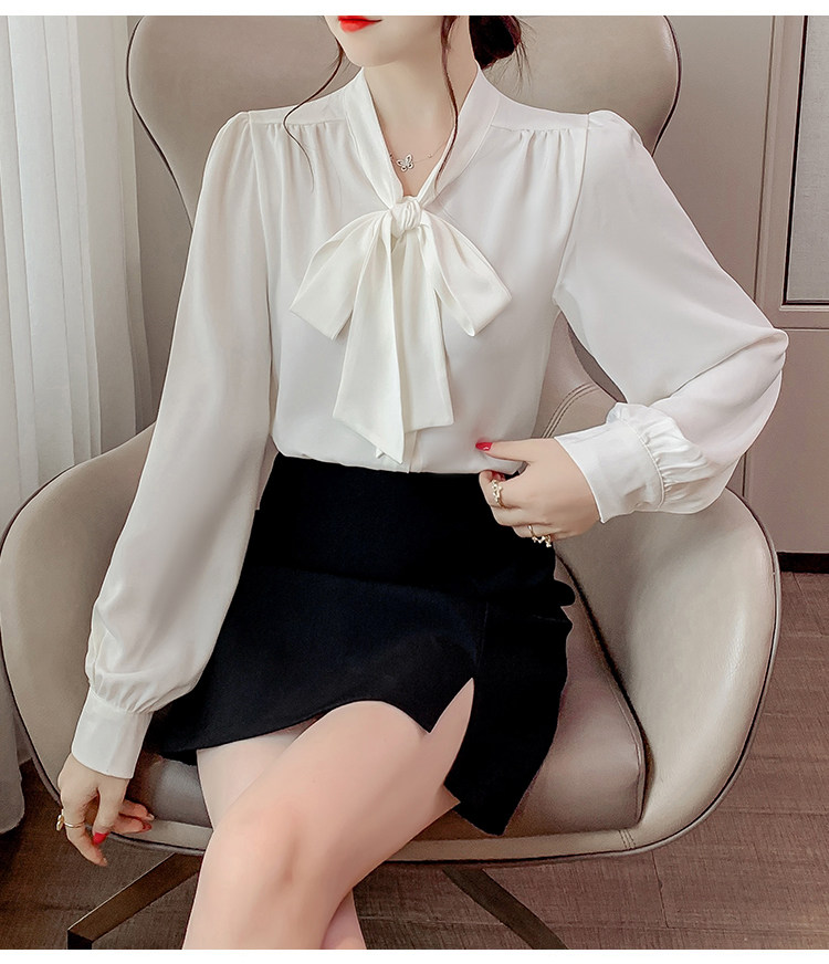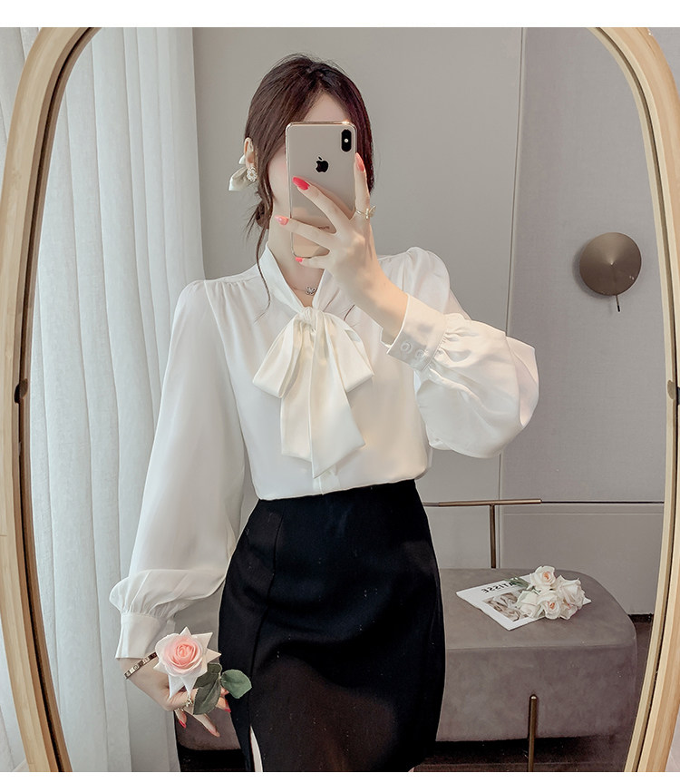 法式蝴蝶結襯衫女春秋2025年新款長袖上衣小個子內搭白襯衣雪紡衫