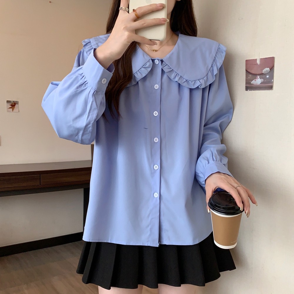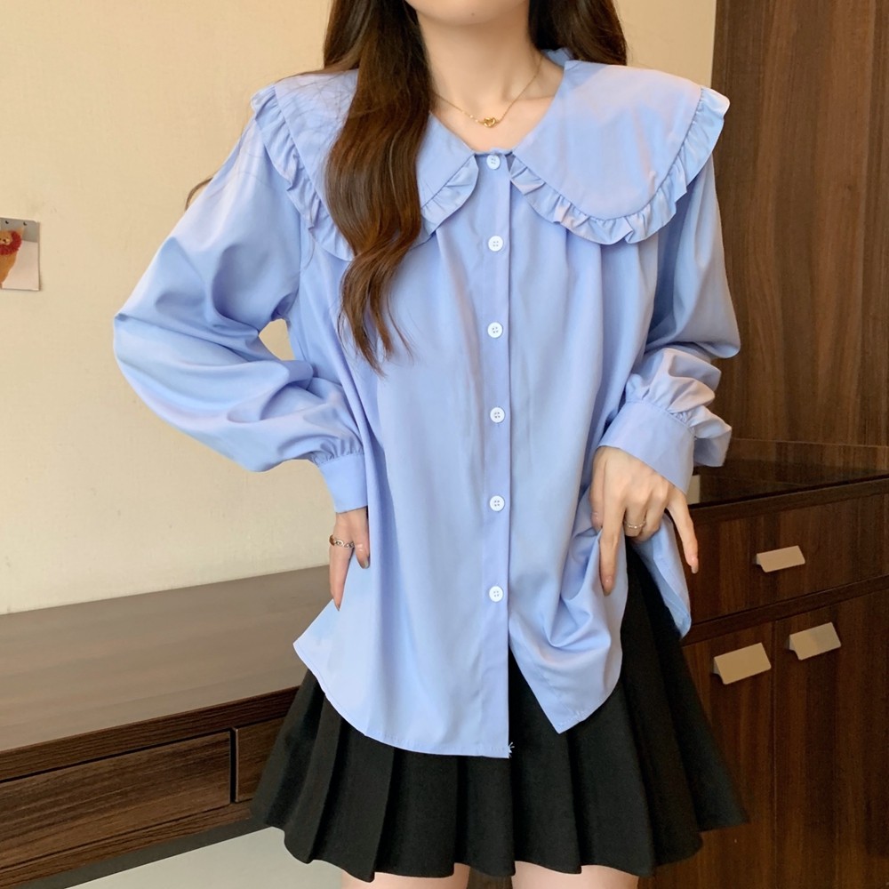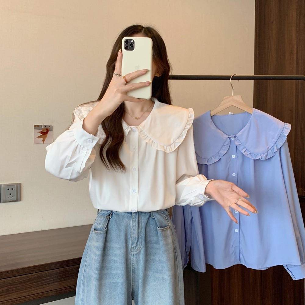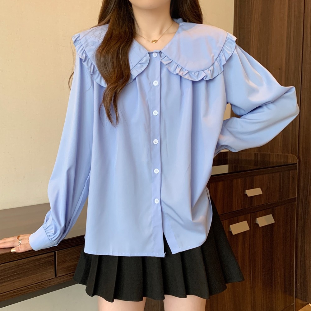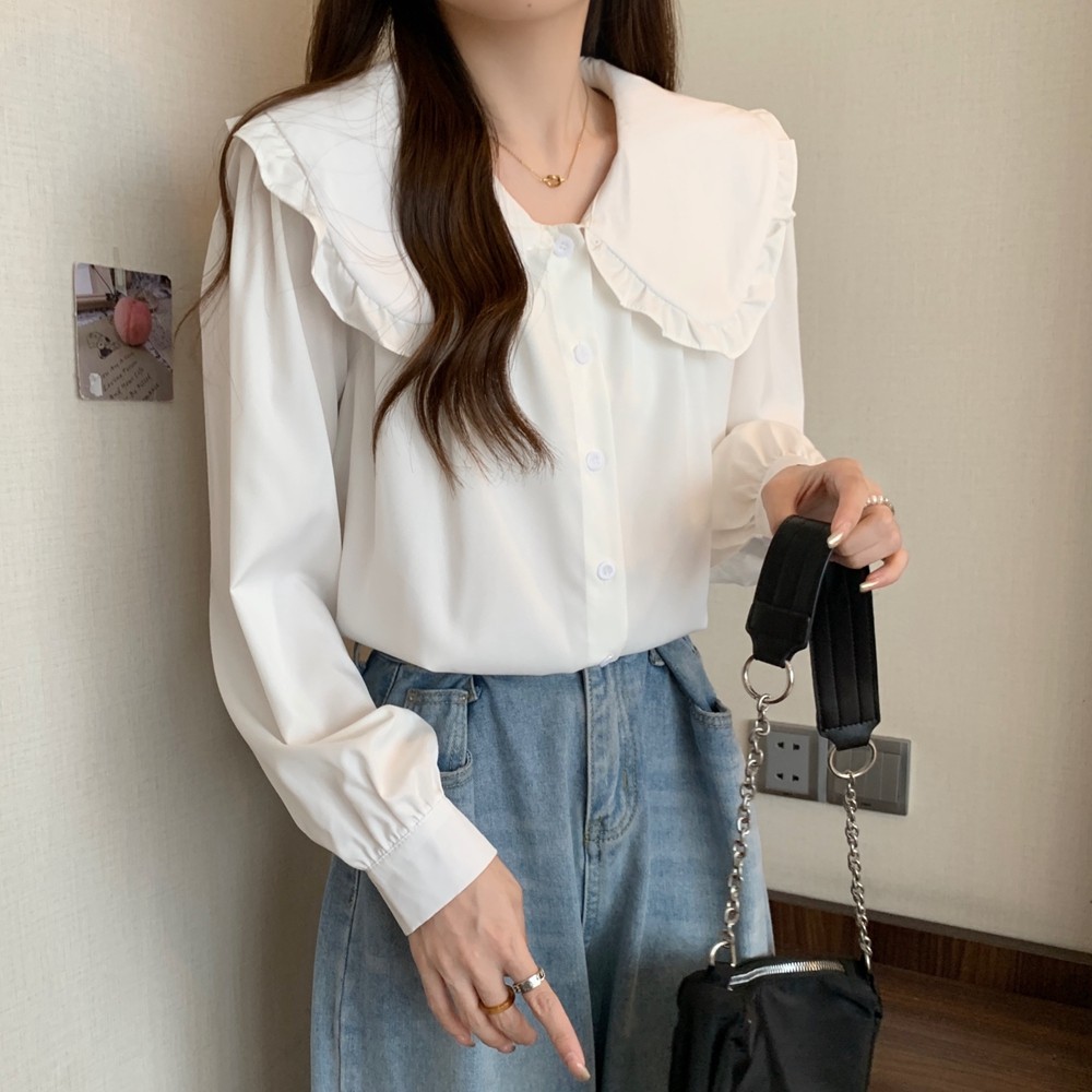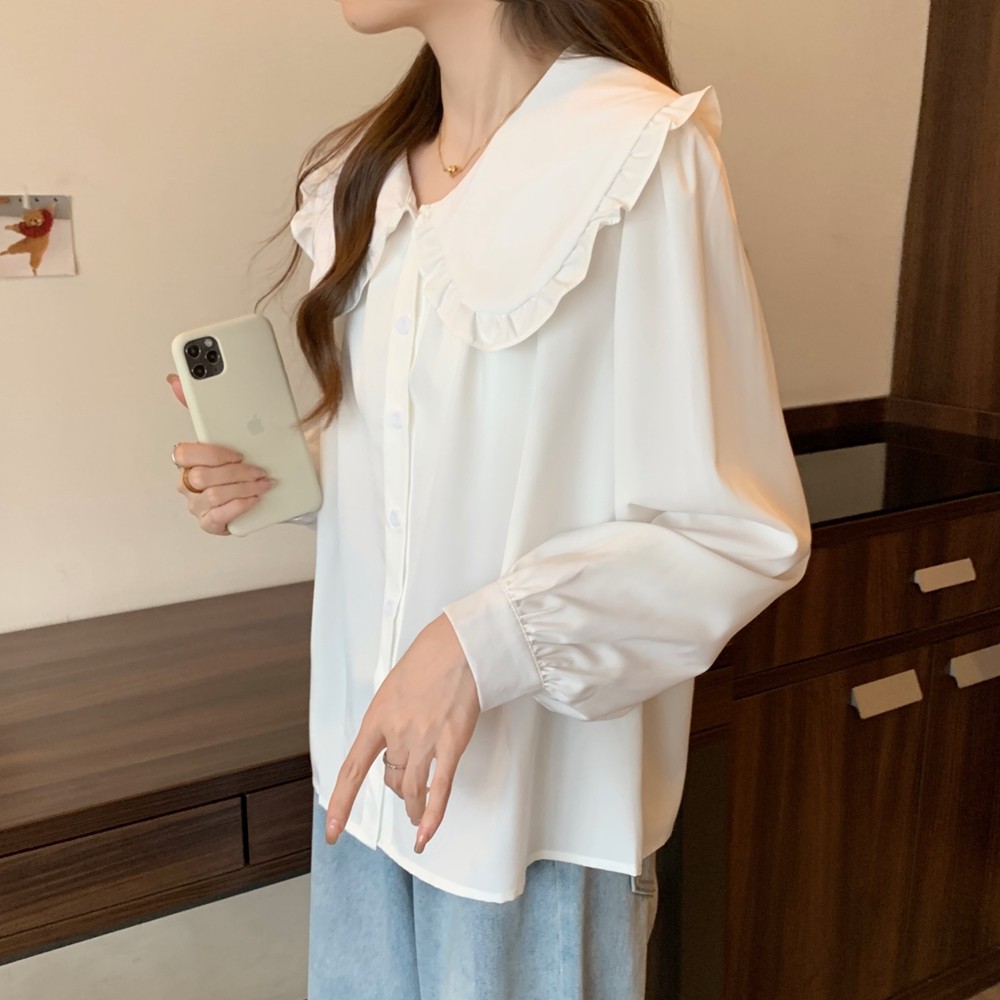 大碼法式娃娃領白色長袖襯衫女早春季設計感小衆顯瘦洋氣減齡上衣