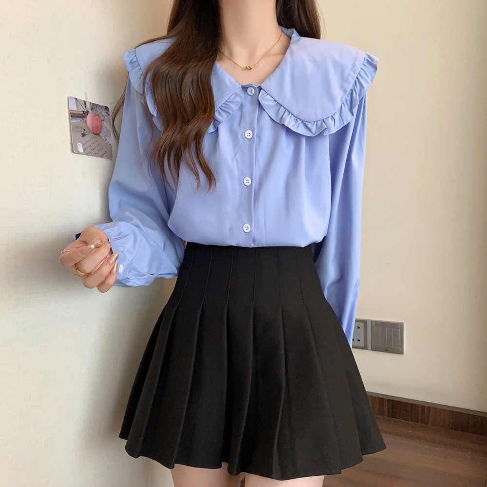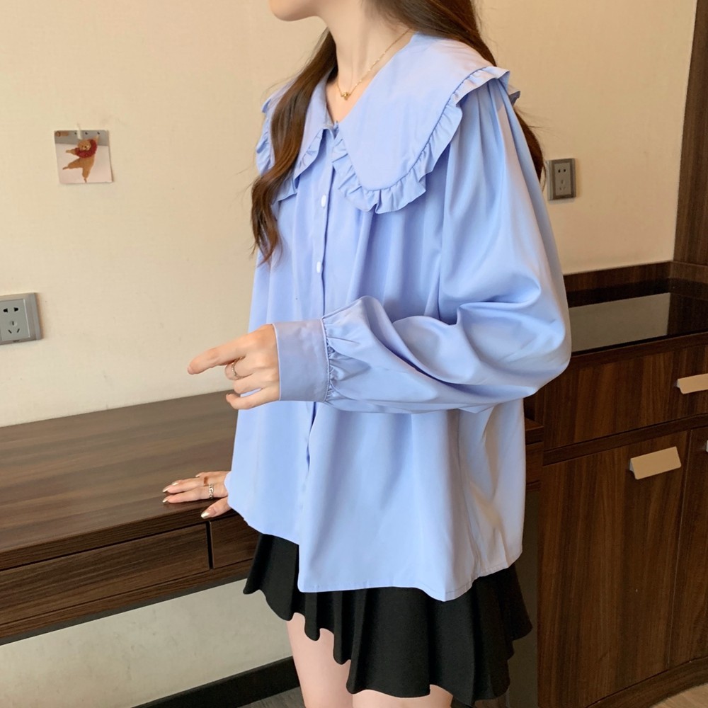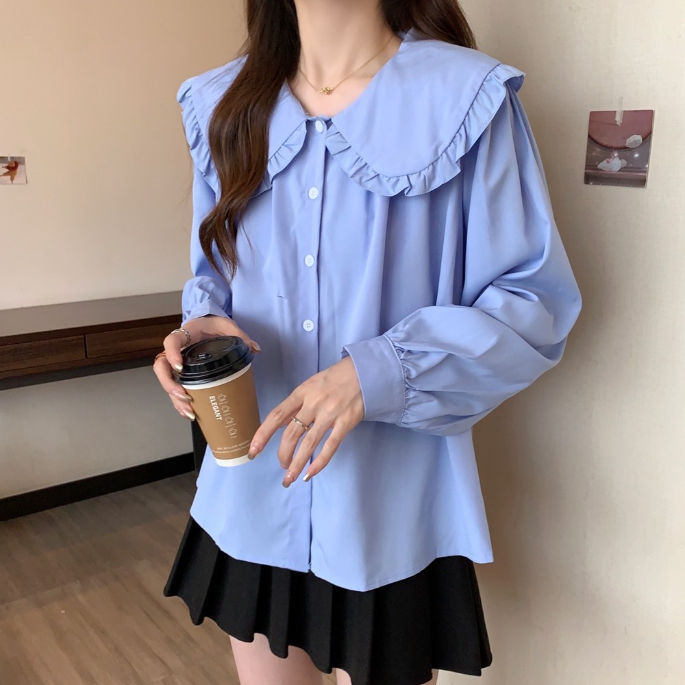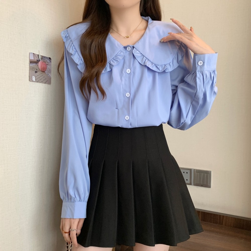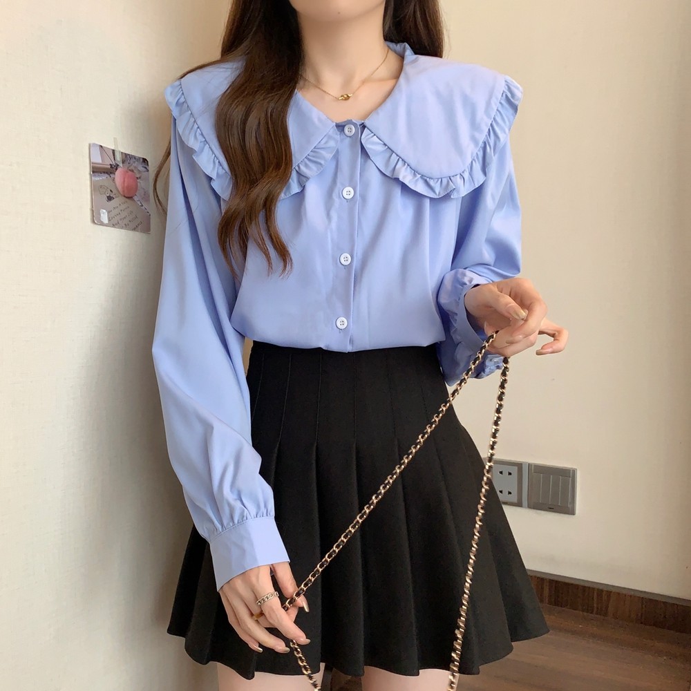 大碼法式娃娃領白色長袖襯衫女早春季設計感小衆顯瘦洋氣減齡上衣
