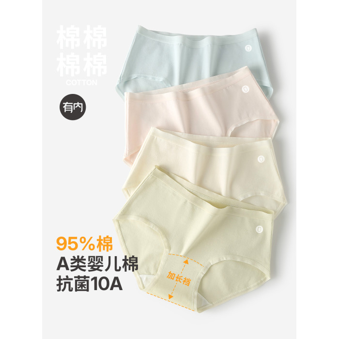 有內女士內褲女純棉抗菌襠100%棉襠無痕女生a類少女加長襠三角褲