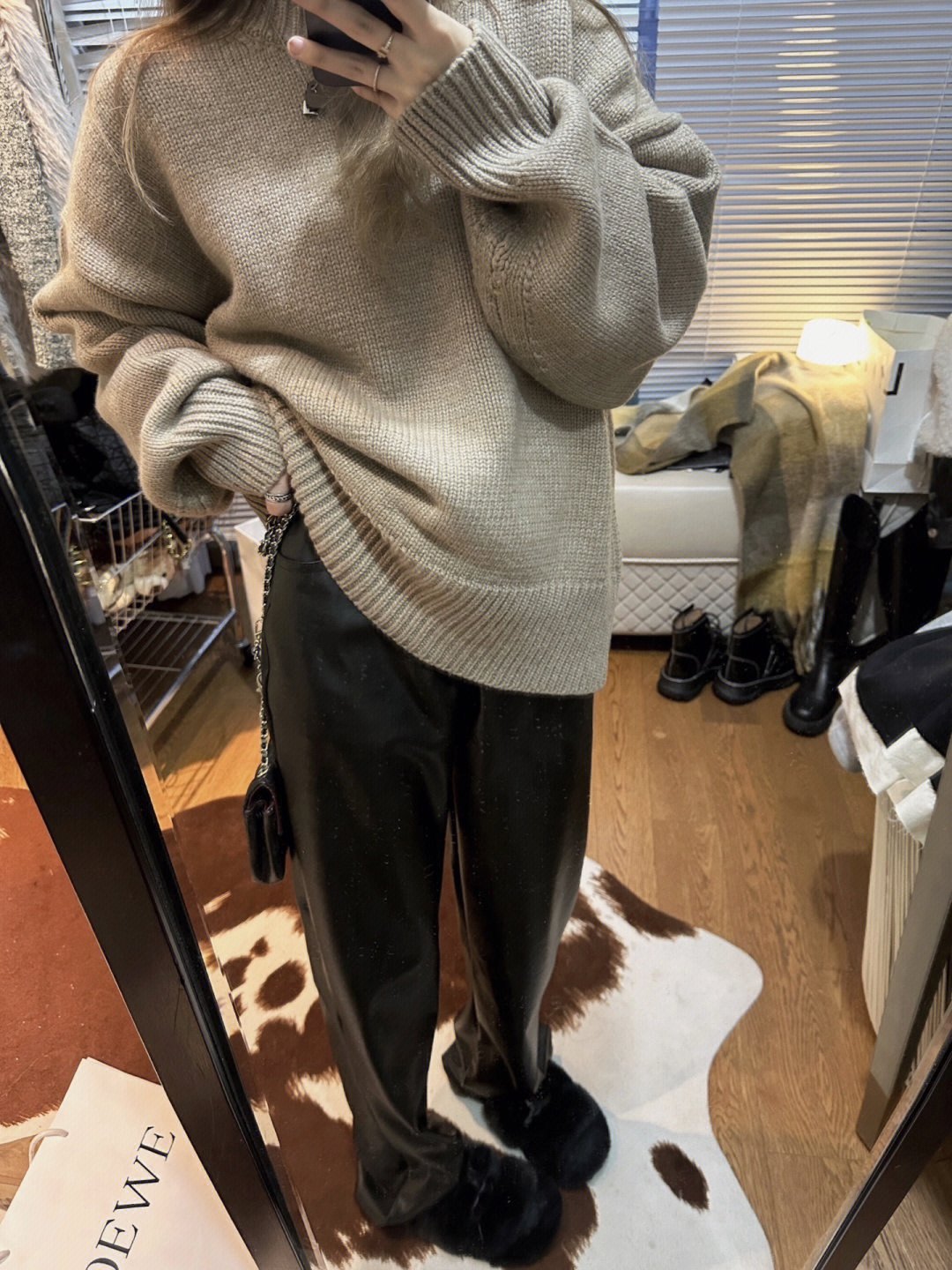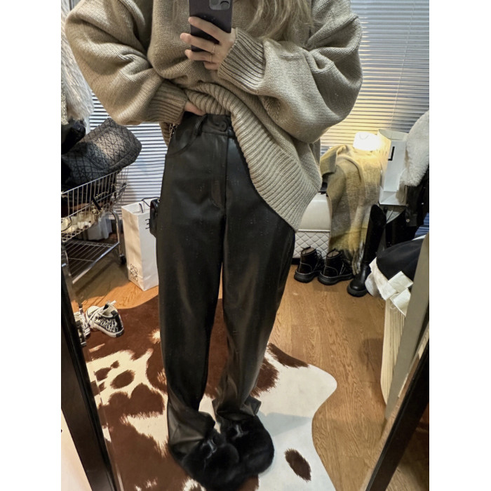 rose褲子女秋冬高腰休閒寬鬆濶腿窄版直筒褲小個子拖地褲加絨皮褲