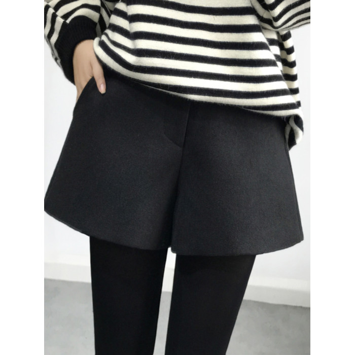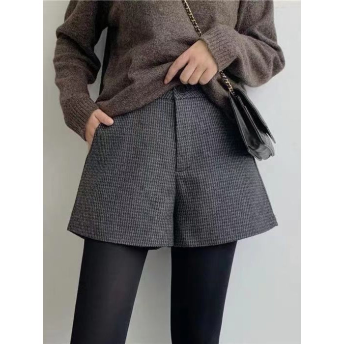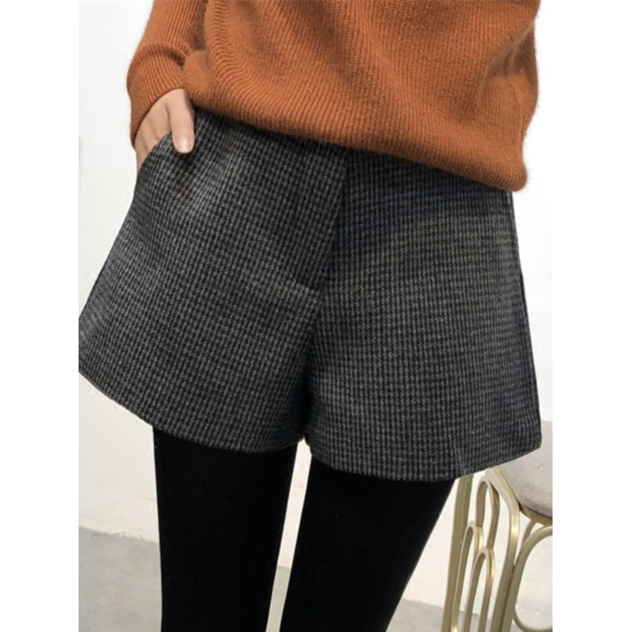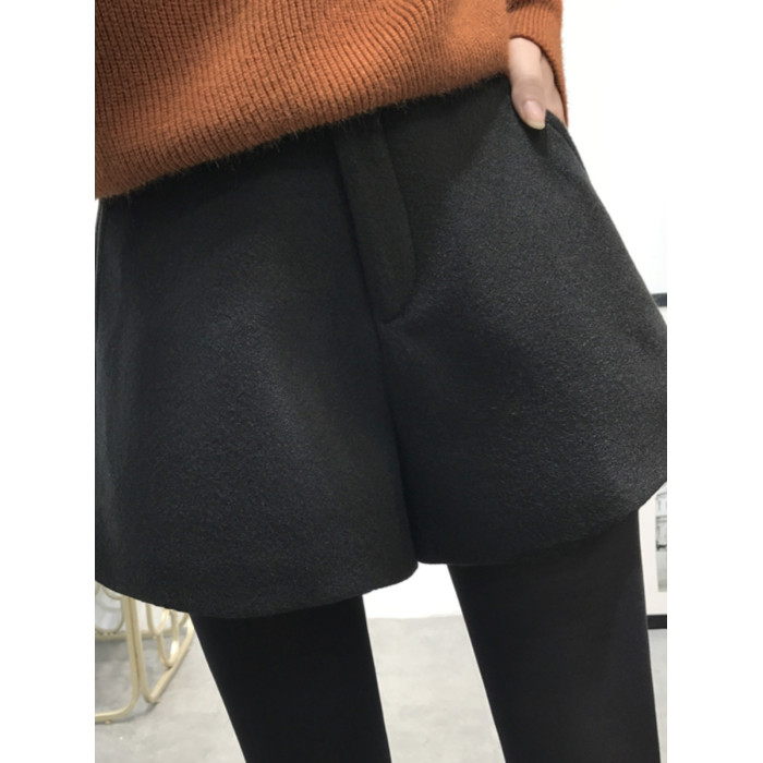 大碼毛呢短褲女2025秋冬新款高腰A字濶腿休閒褲胖mm外穿打底靴褲