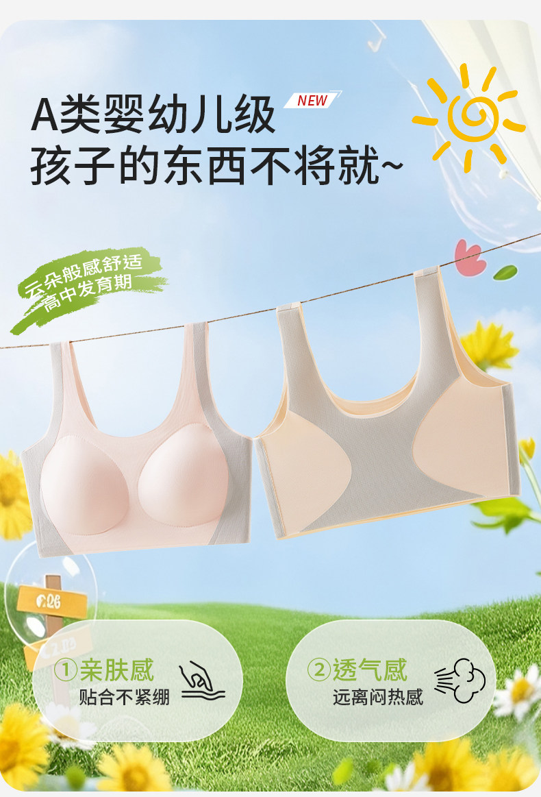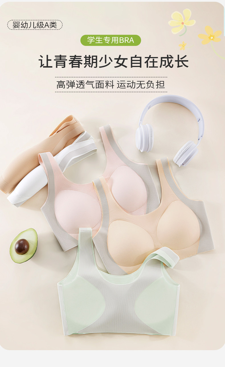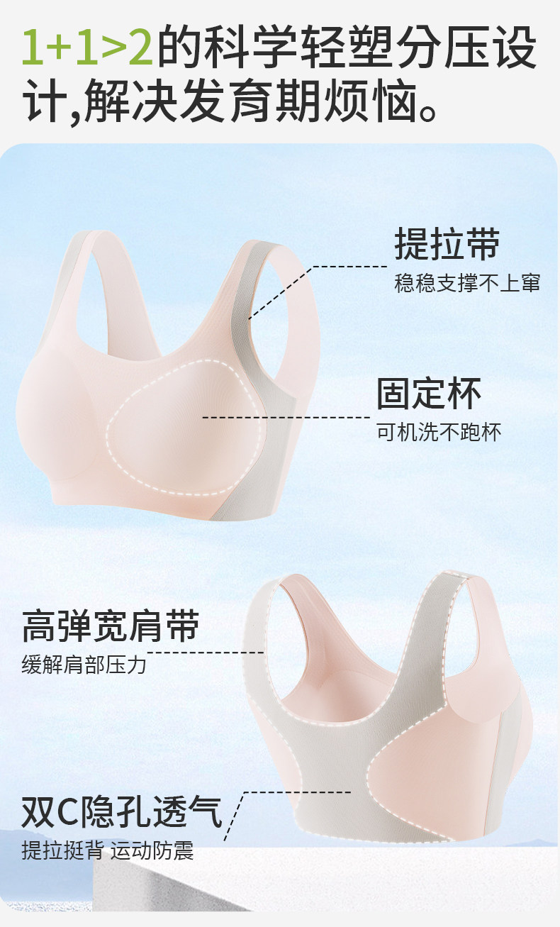 少女內衣初中生學生青春期發育期女大童女生無痕文胸運動防震背心