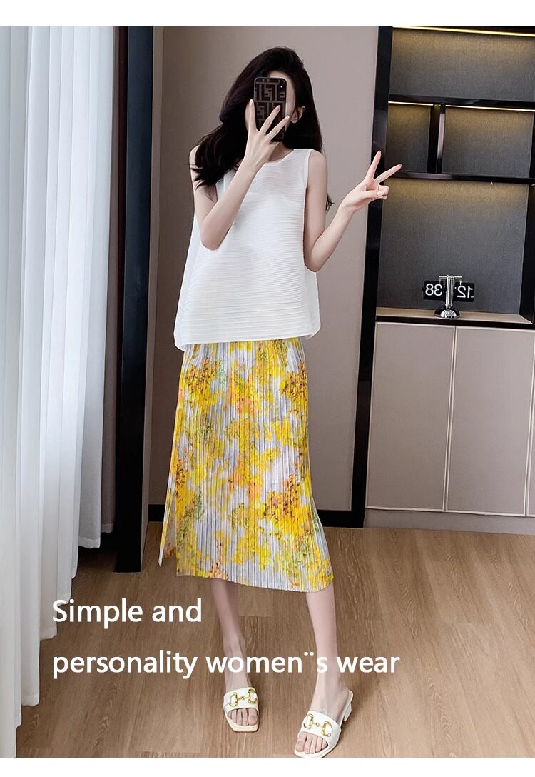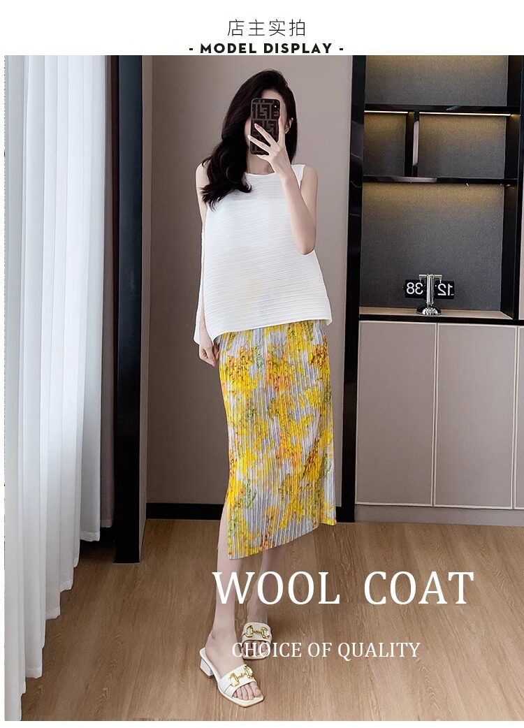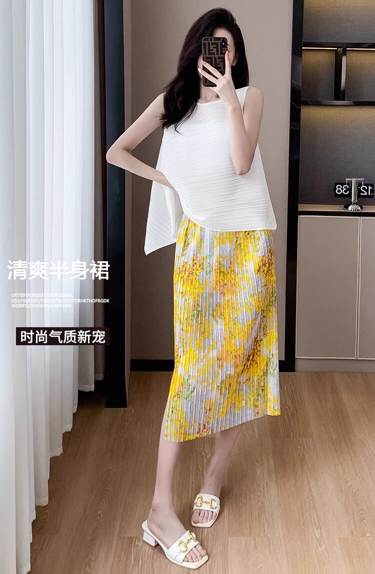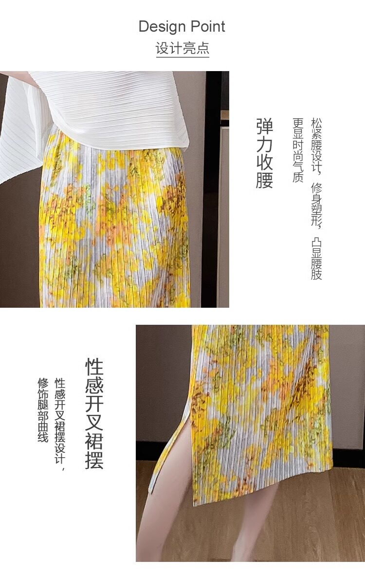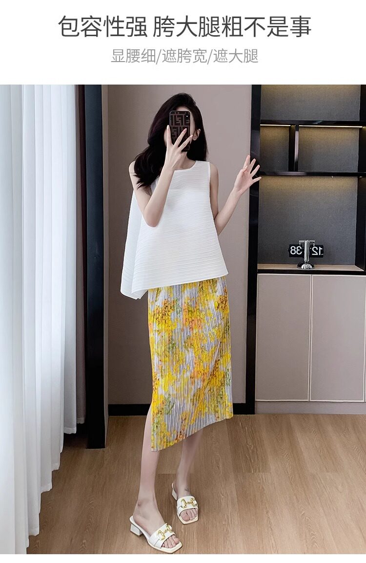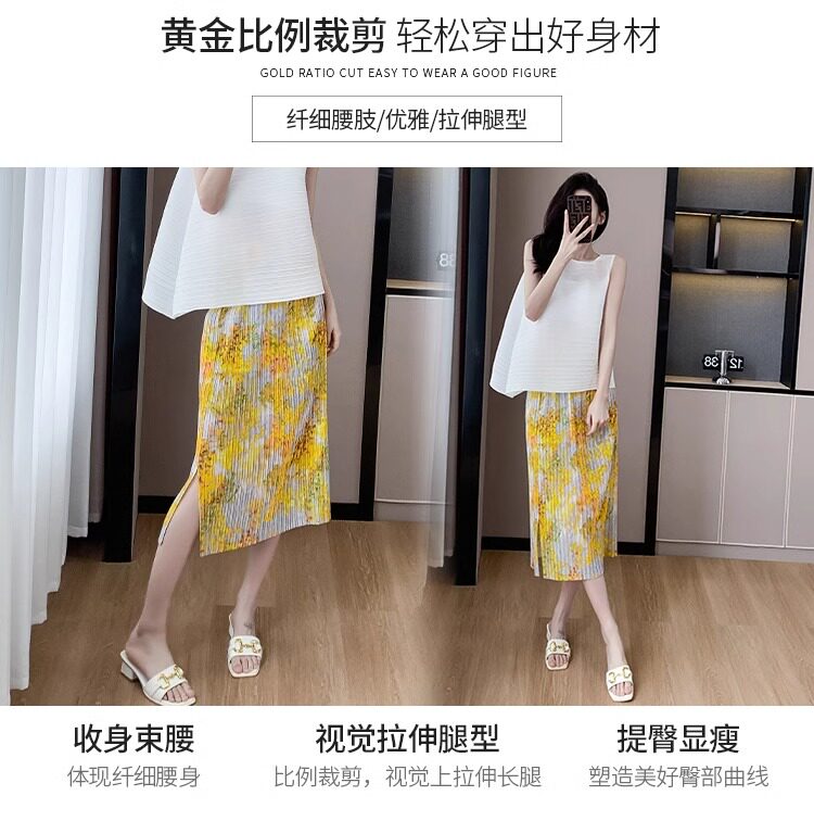 褶皺半身裙夏季垂感顯瘦氣質設計感遮胯松緊腰中長款開叉百褶裙
