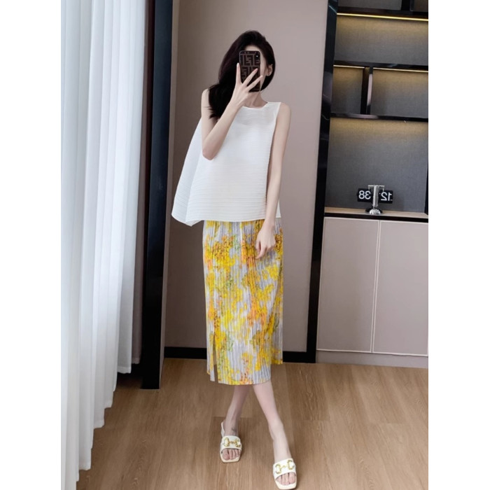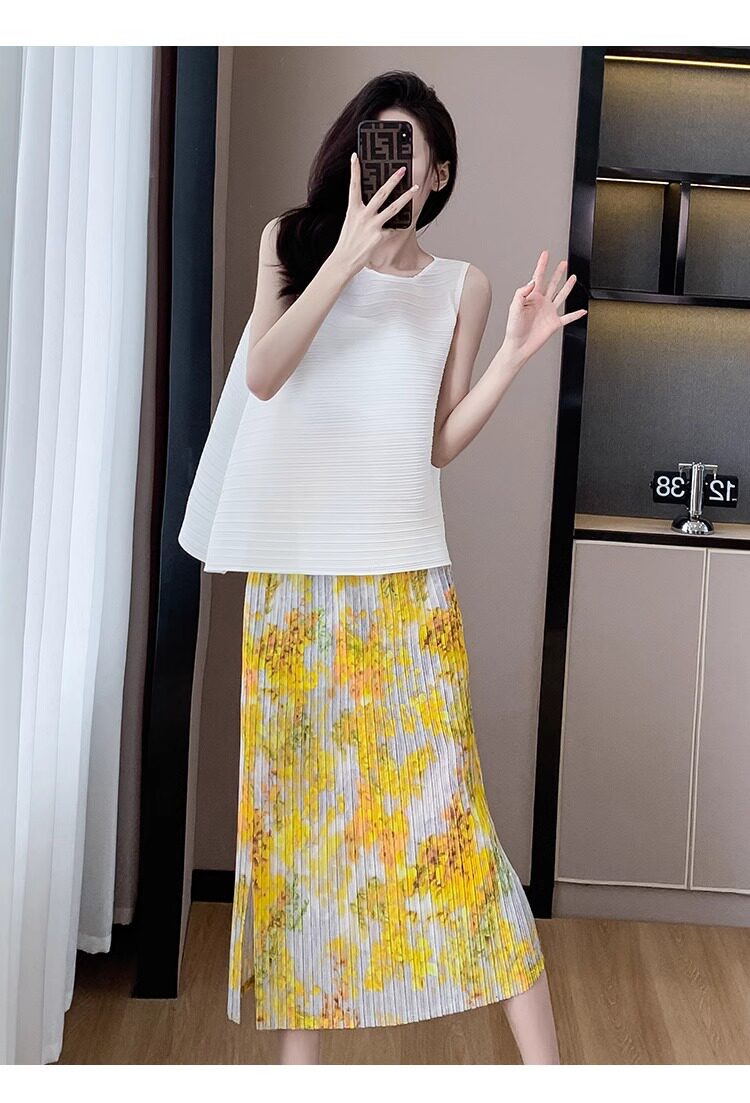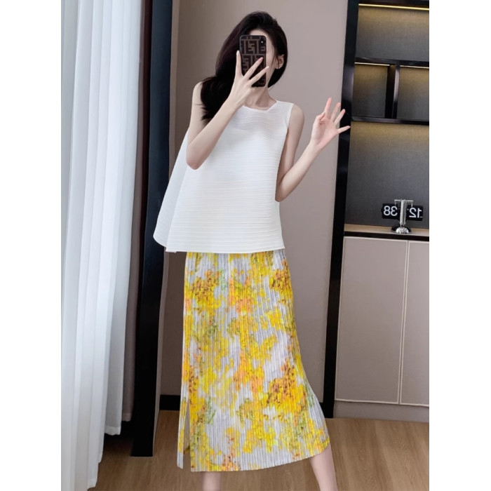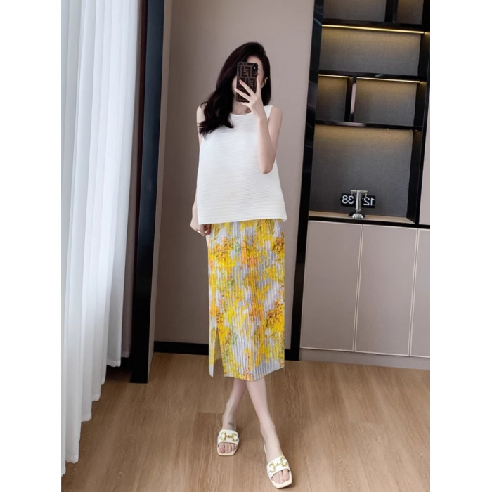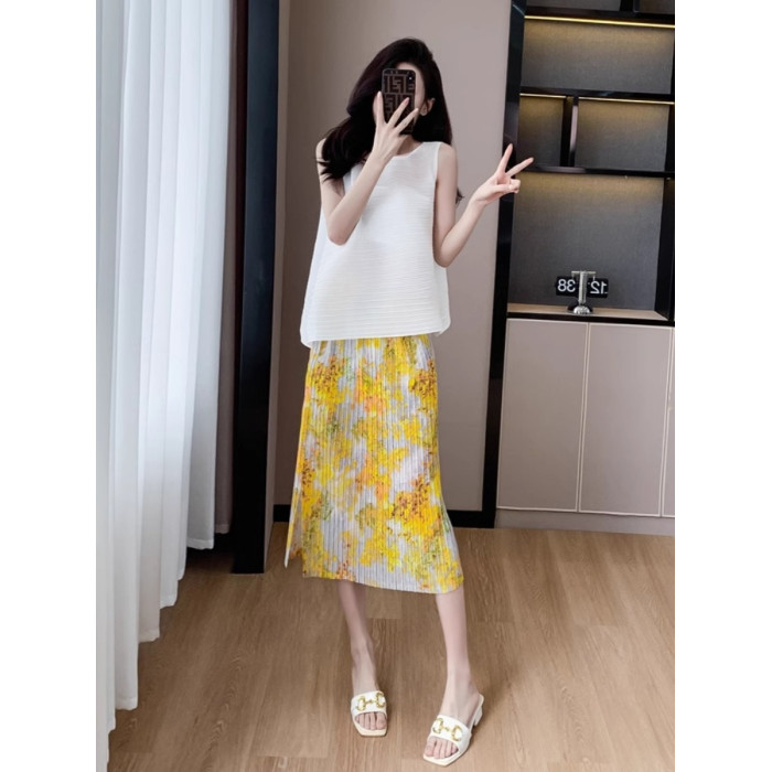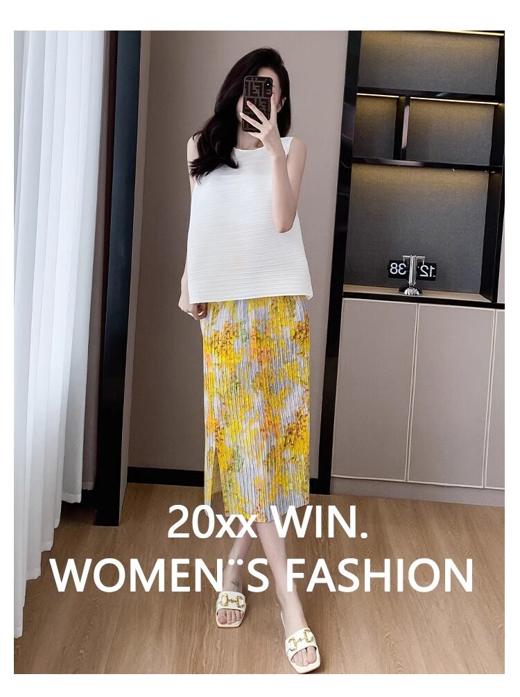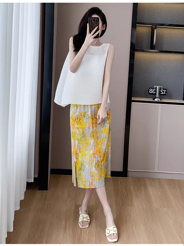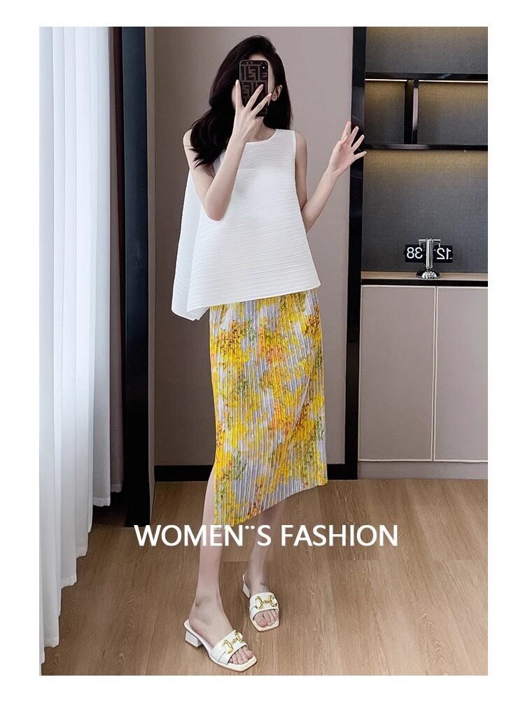 褶皺半身裙夏季垂感顯瘦氣質設計感遮胯松緊腰中長款開叉百褶裙