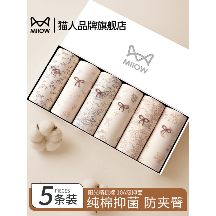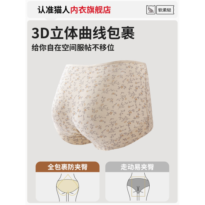 貓人平角女生內褲2025新款透氣全包臀純棉抗菌加長襠可愛四角短褲