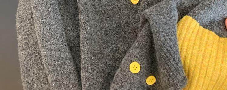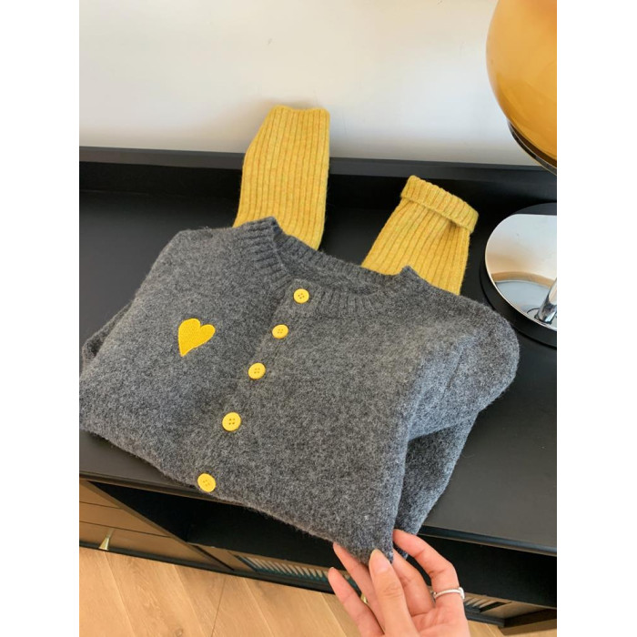 撿漏專櫃撤廻撞色拼接針織開衫女軟糯小個子袖口拼色高級感打底衫