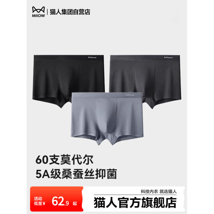 貓人秋冬新款莫代爾男士內褲抗菌透氣四角褲大碼高彈平角短褲褲頭