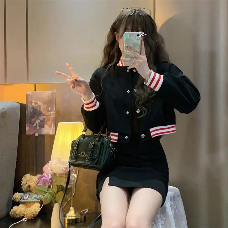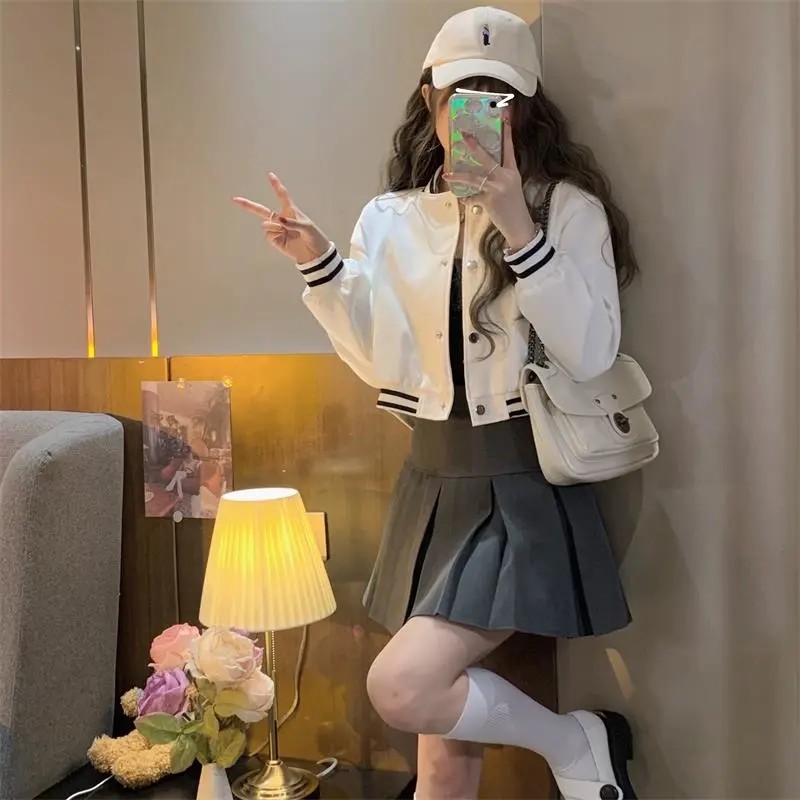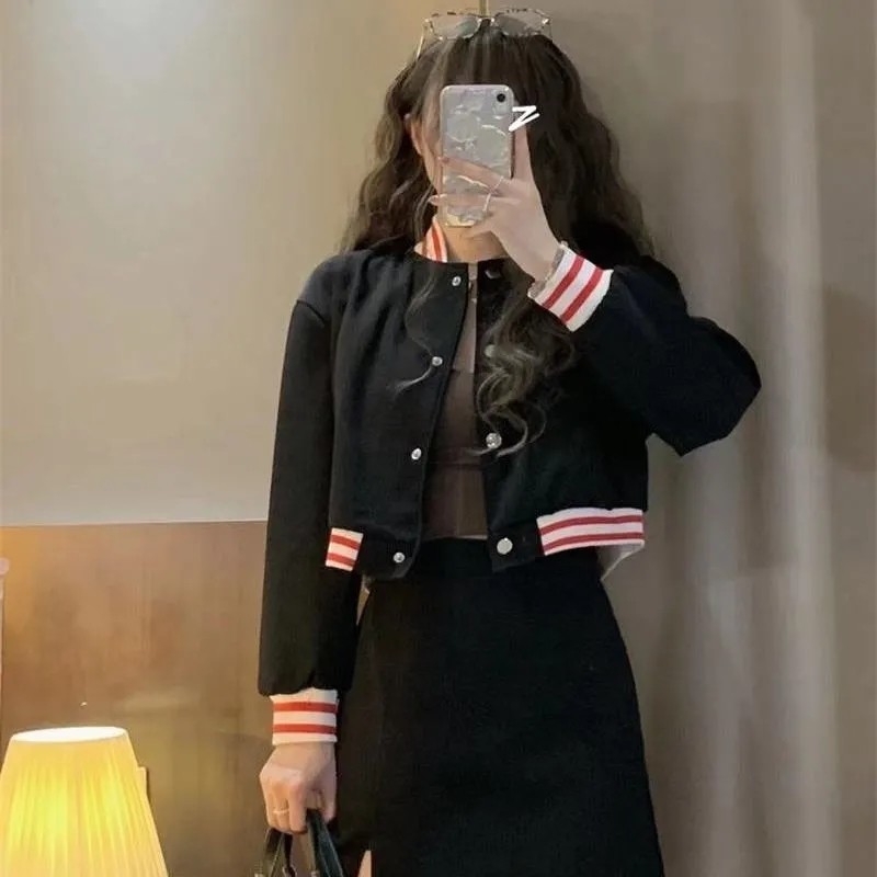 2026秋季新款學院風休閒百搭短款高級感黑色棒球服外套女