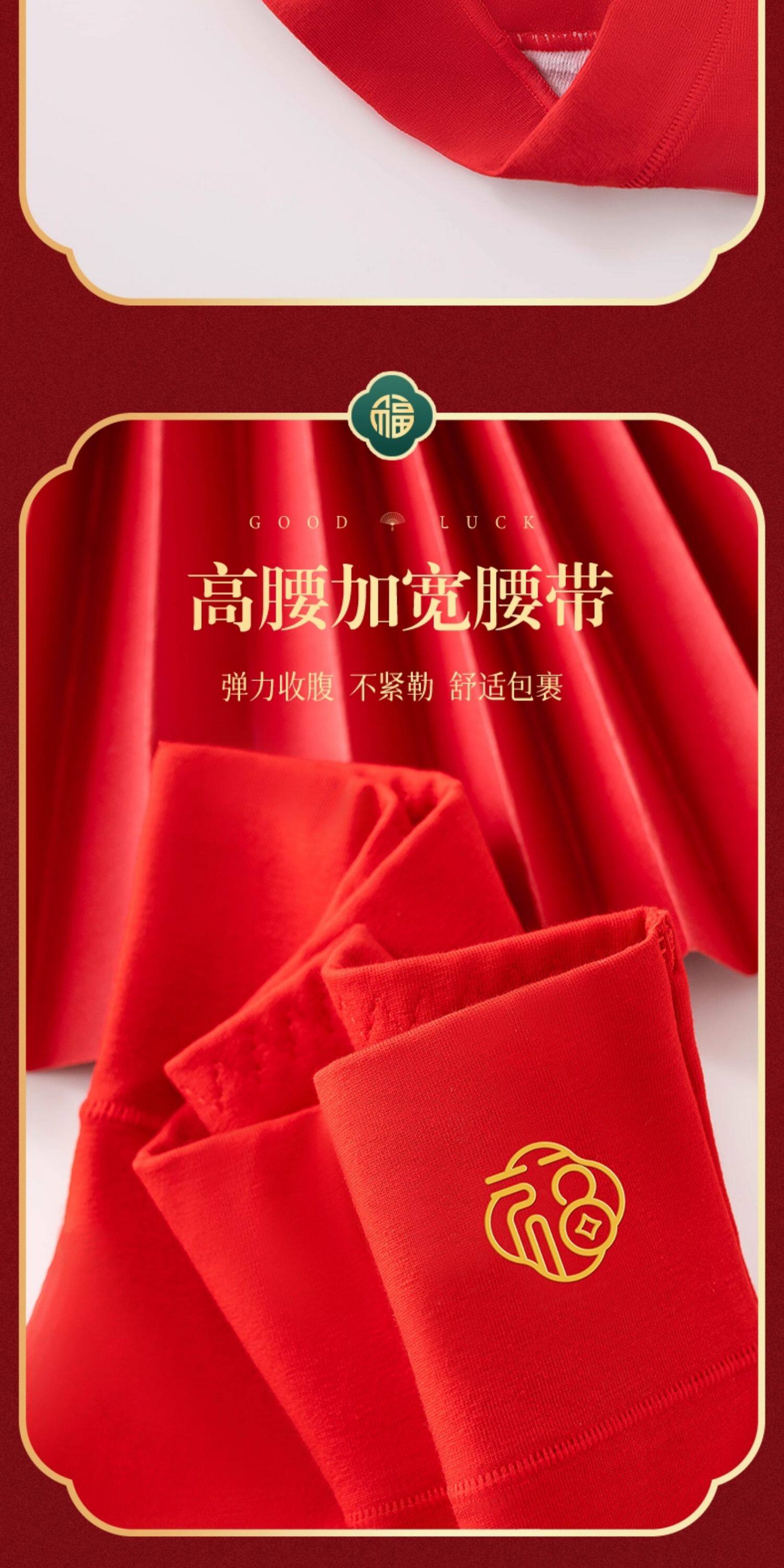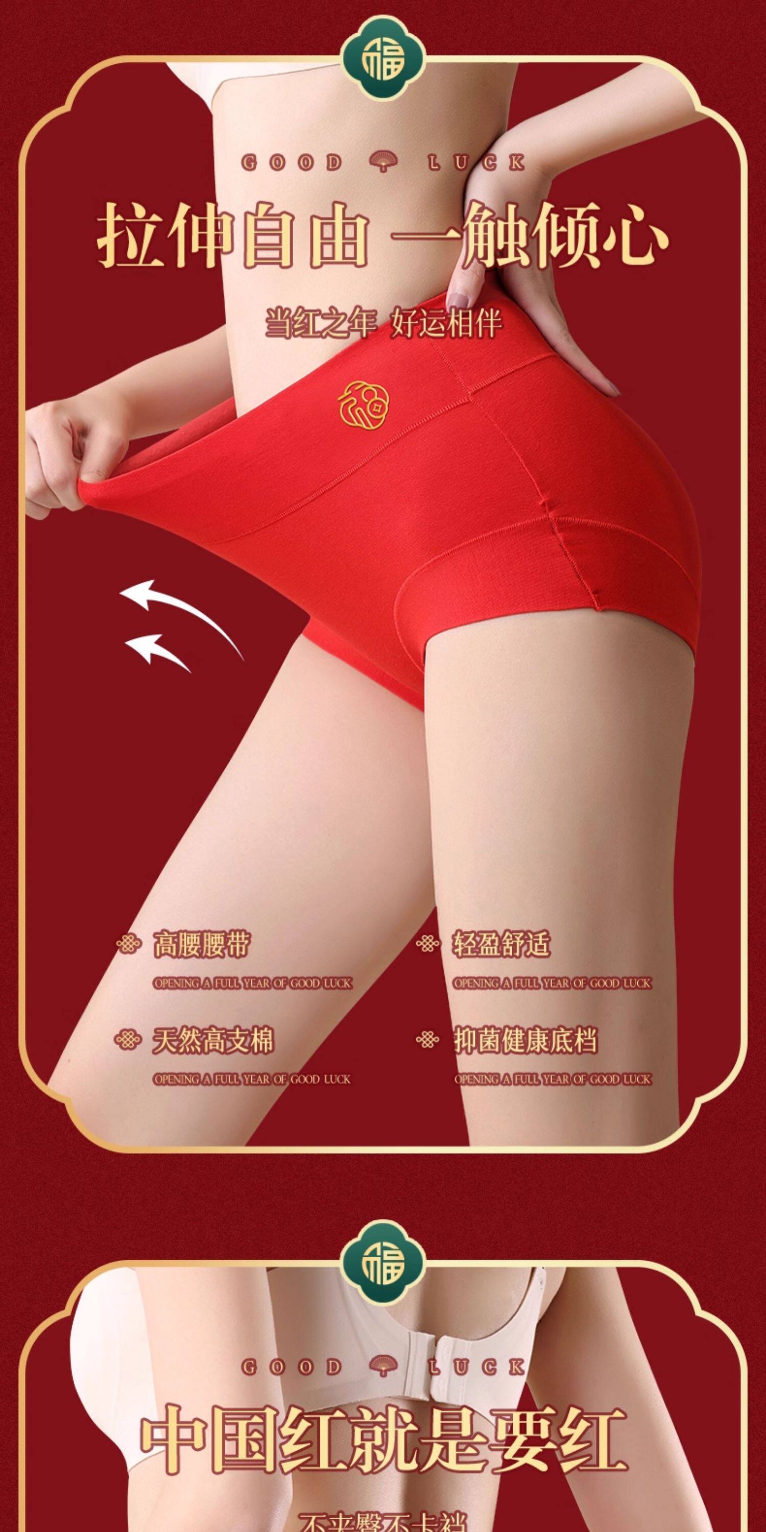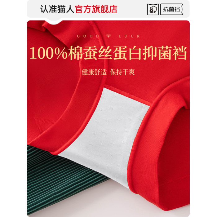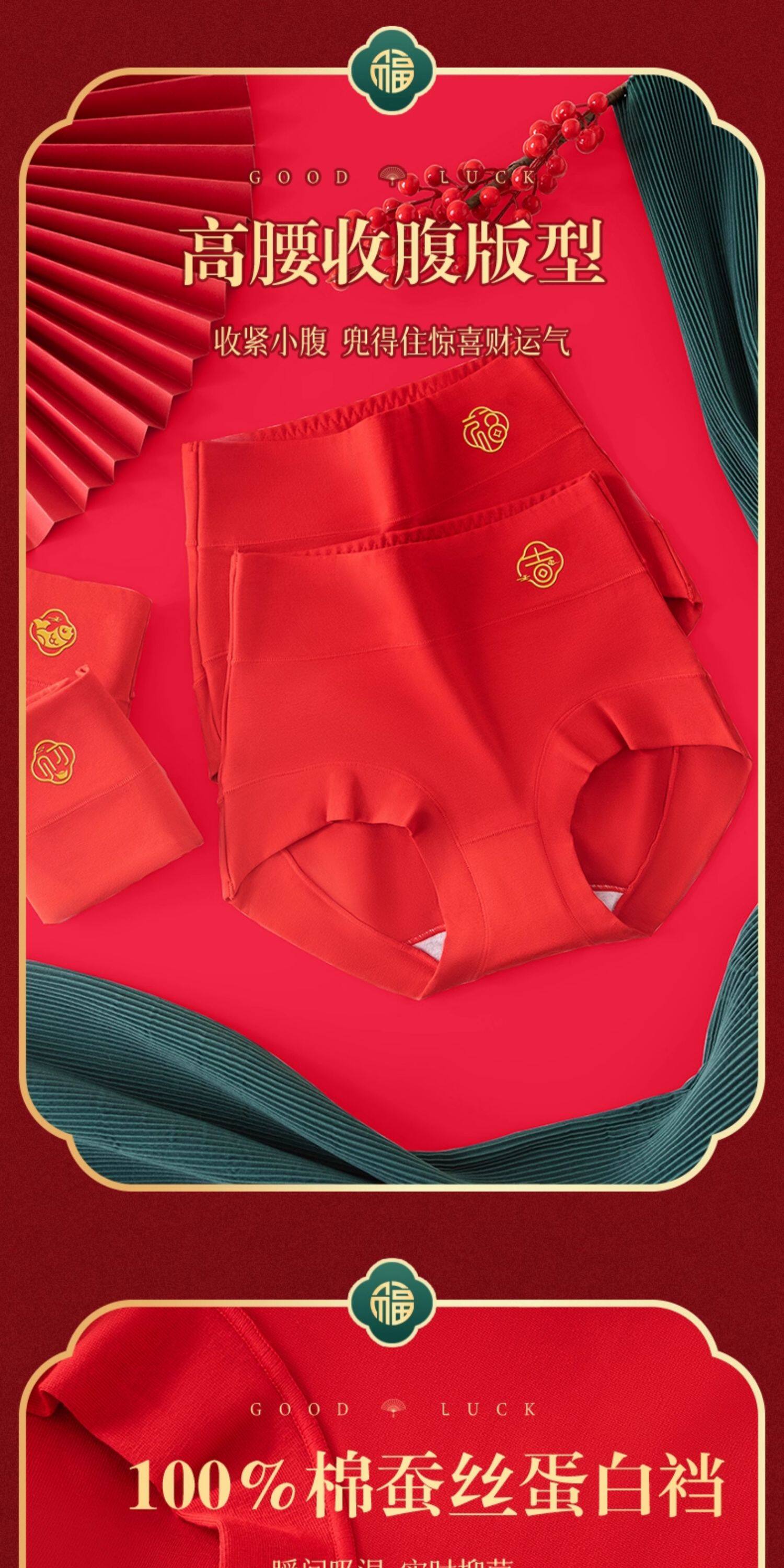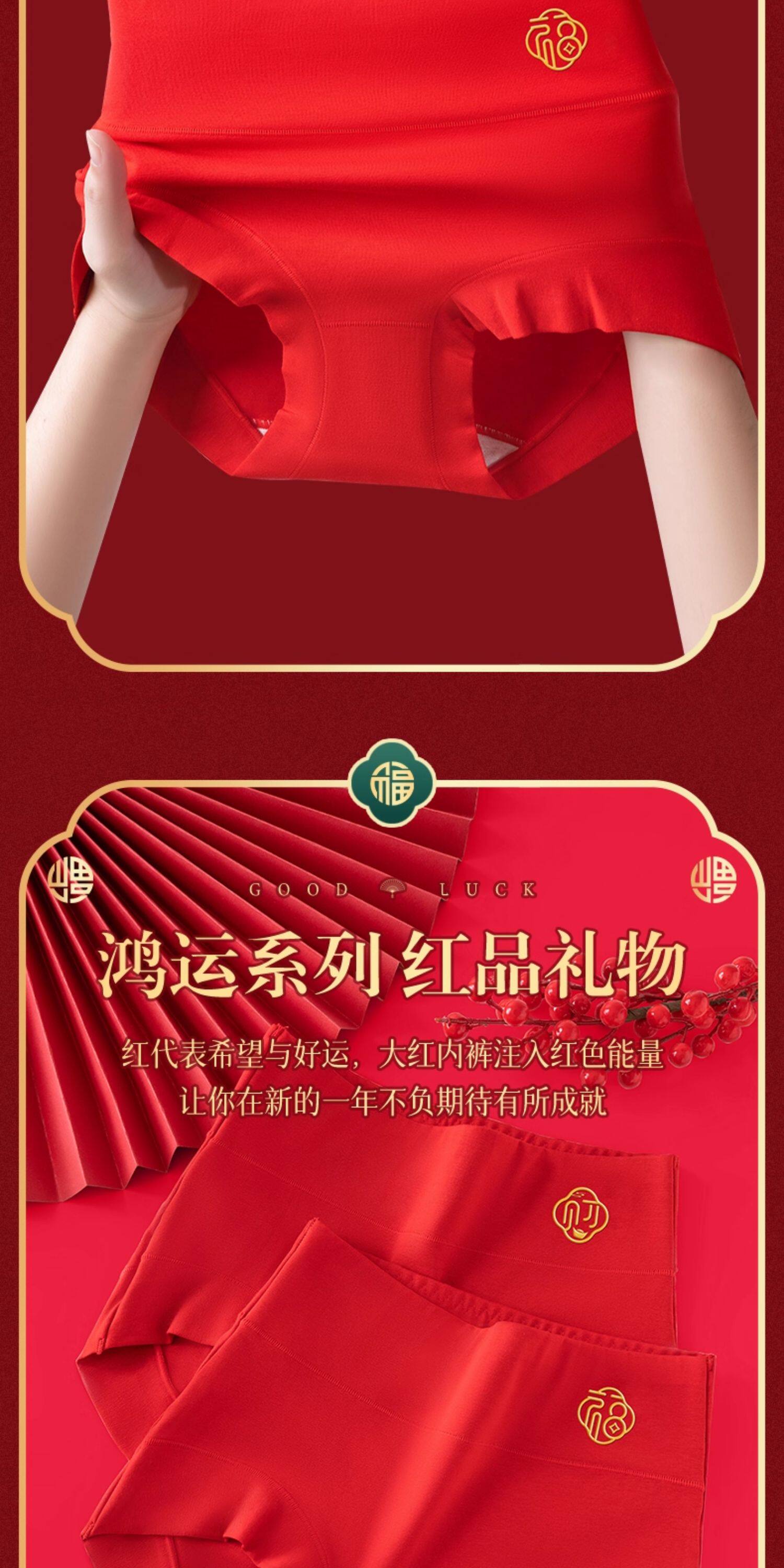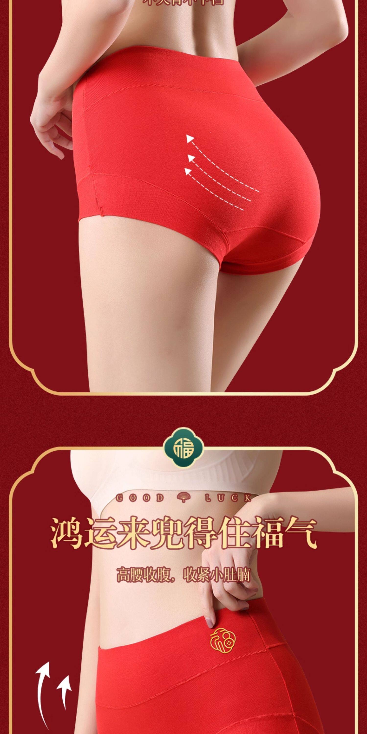 貓人紅色內褲女士全棉純棉抗菌襠本命年高腰收腹大碼女生三角短褲
