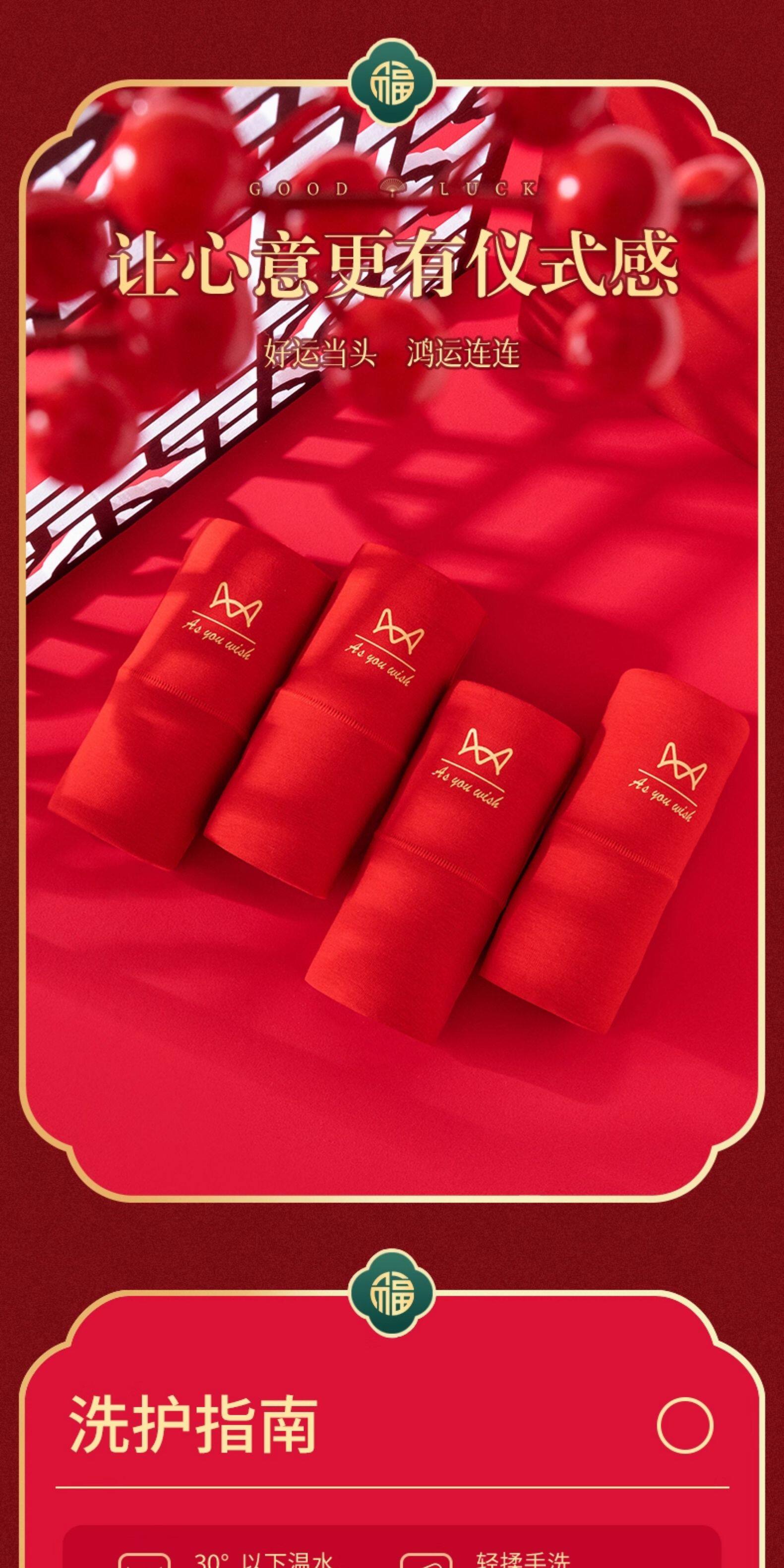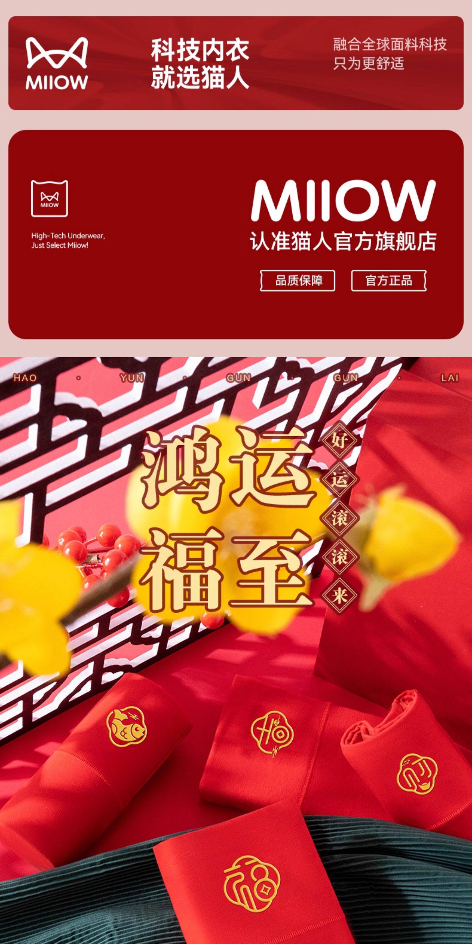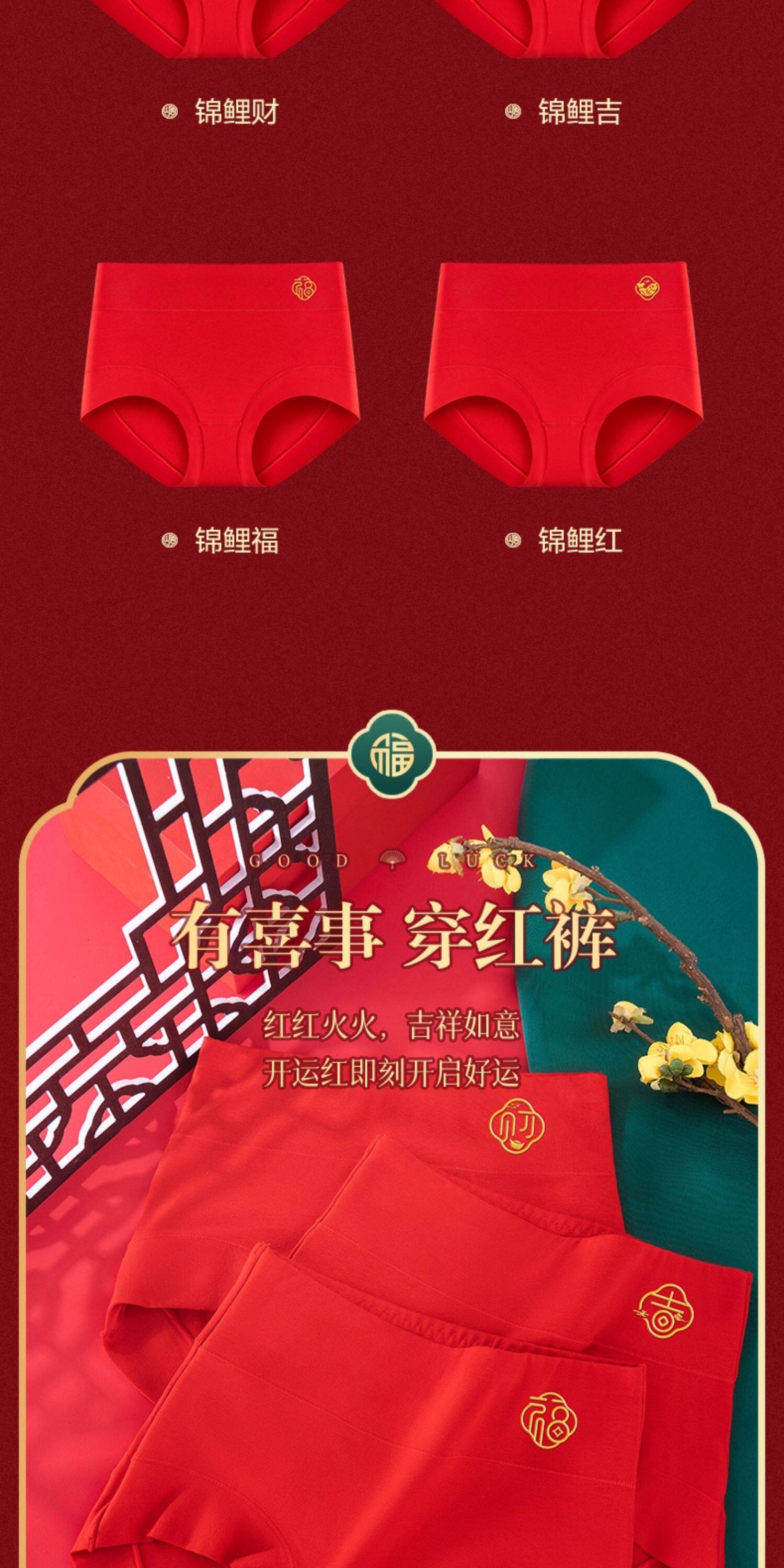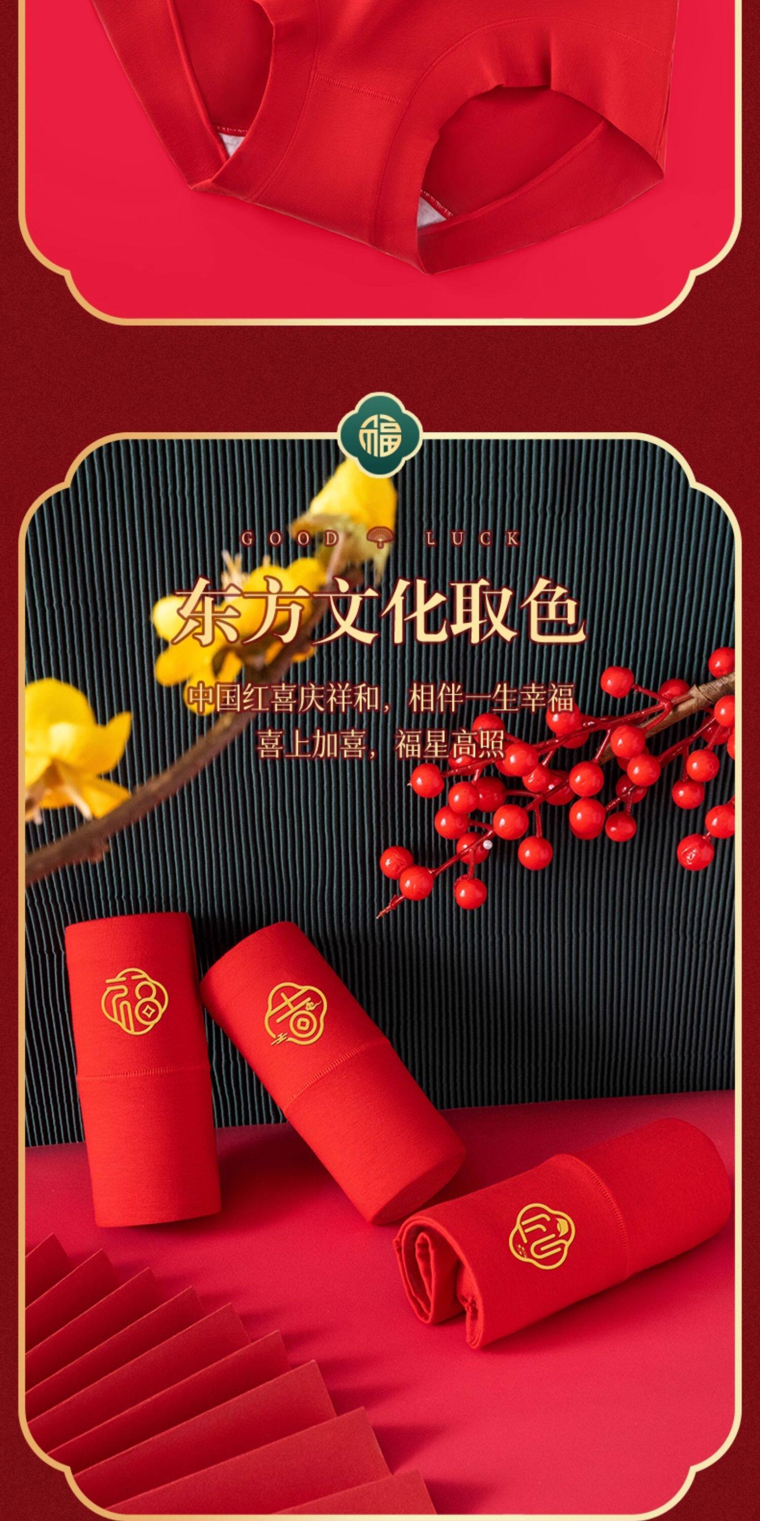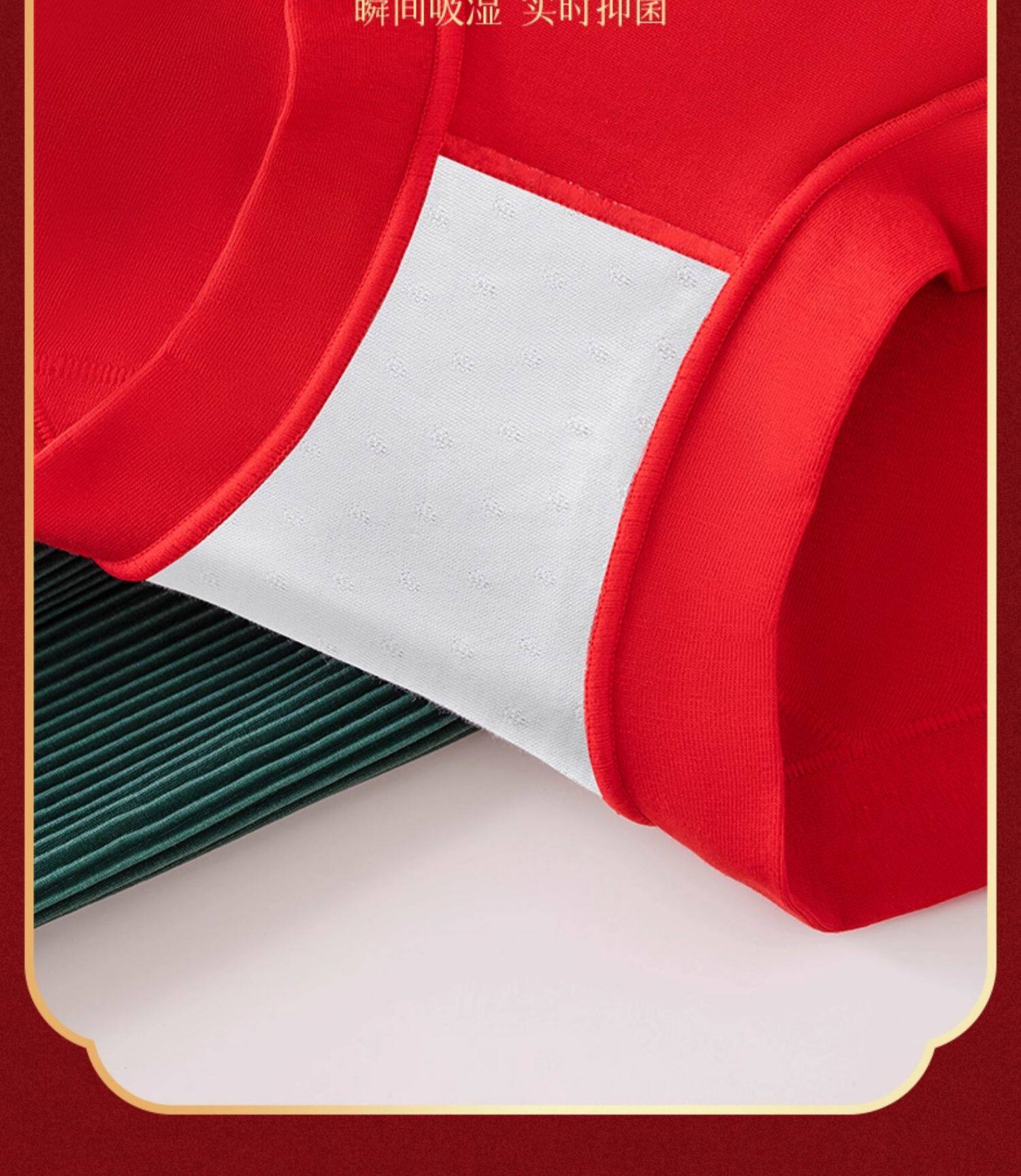 貓人紅色內褲女士全棉純棉抗菌襠本命年高腰收腹大碼女生三角短褲