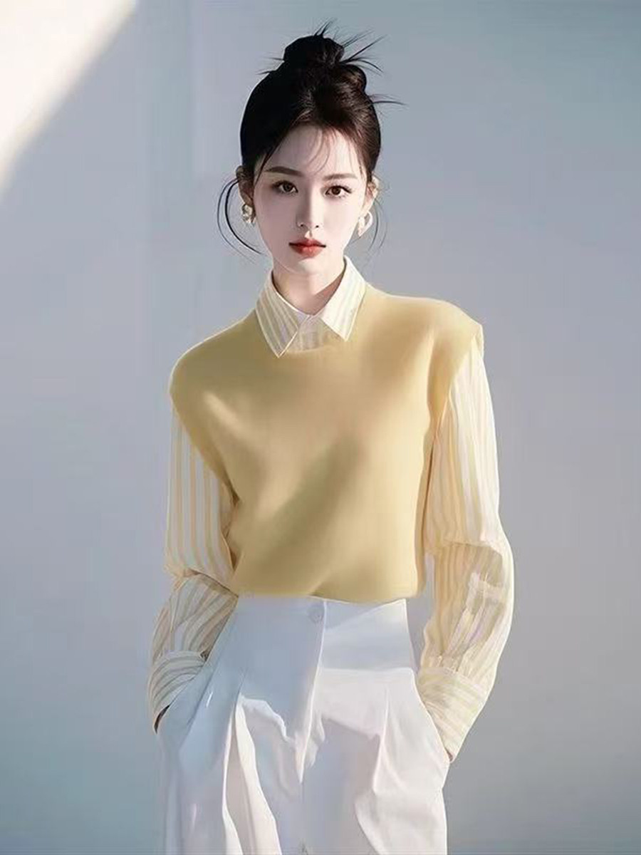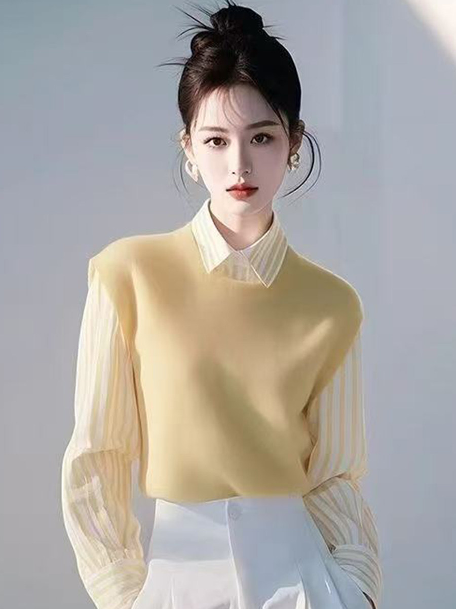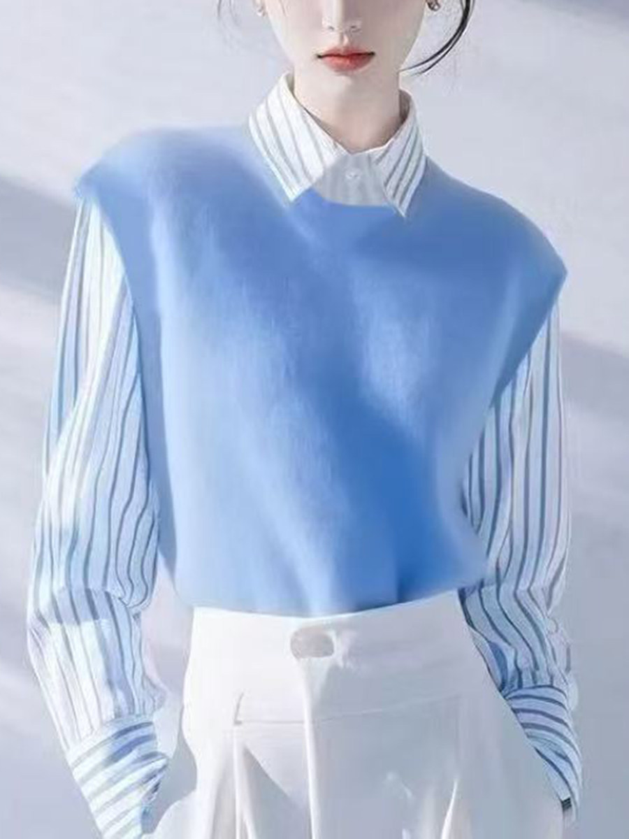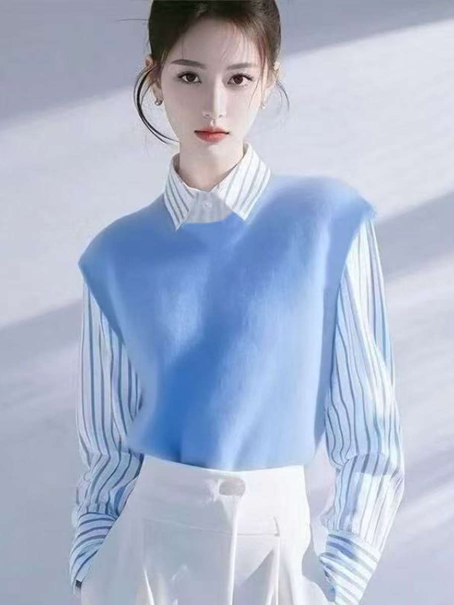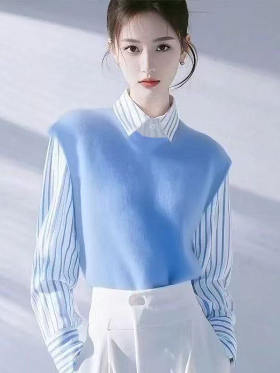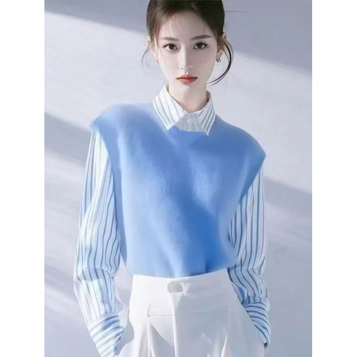 今年流行超好看藍色條紋拼接襯衫女2026春秋新款高級感洋氣襯衣服