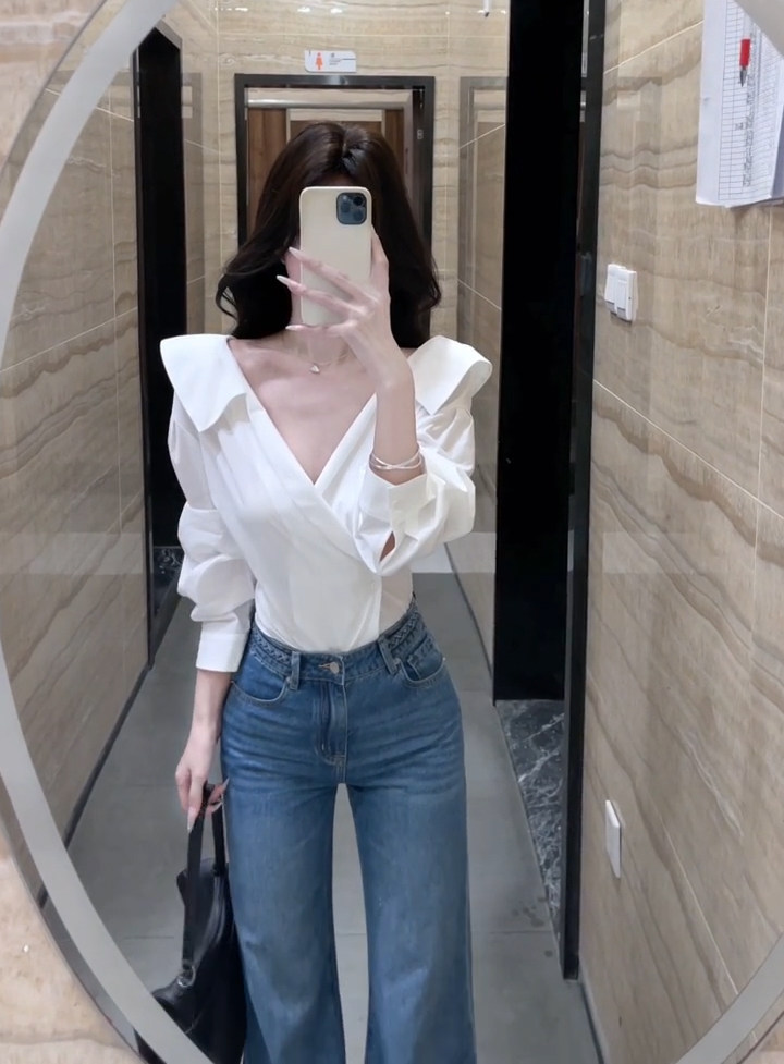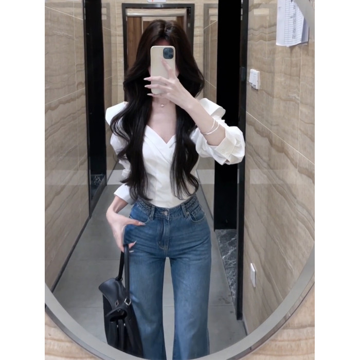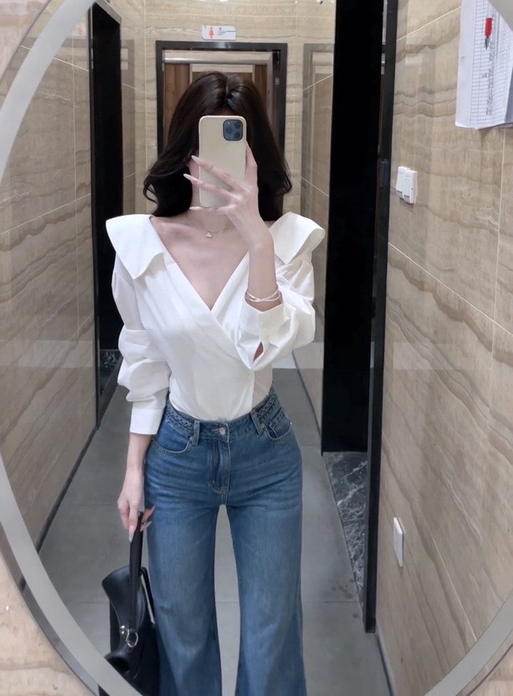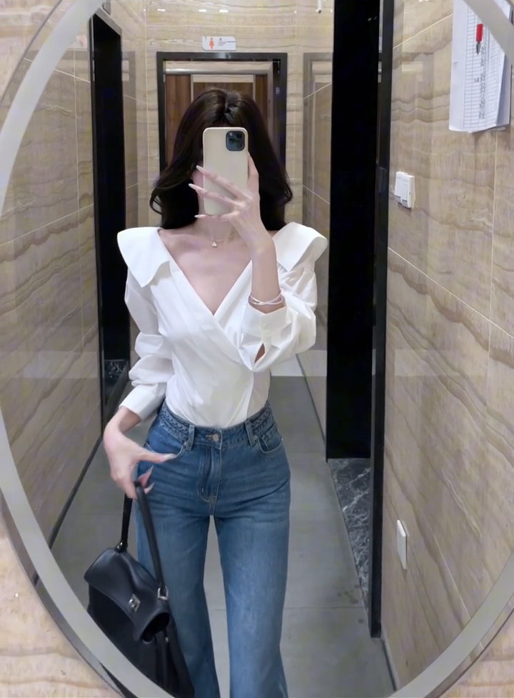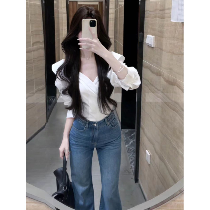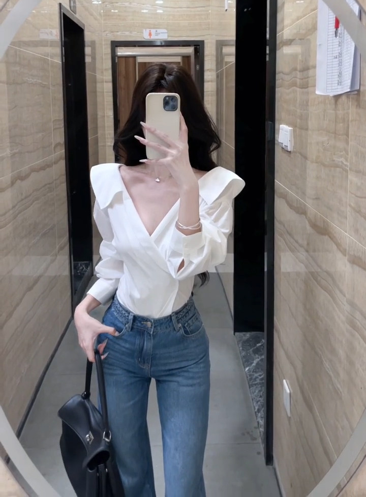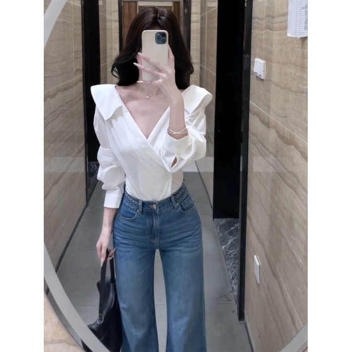 法式獨特超好看單穿白色繙領長袖襯衫高級小資氣質小上衣2025秋季