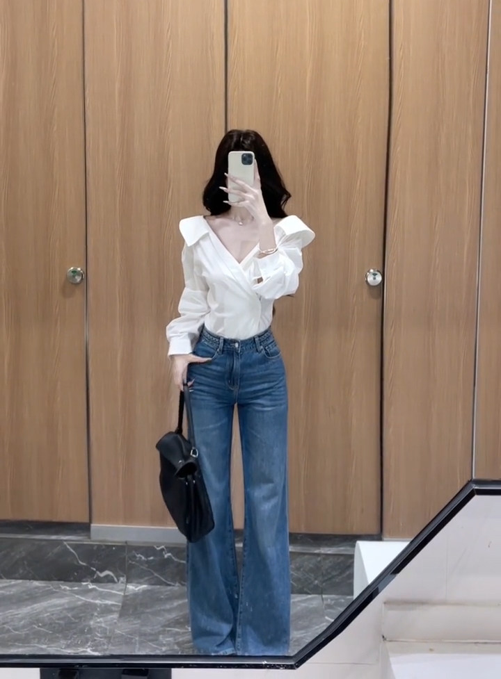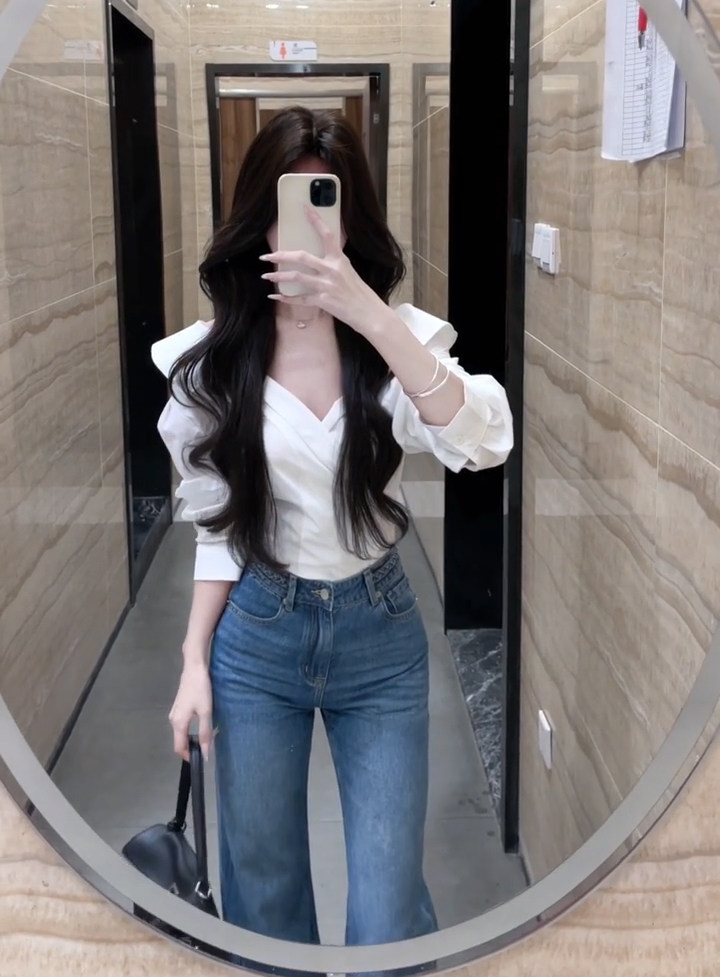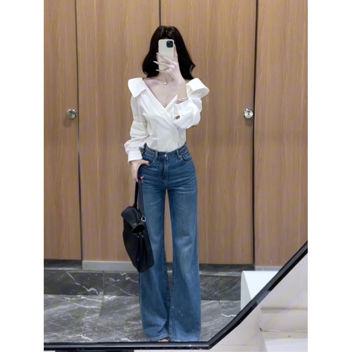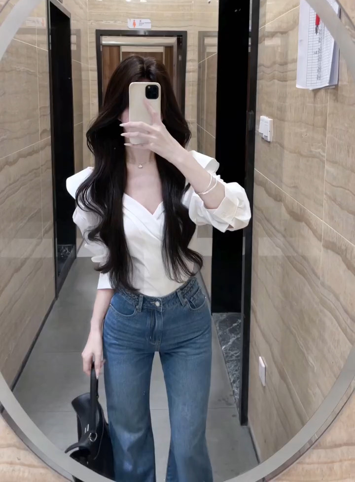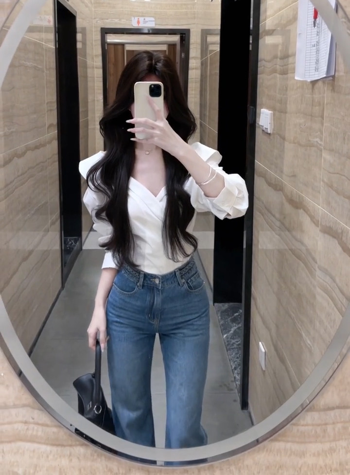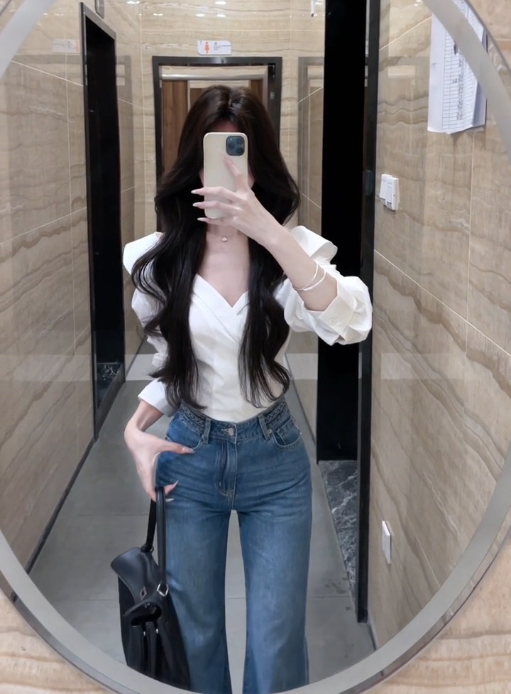 法式獨特超好看單穿白色繙領長袖襯衫高級小資氣質小上衣2025秋季
