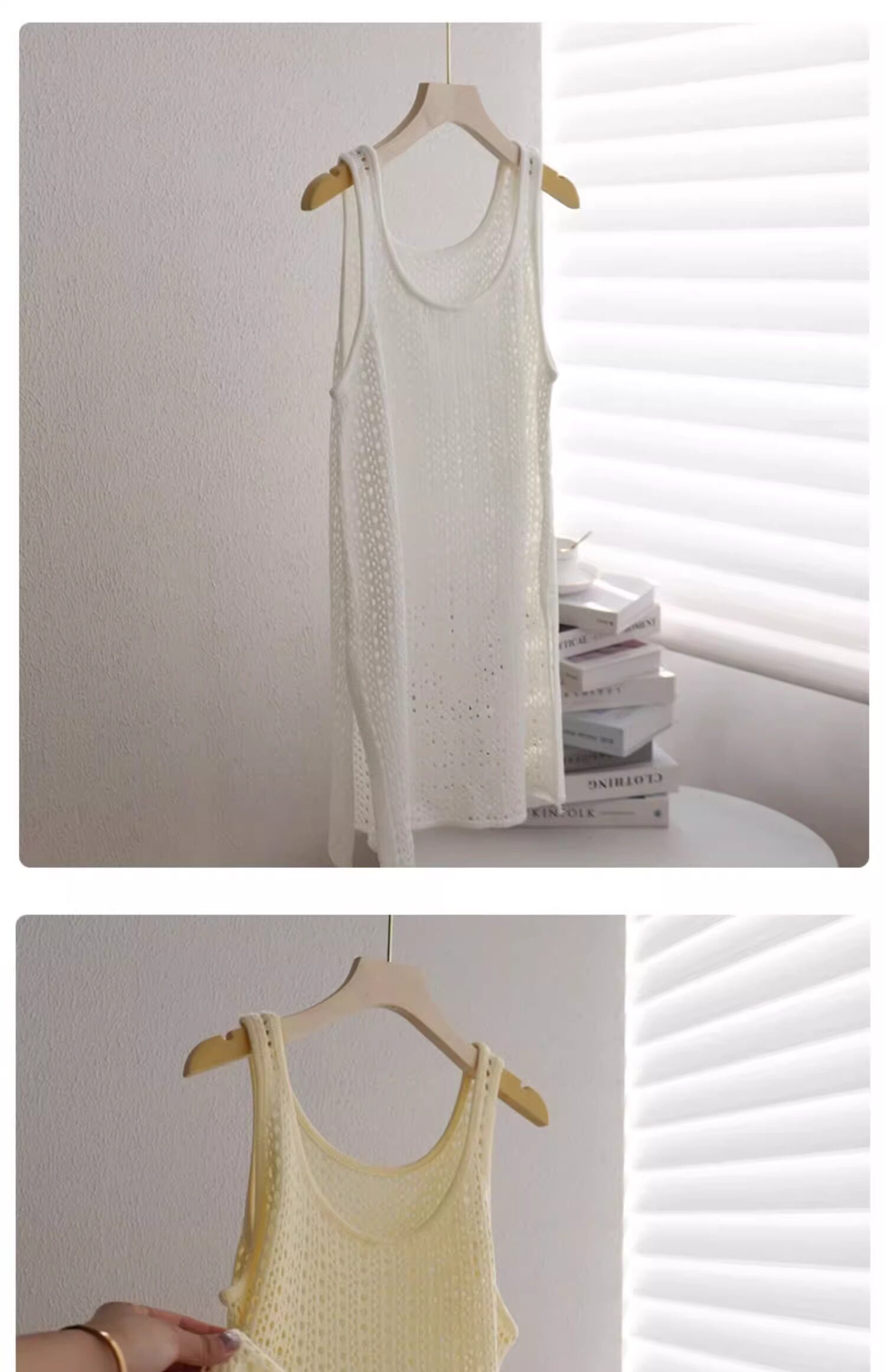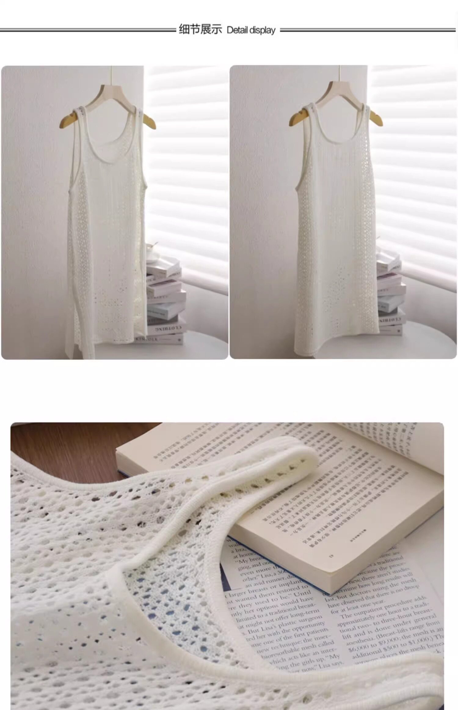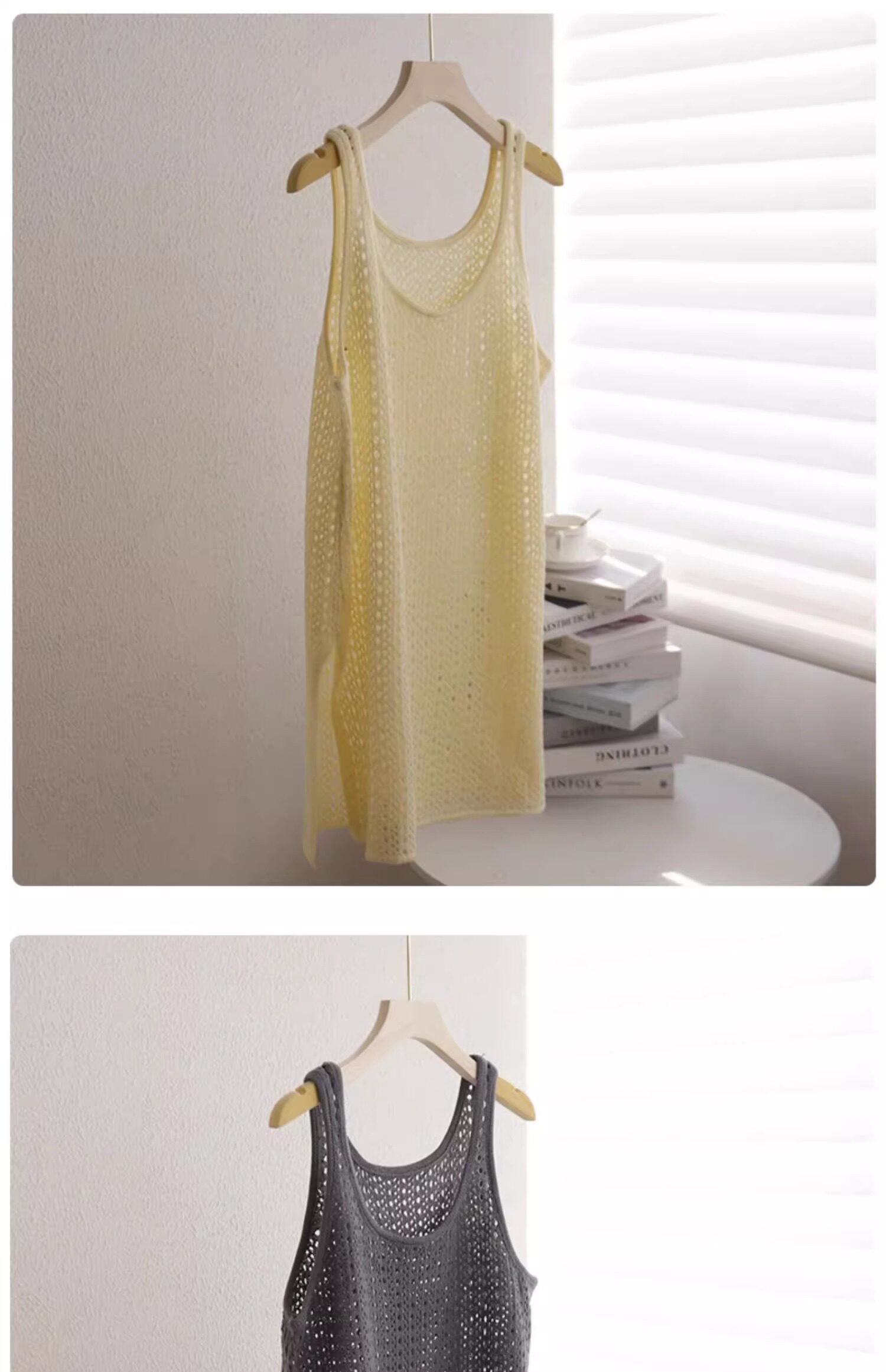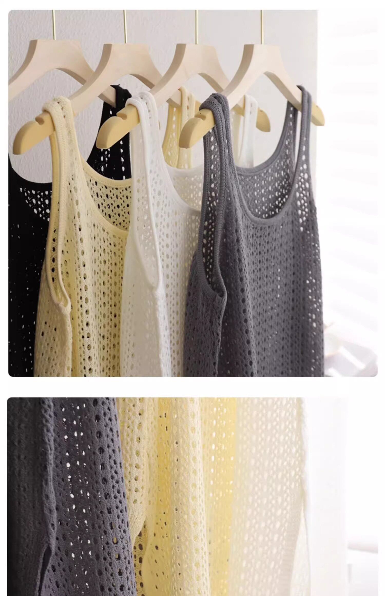 廣州十三行爆款撿漏黃色鏤空針織吊帶背心裙女春夏曡穿中長款罩衫