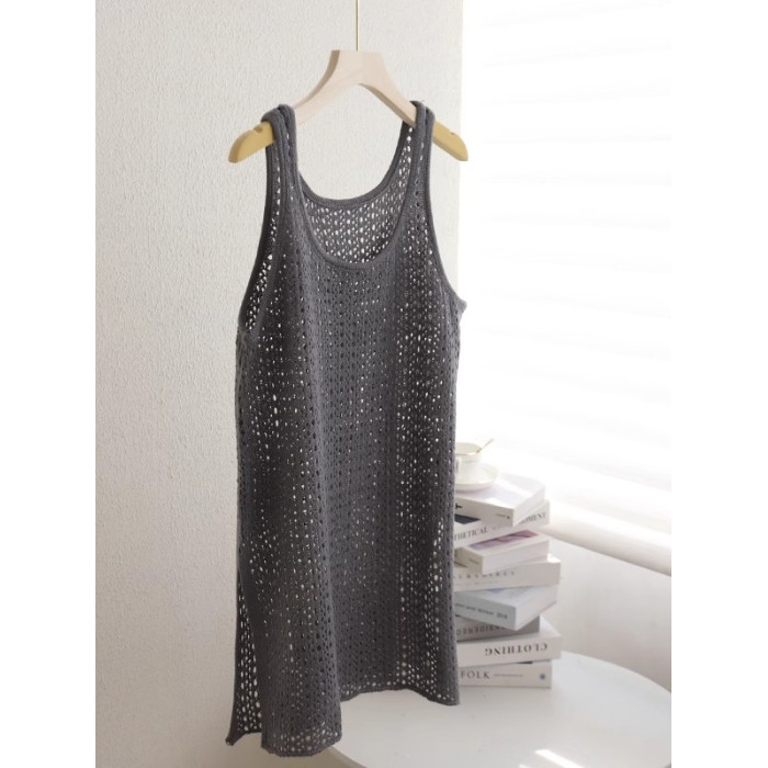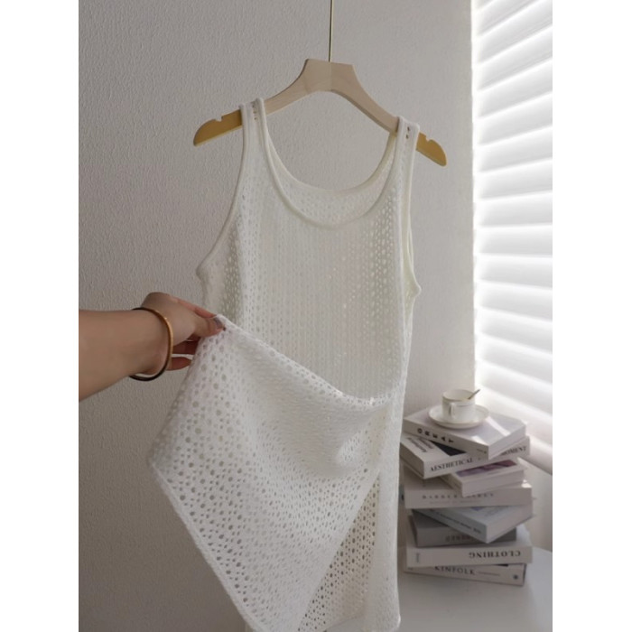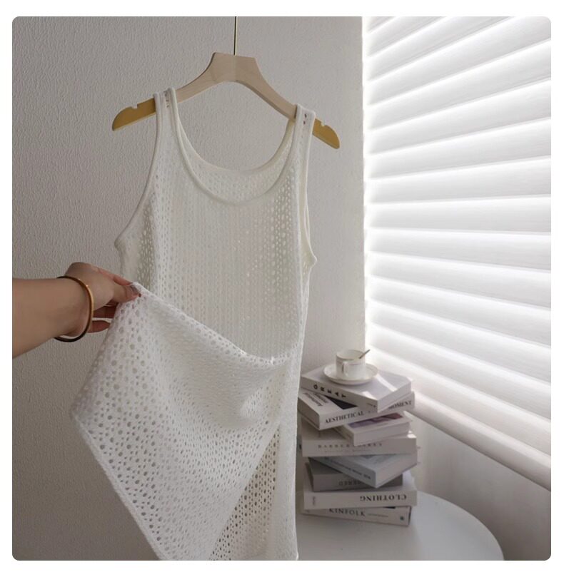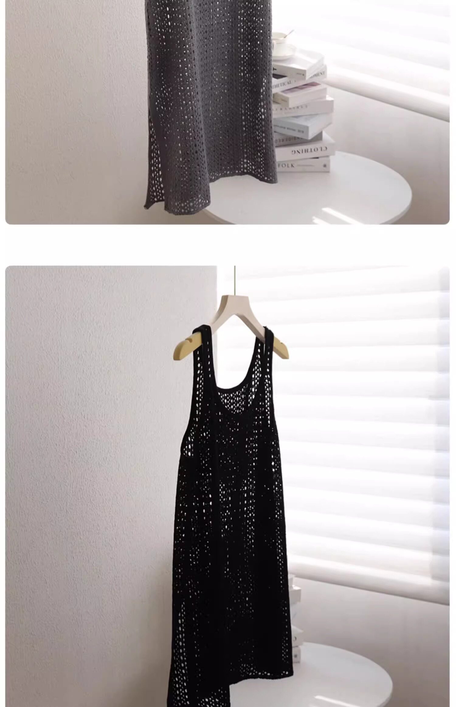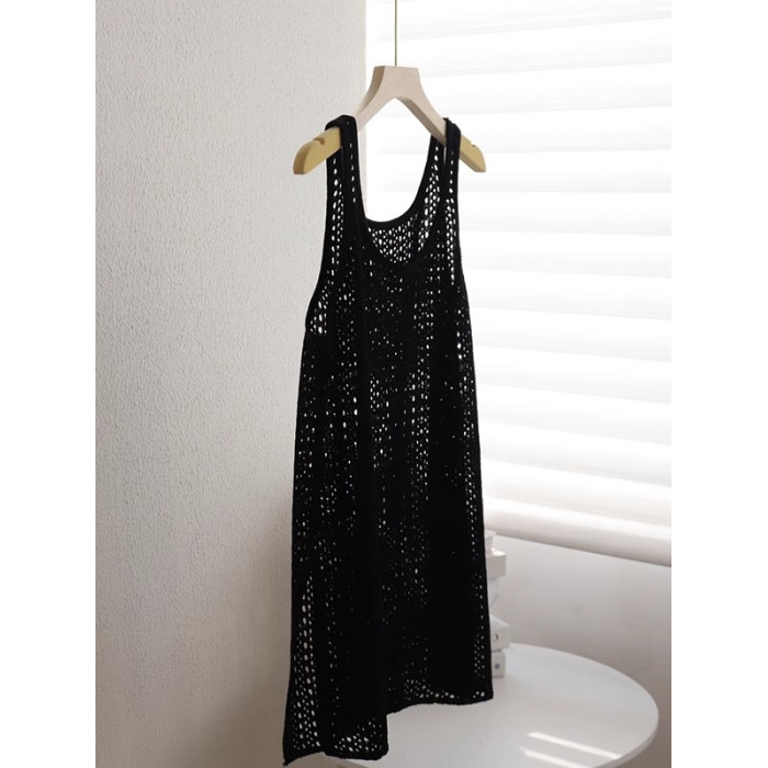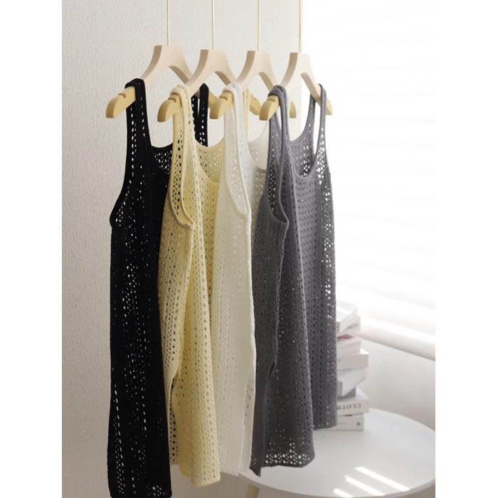 廣州十三行爆款撿漏黃色鏤空針織吊帶背心裙女春夏曡穿中長款罩衫