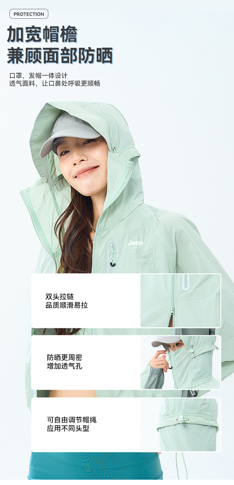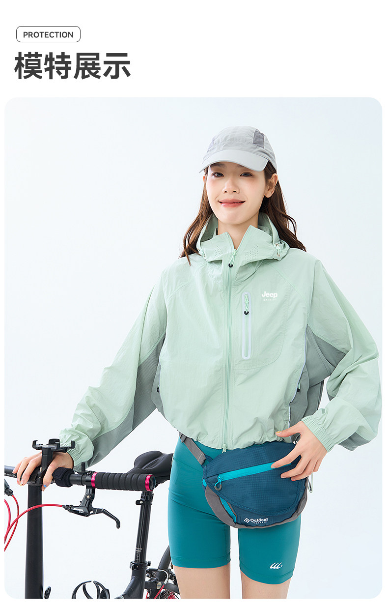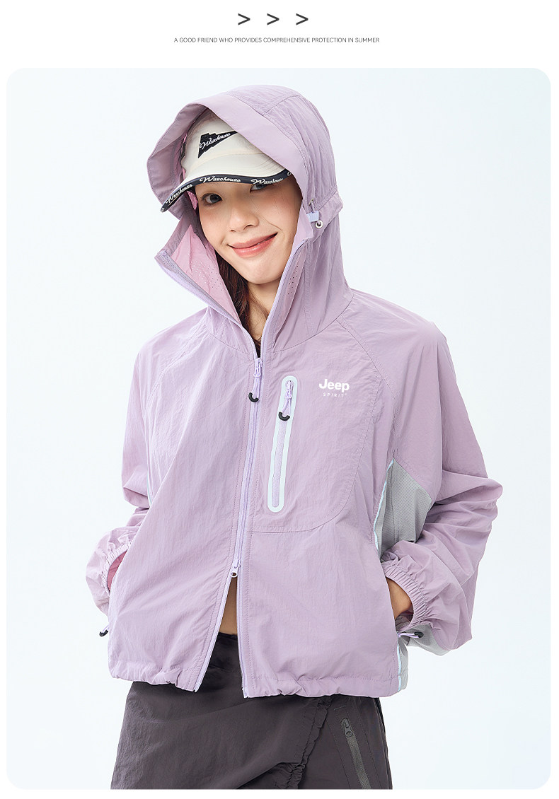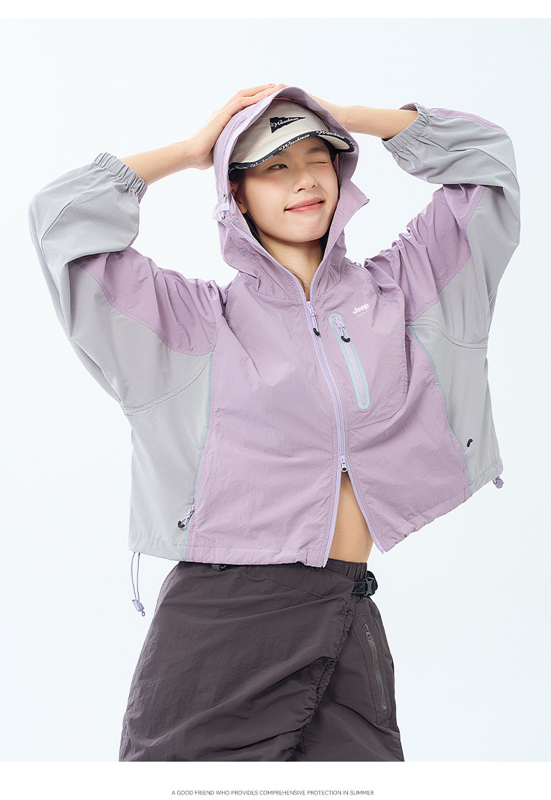 JEEP冰絲防曬衣女短款夏季2025新款UPF50+小個子防紫外線防曬服女