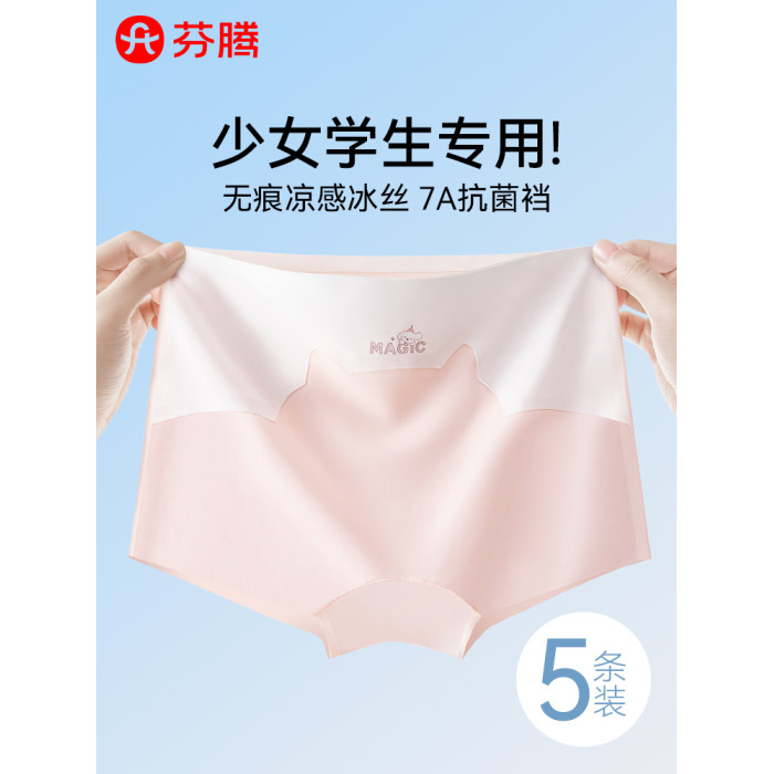 芬騰少女內褲女大童初高中學生2025新款無痕純棉抗菌襠平角短褲12