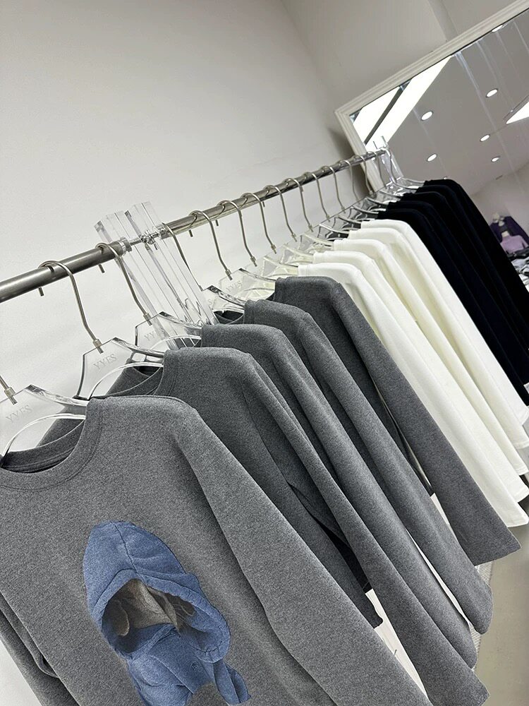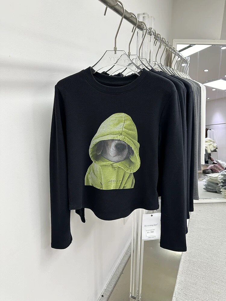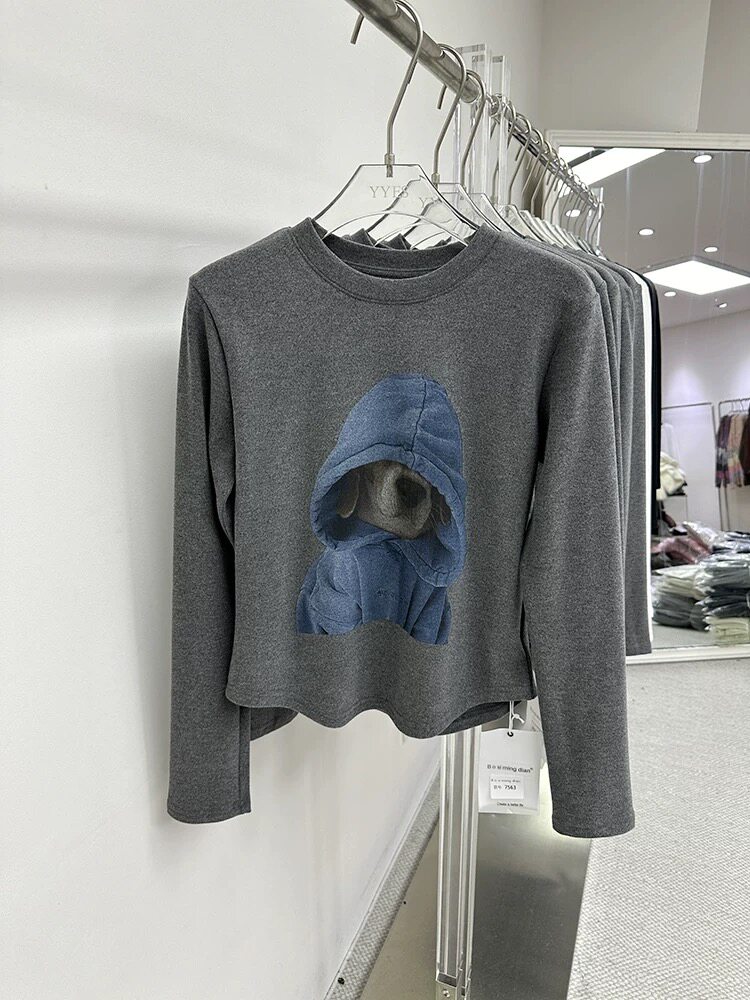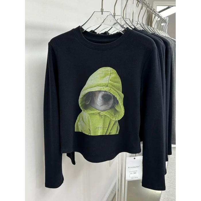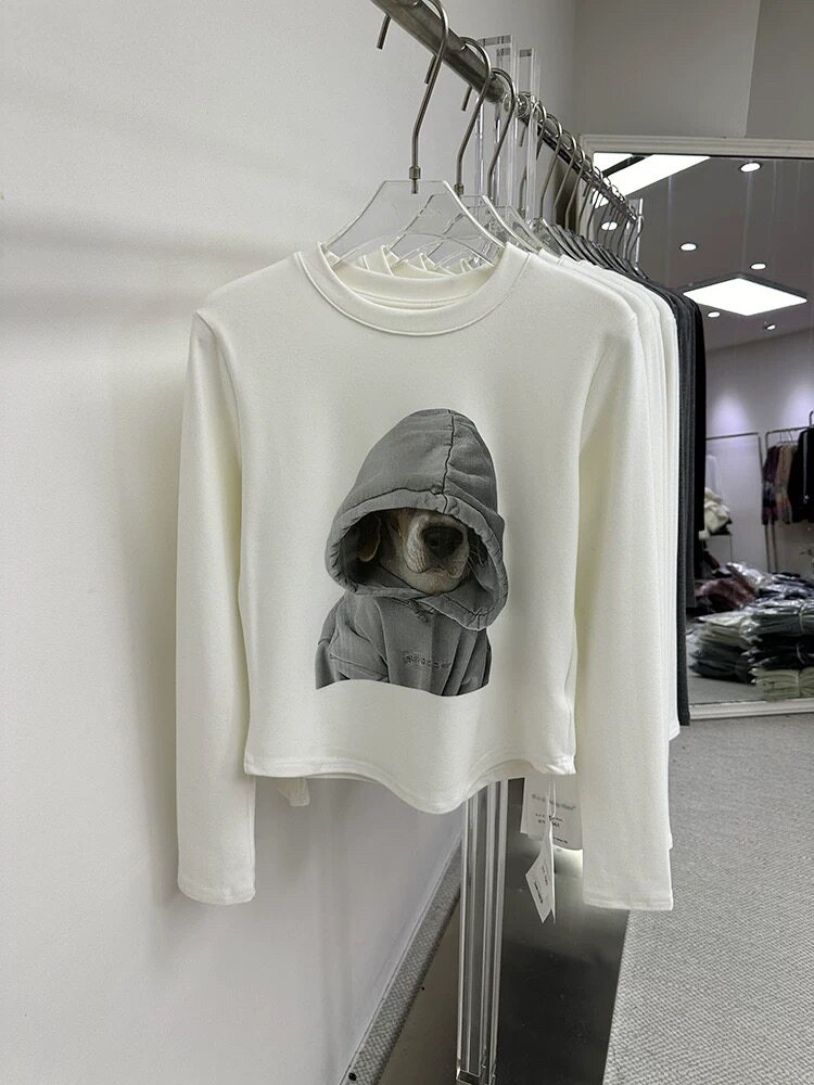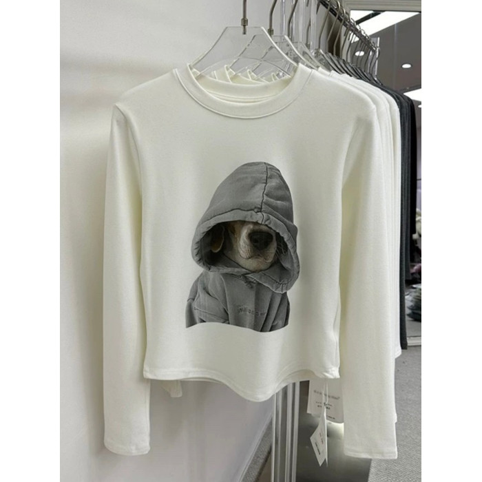 廣州十三行爆款撿漏~卡通狗狗磨毛保暖長袖T恤打底衫小個子上衣女