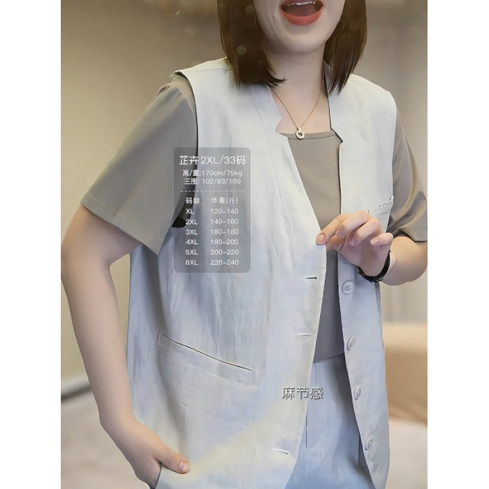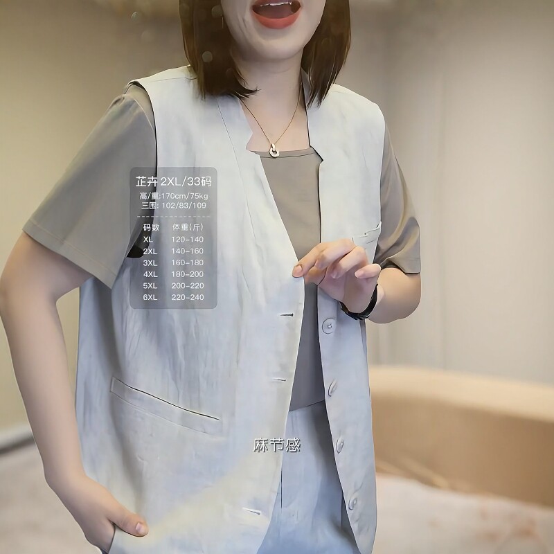 商場剪標折釦出口棉麻外穿V領開衫馬夾無袖背心外搭坎肩防曬外套