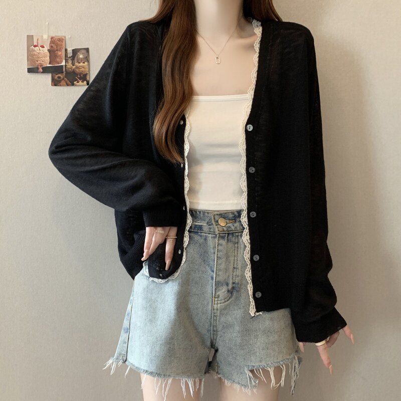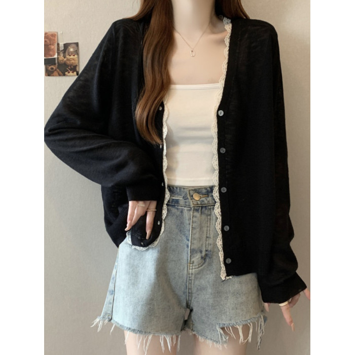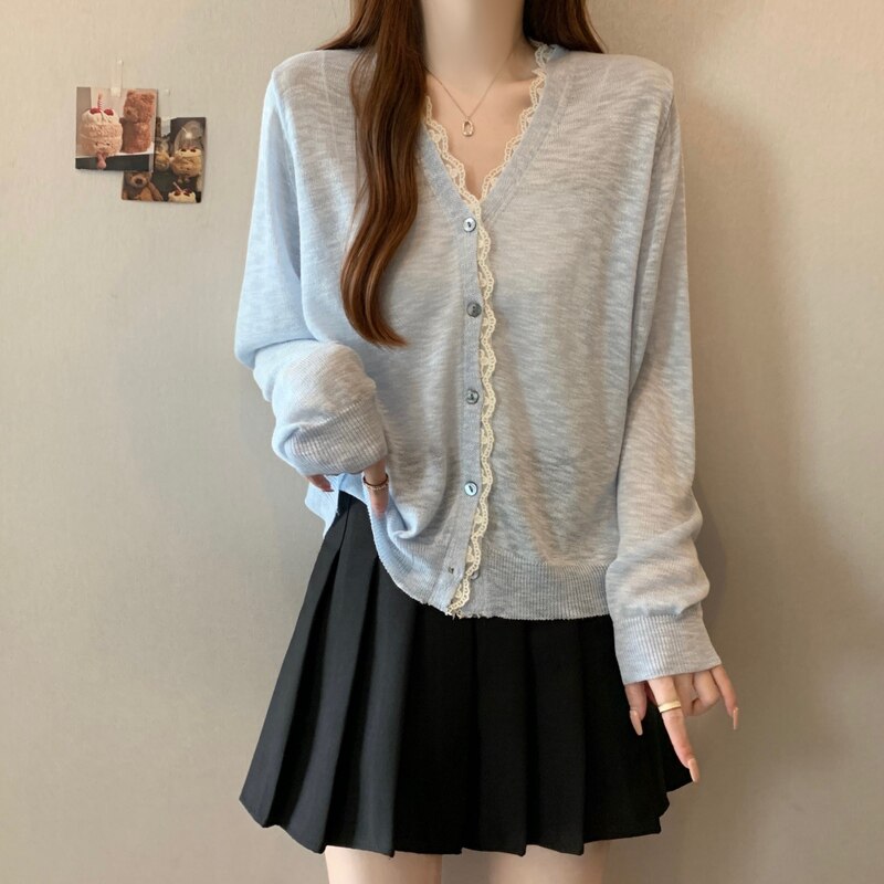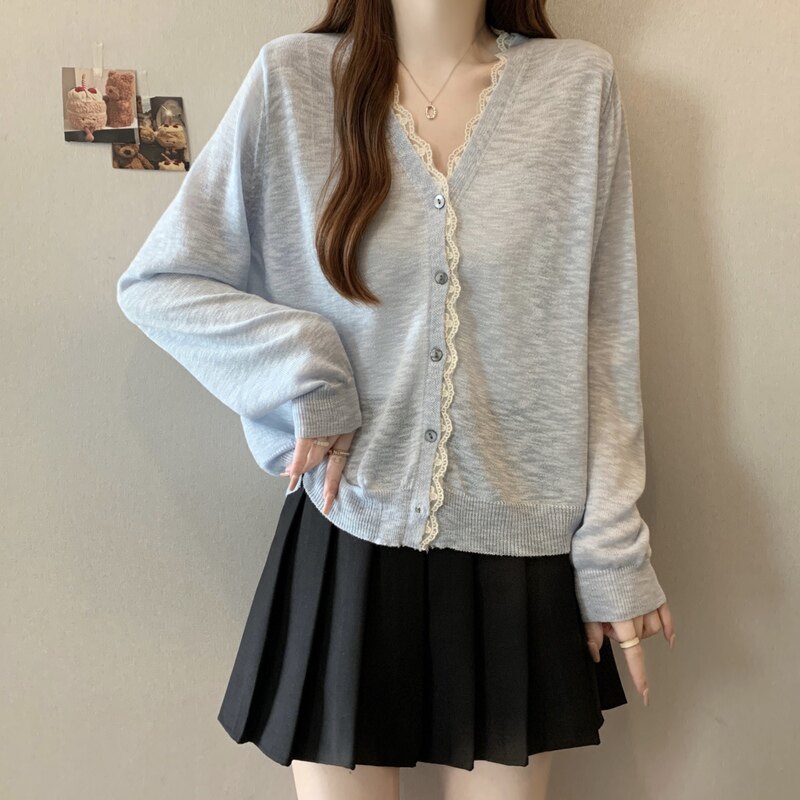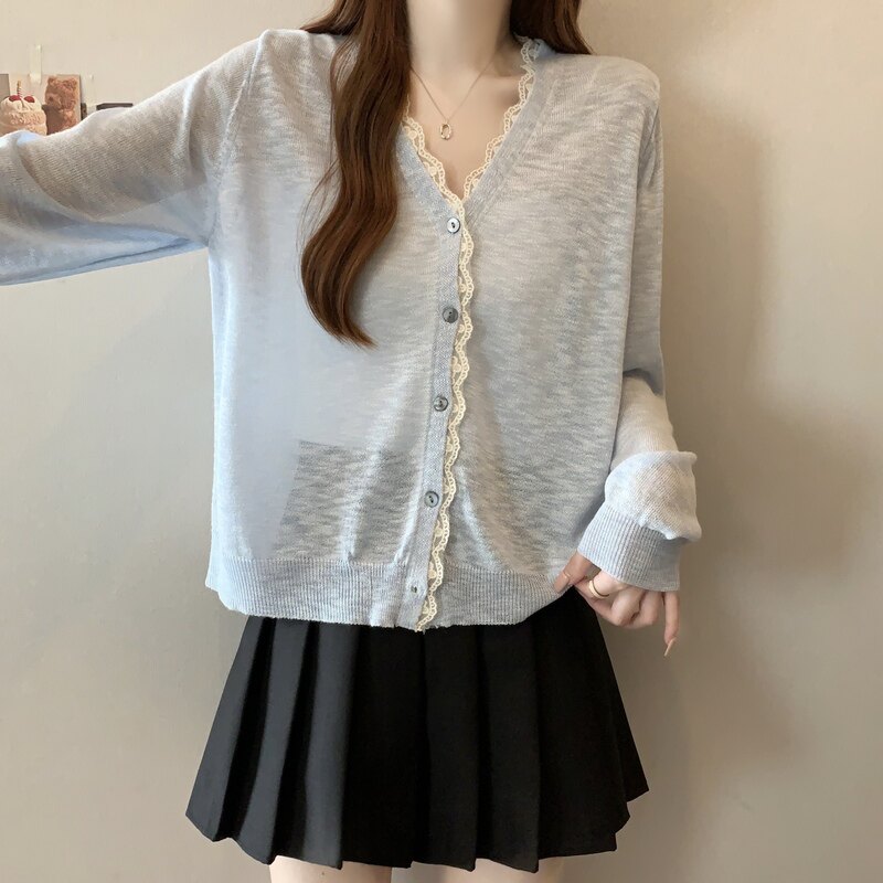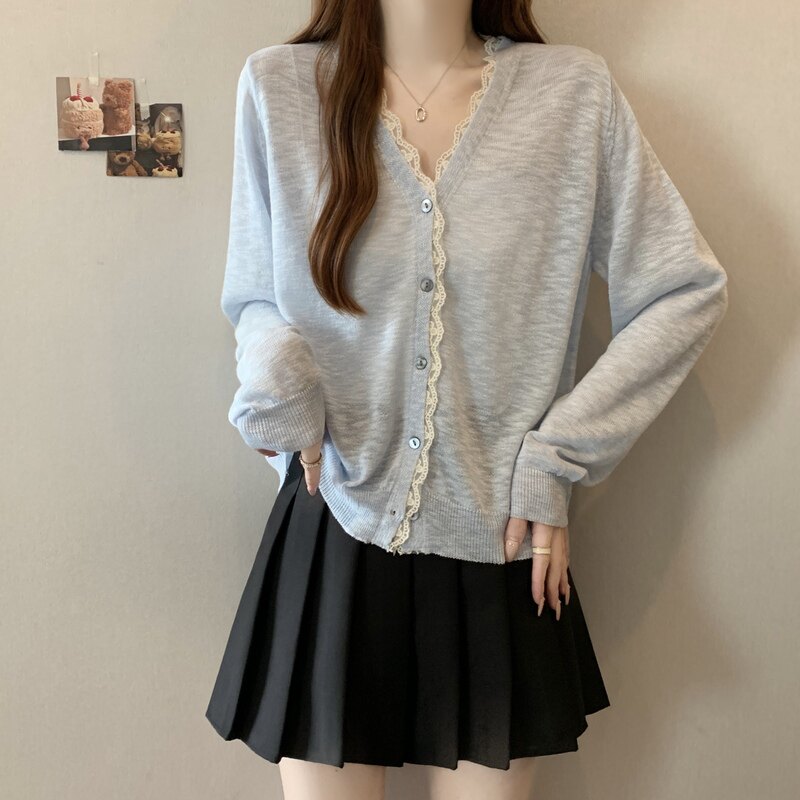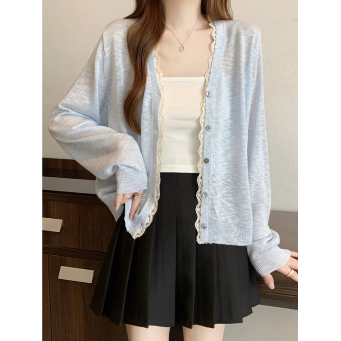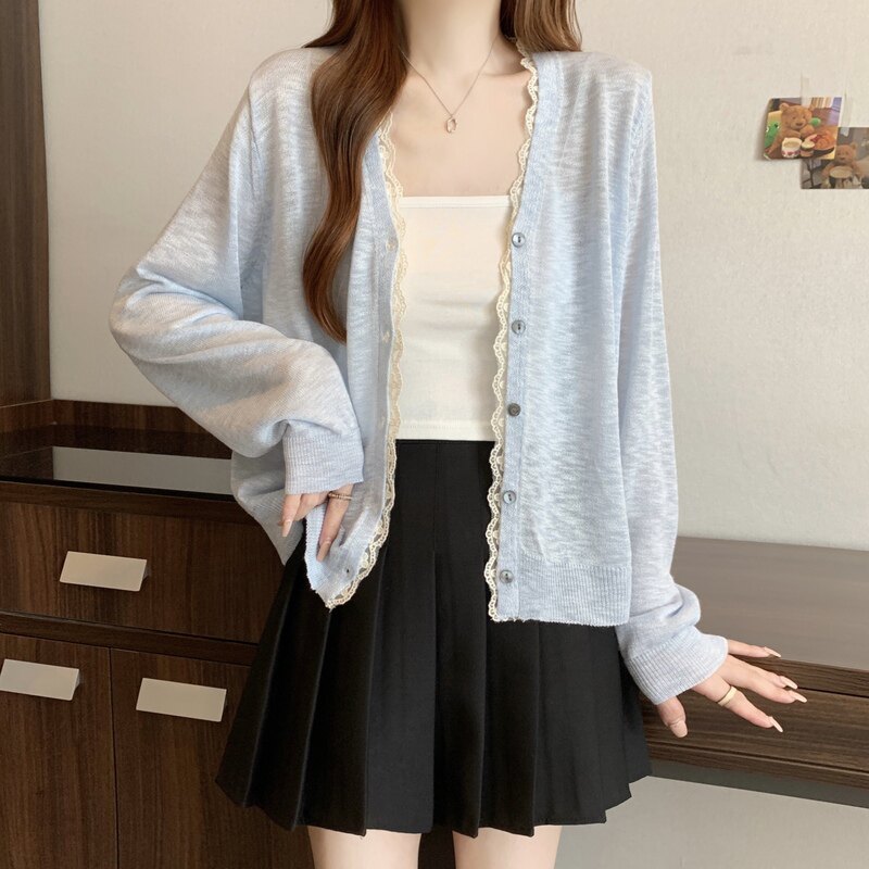 拉夏貝爾蕾絲白色防曬針織開衫女夏季2026年新款冰絲罩衫外套上衣