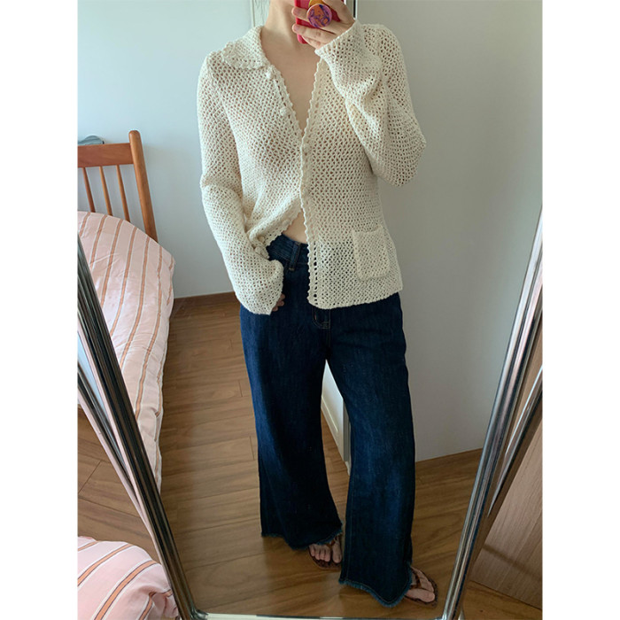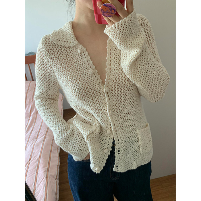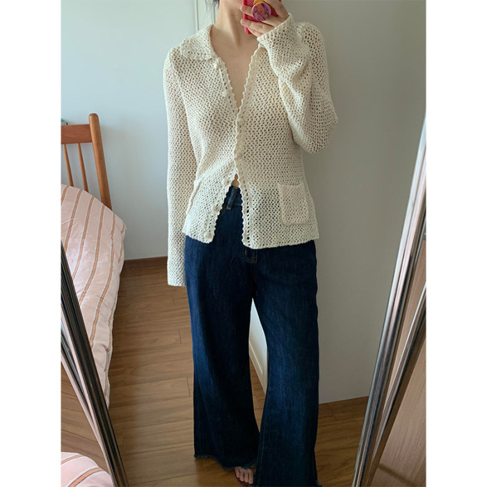 日韓尾貨剪標女裝~小衆設計高級感輕奢超好看鏤空針織衫