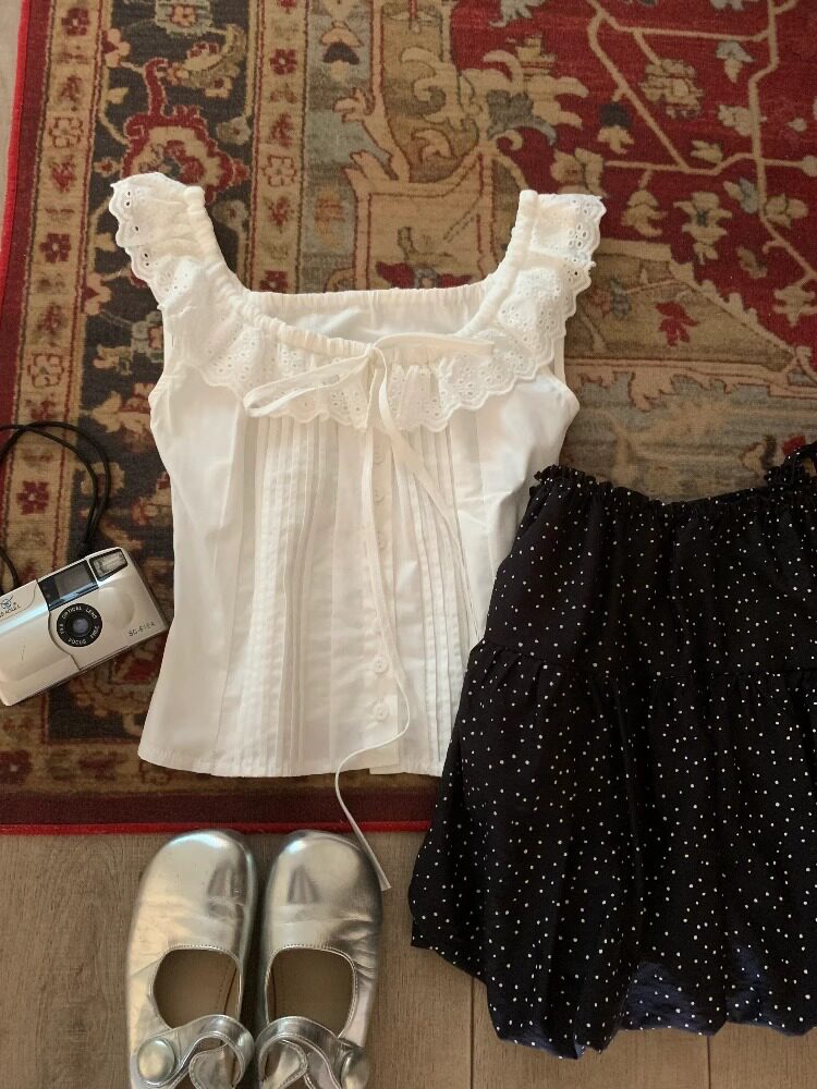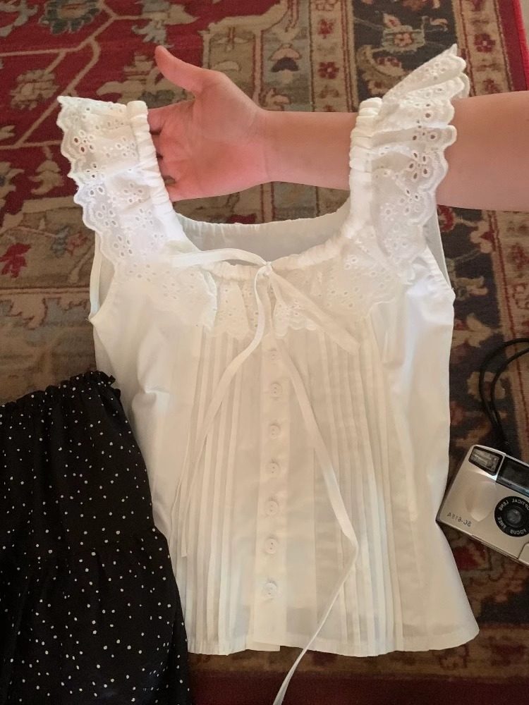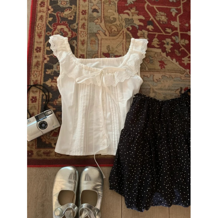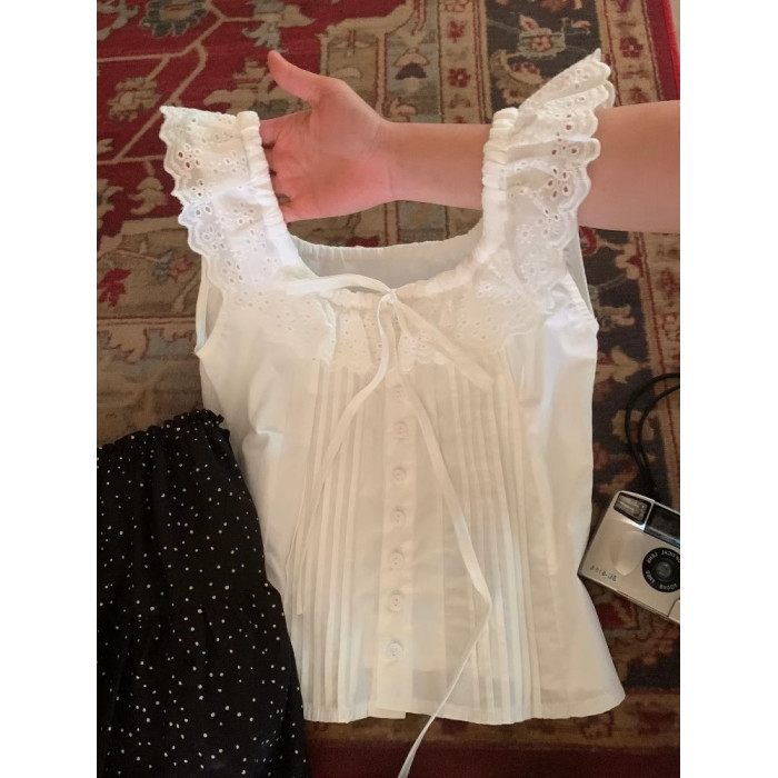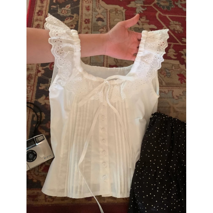 白色蕾絲花邊小飛袖襯衫女夏季2025新款甜美無袖小吊帶背心上衣