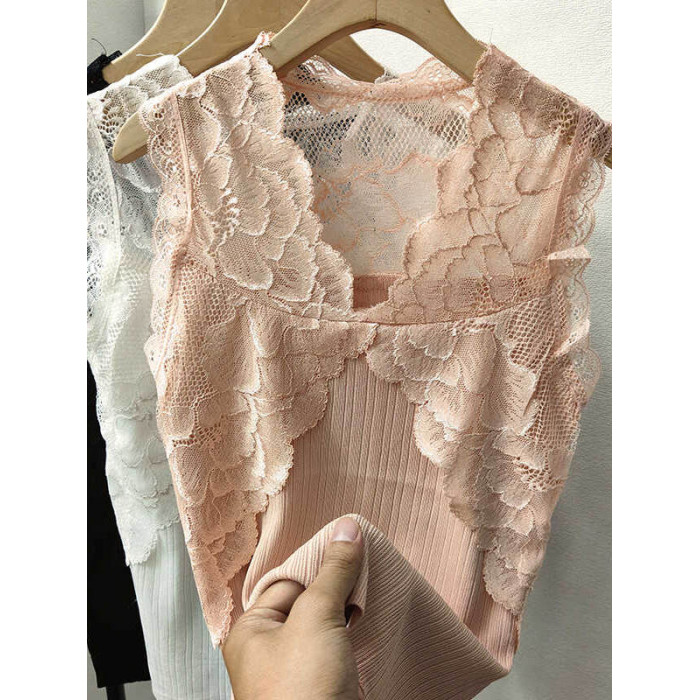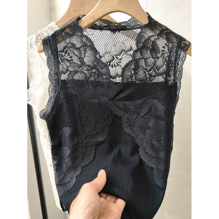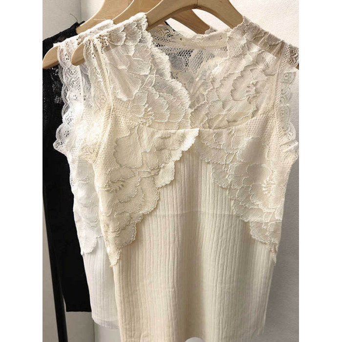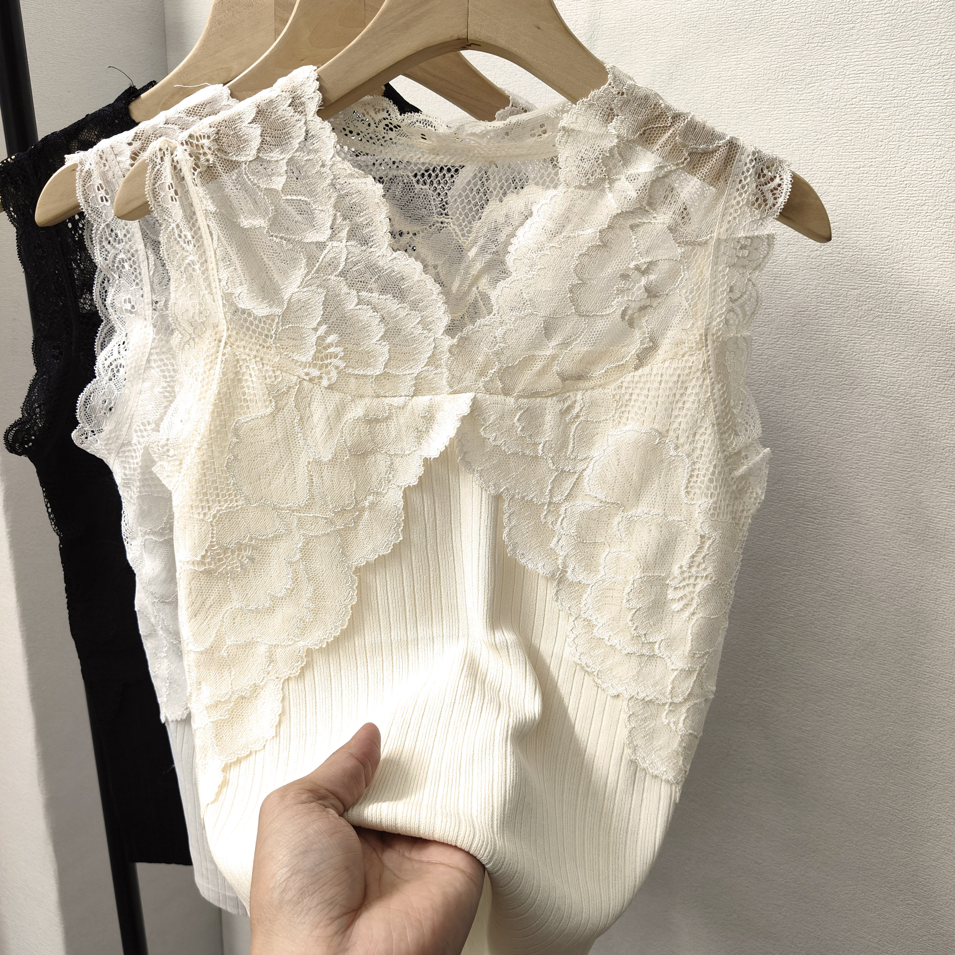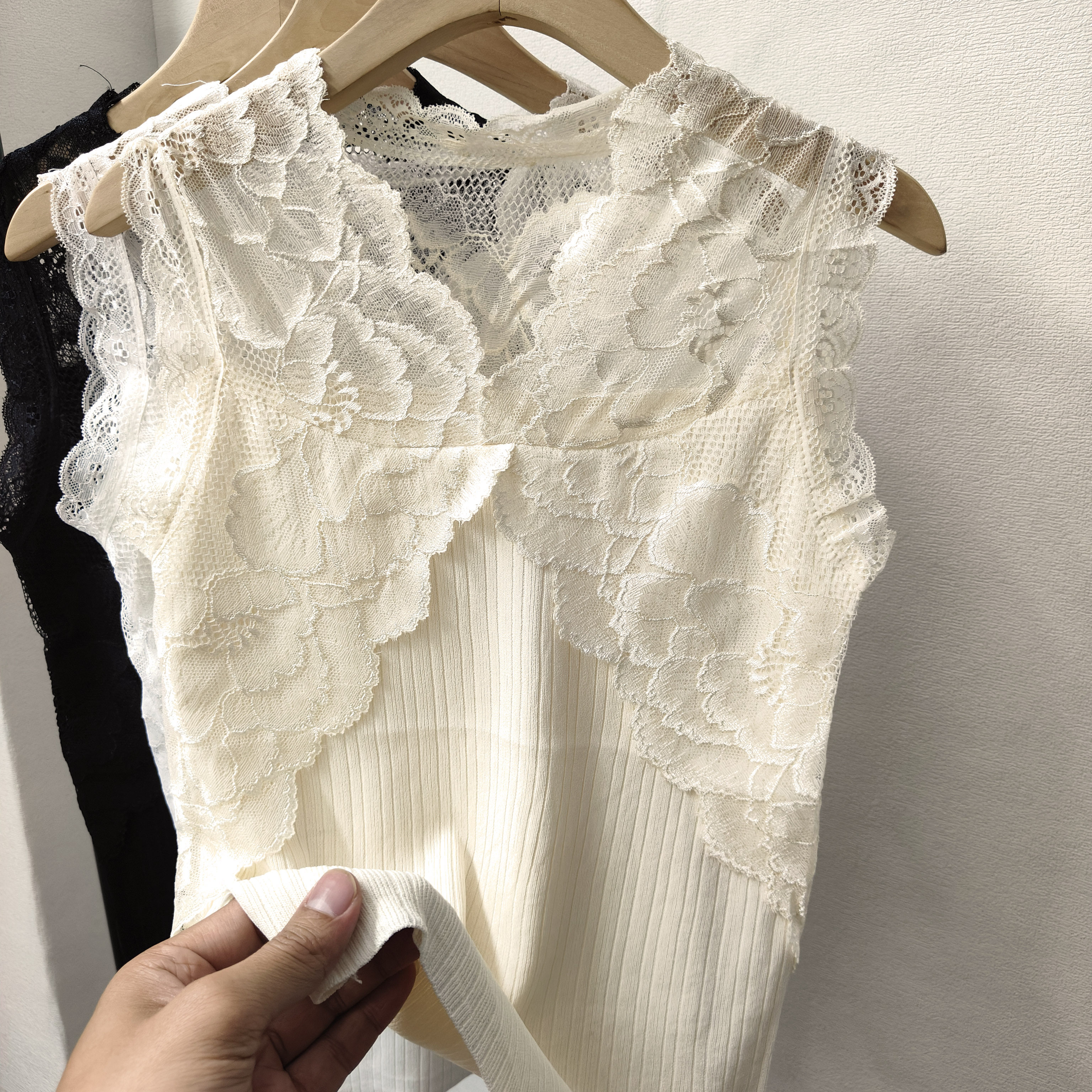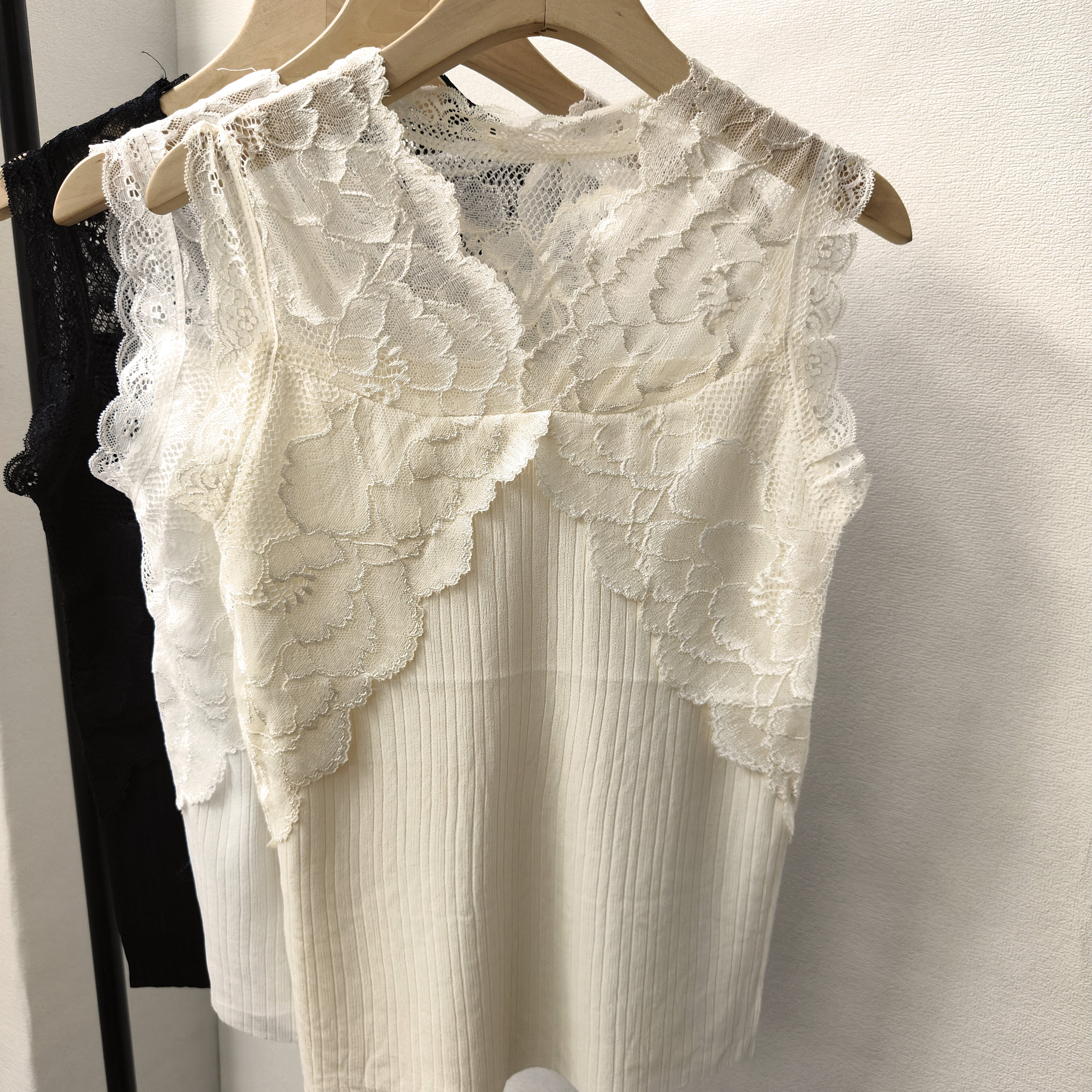 歐貨女裝剪標撤櫃時尚蕾絲拼接西裝內搭背心性感別致吊帶上衣