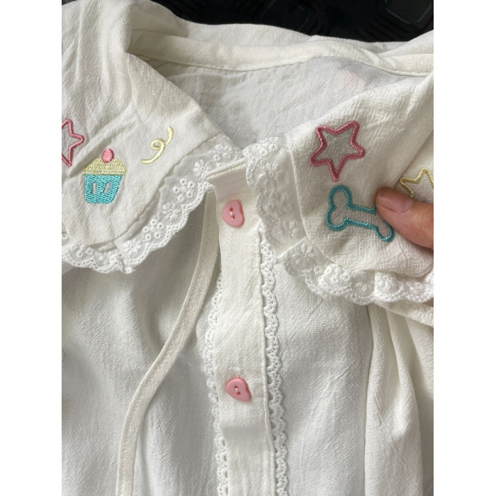 日系軟妹可愛娃娃領白色長袖襯衫女夏季新款學院風復古百搭jk上衣