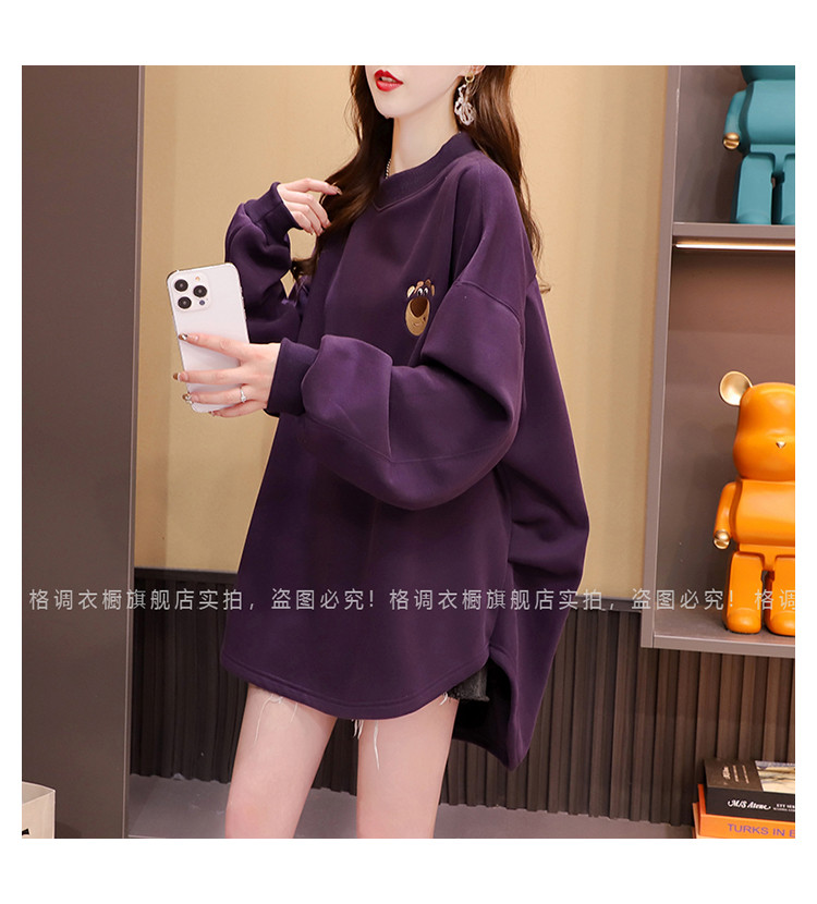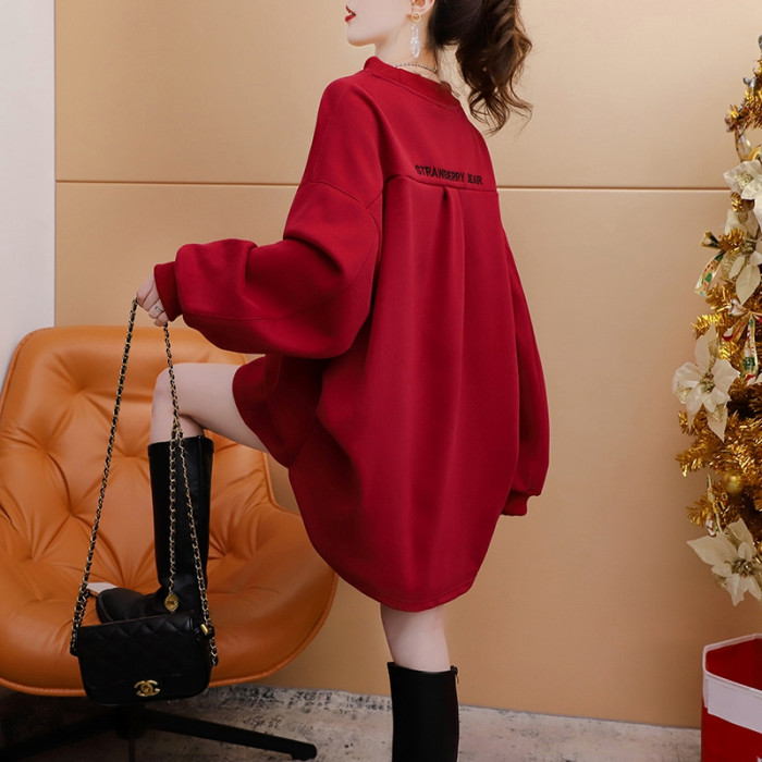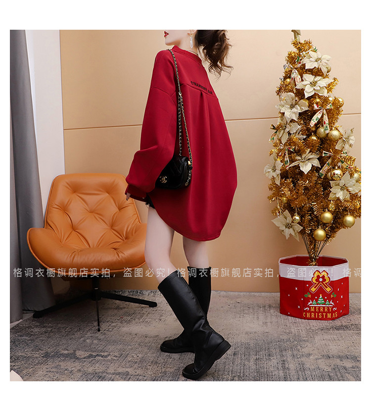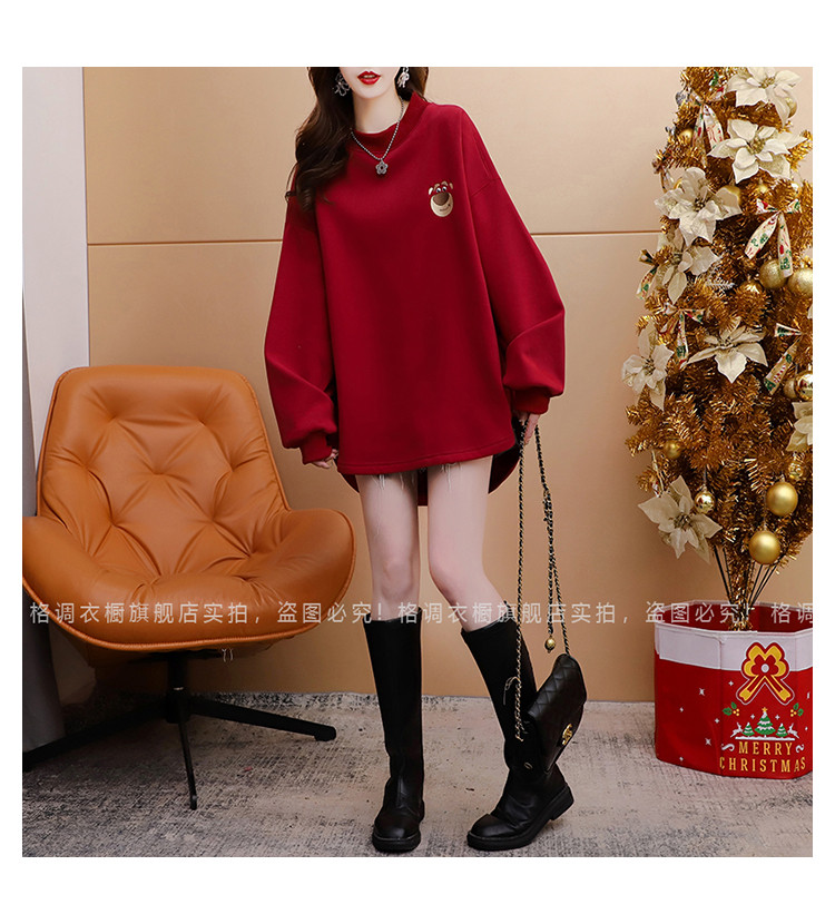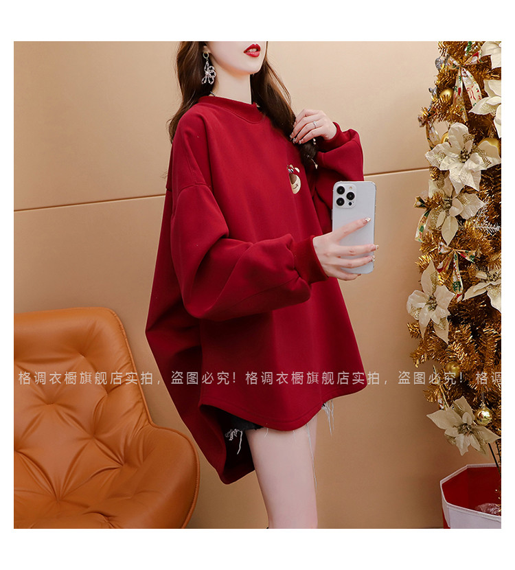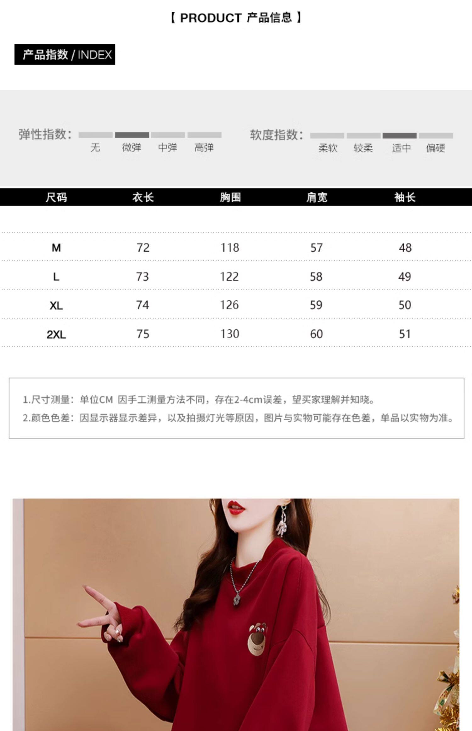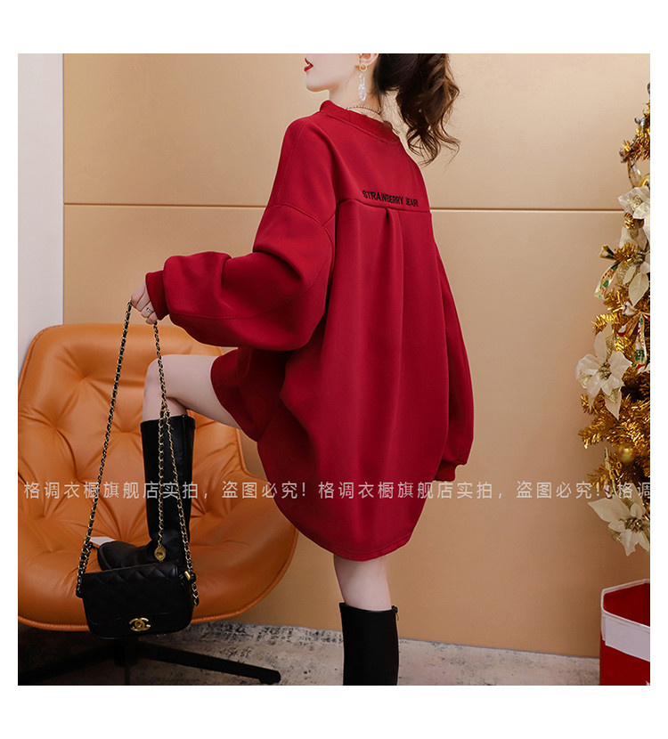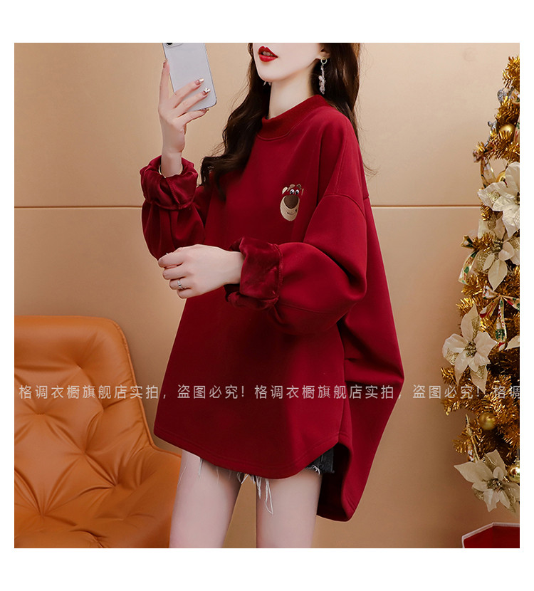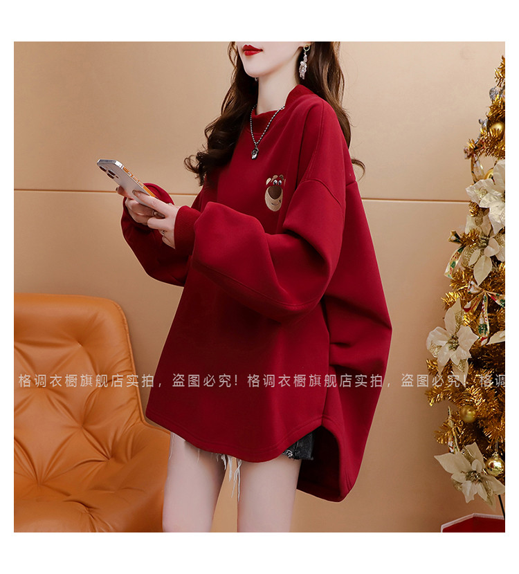 慵懶風設計感加絨加厚衛衣女2024秋冬新款大碼女裝設計感紅色上衣