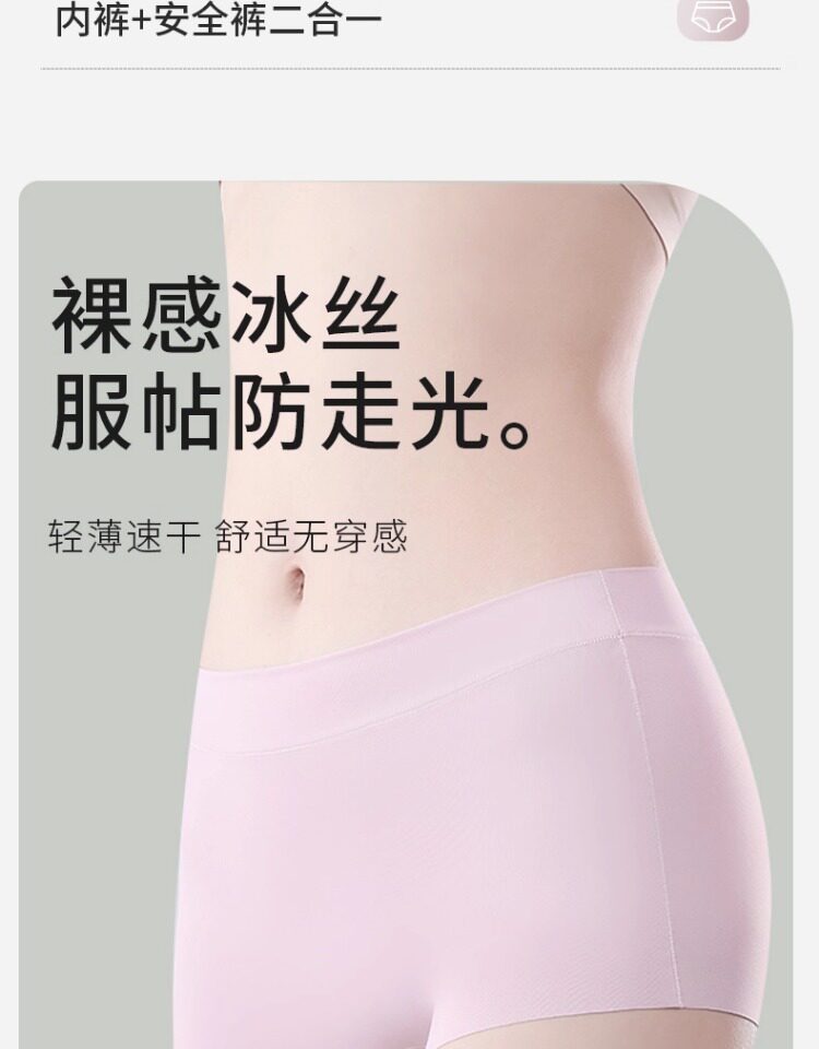 貓人安全褲女防走光不卷邊冰絲無痕二合一內褲平角女士薄款打底褲