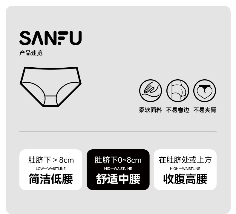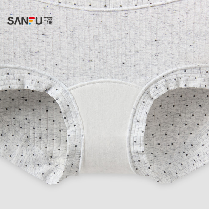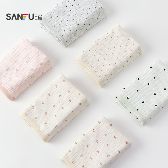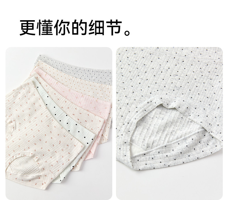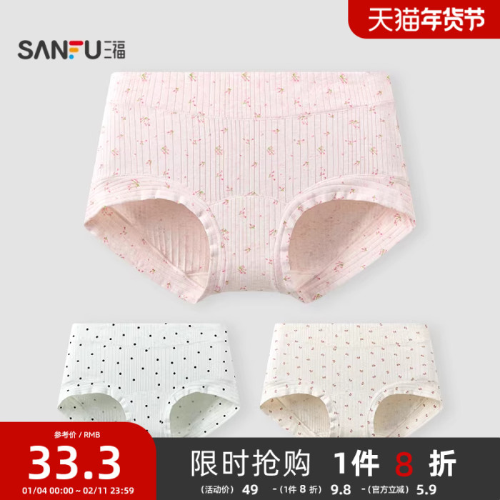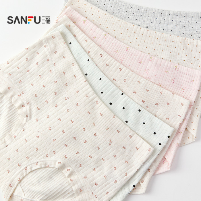 三福【2條裝】舒適中腰內褲女款甜美印花加長抗菌底襠平角褲女士
