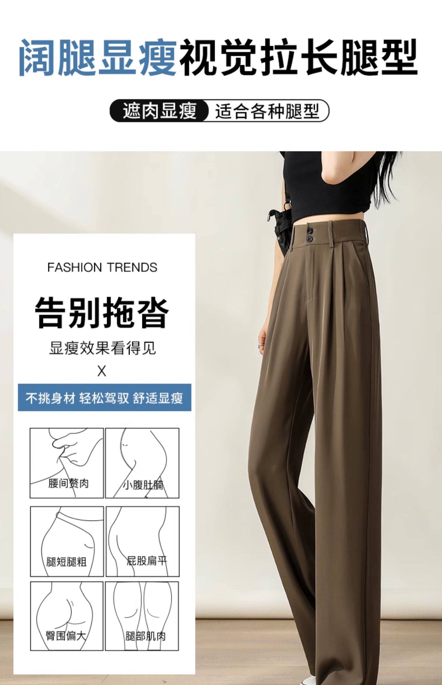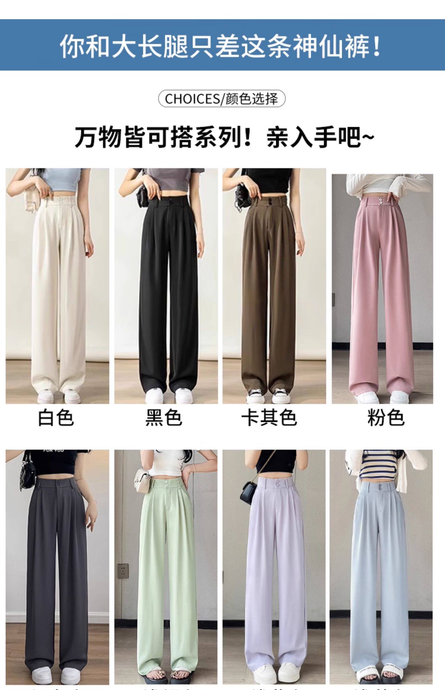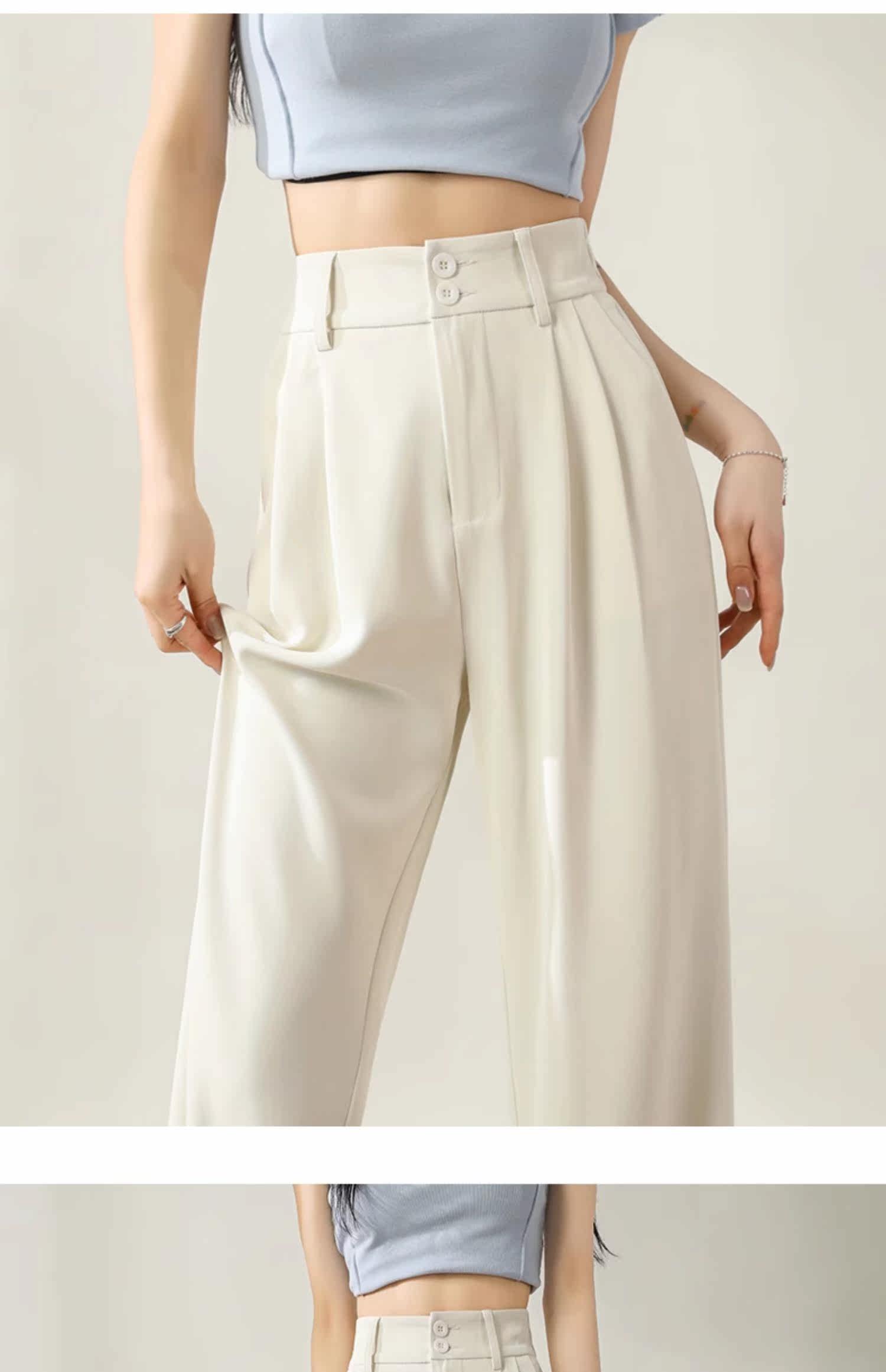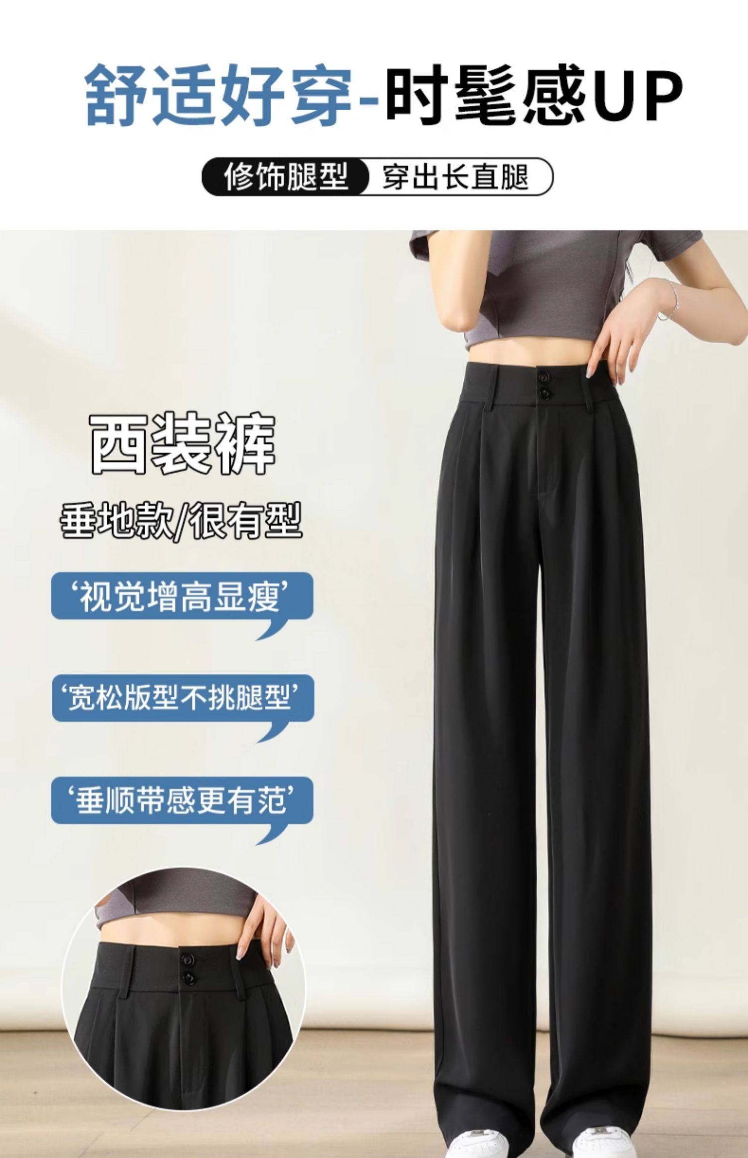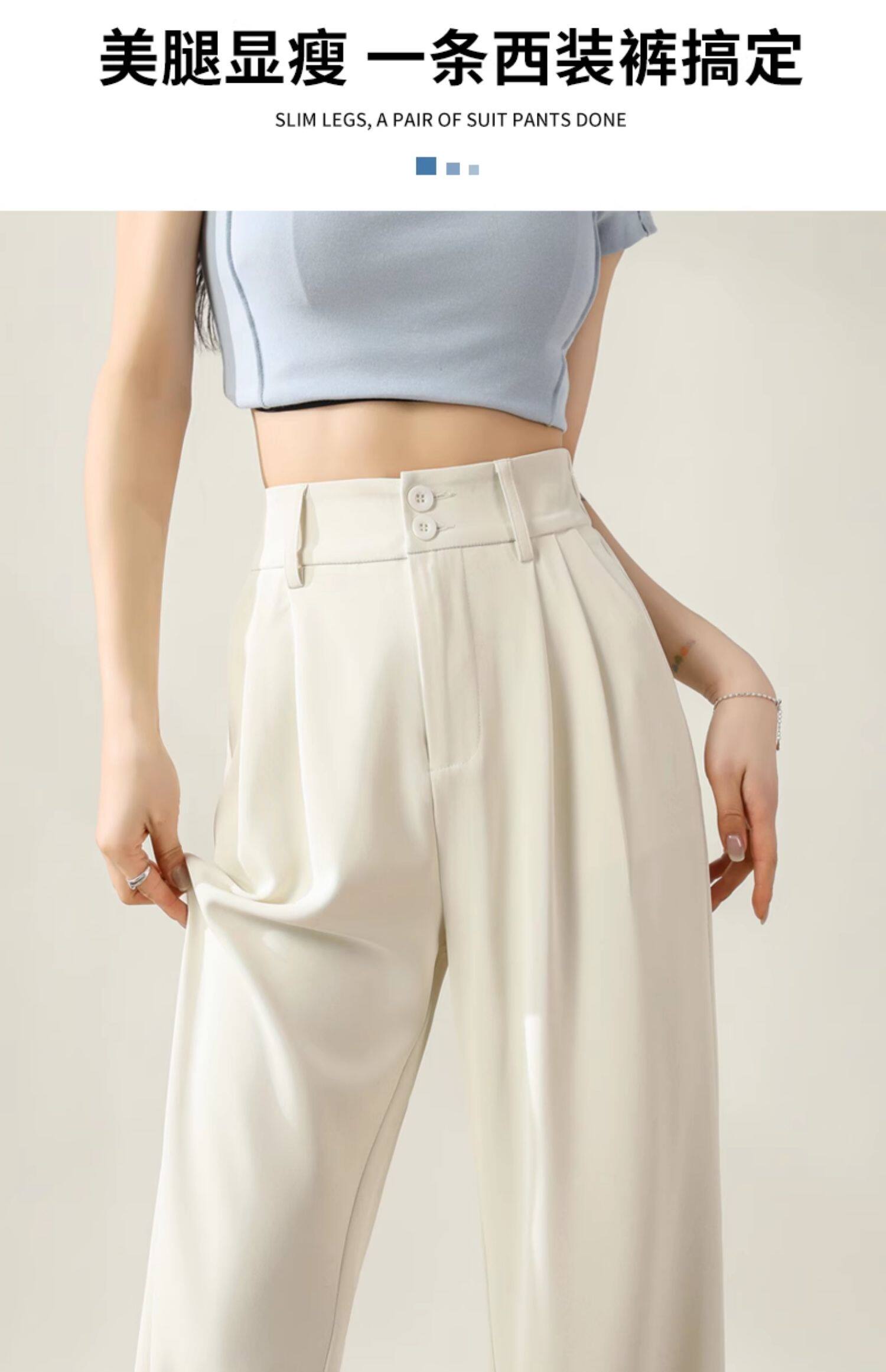 濶腿褲女高腰小個子白色2026新款夏季薄款寬鬆休閒直筒春秋西裝褲