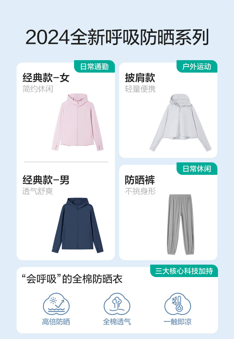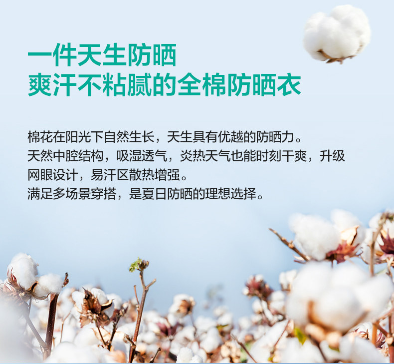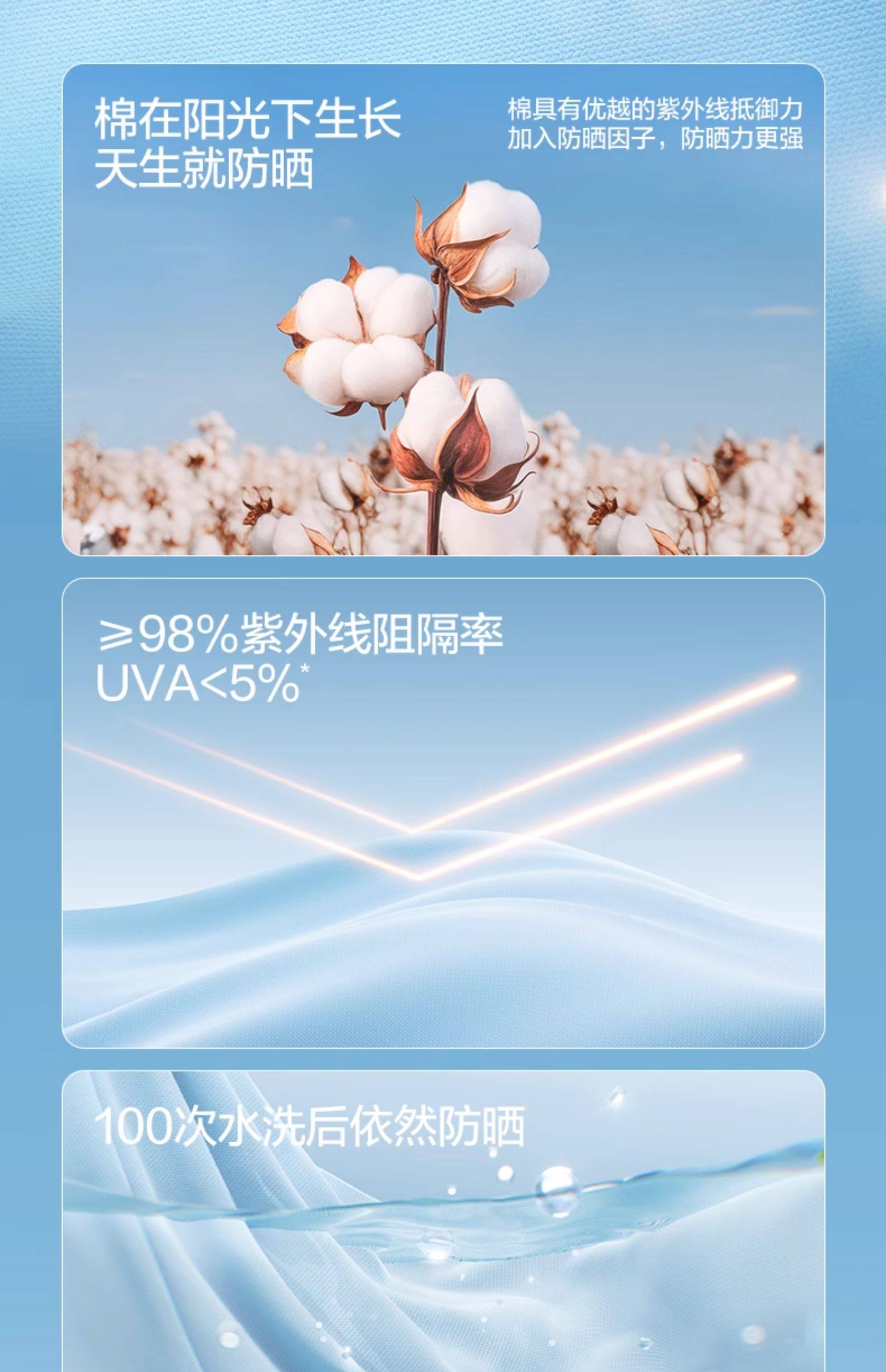 全棉時代男女士防曬衣UPF100+防紫外線抗菌透氣涼感防曬服皮膚衣