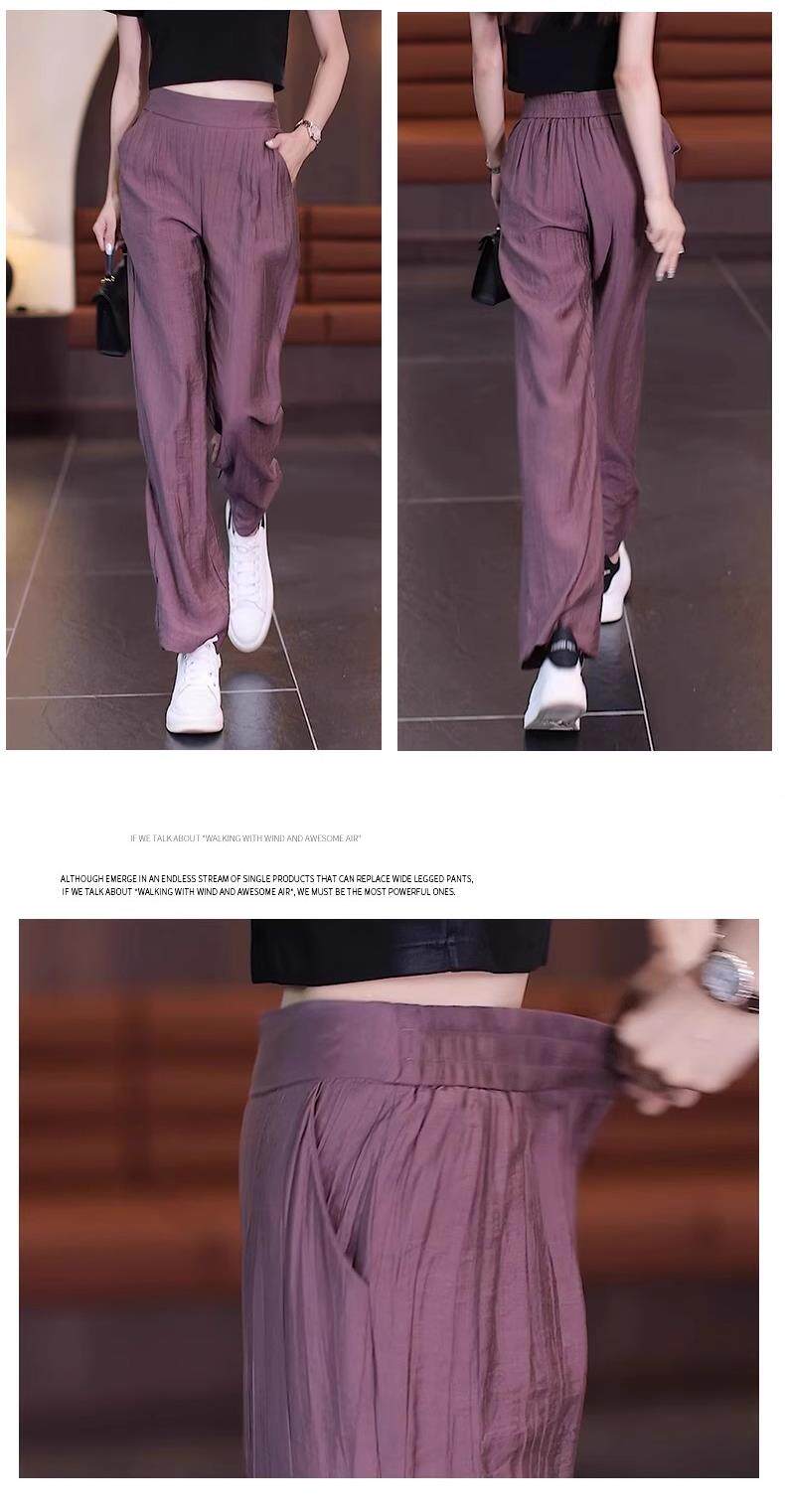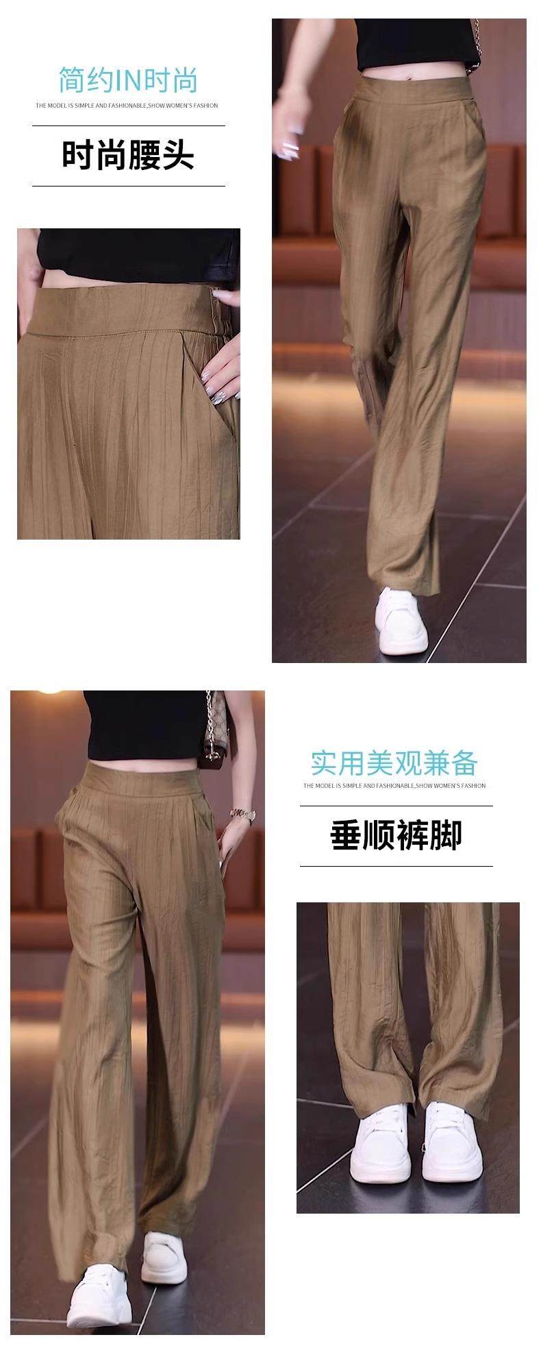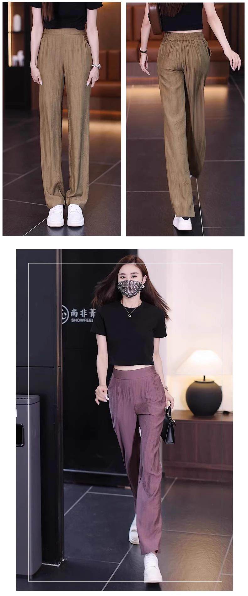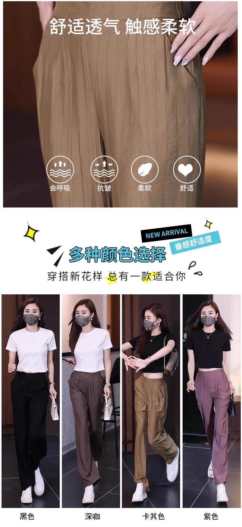 撿漏~休閒冰絲九分濶腿褲女夏季薄款寬鬆垂感小個子直筒褲子