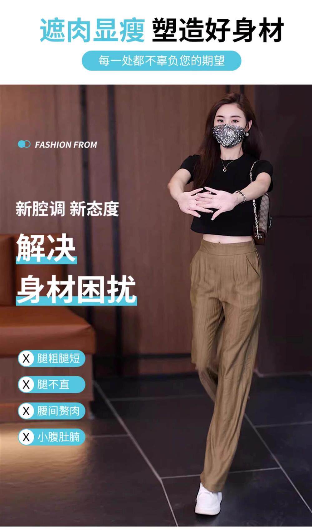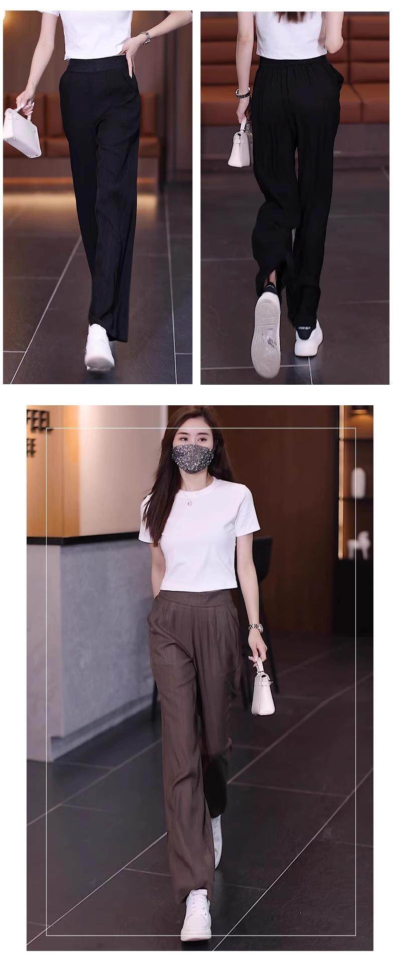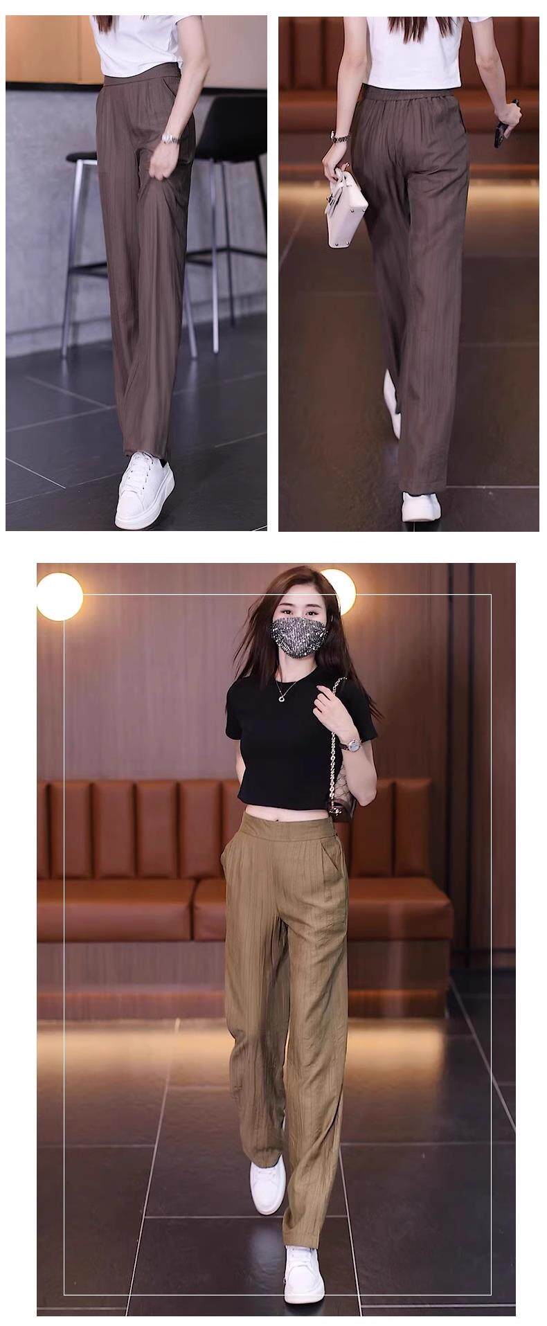 撿漏~休閒冰絲九分濶腿褲女夏季薄款寬鬆垂感小個子直筒褲子