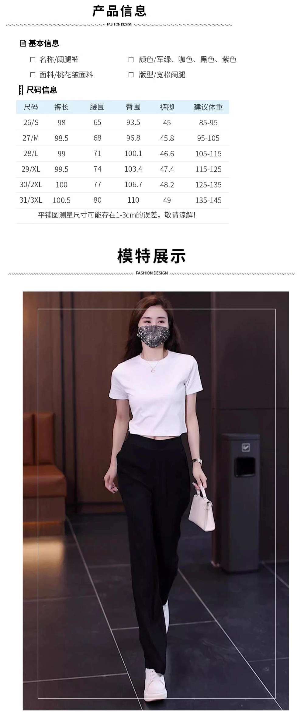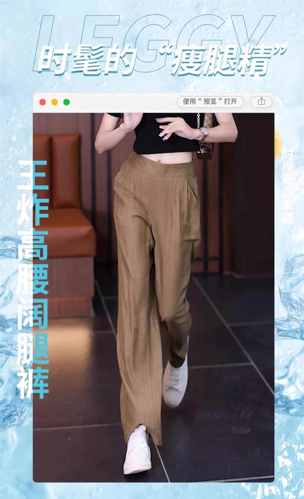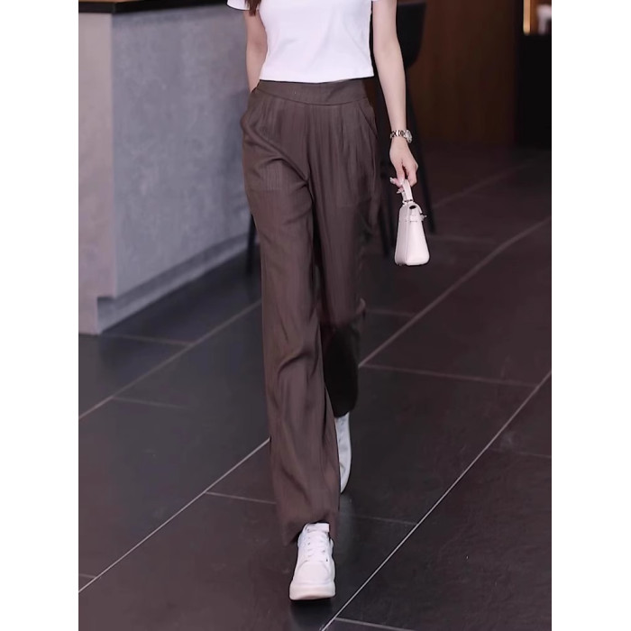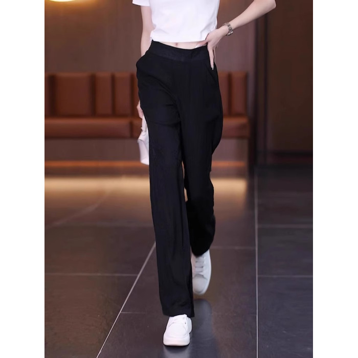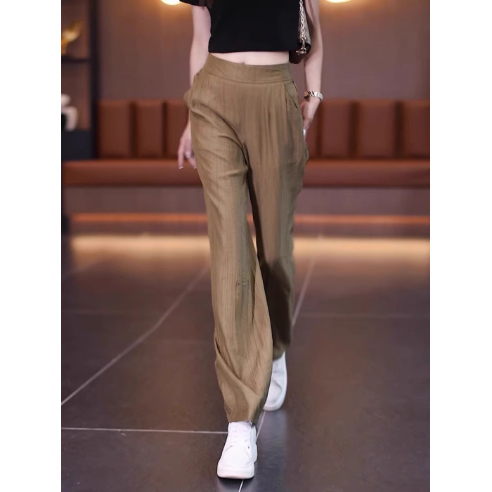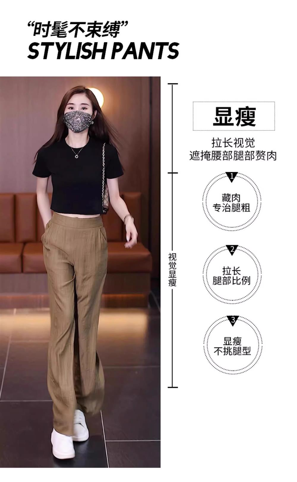 撿漏~休閒冰絲九分濶腿褲女夏季薄款寬鬆垂感小個子直筒褲子