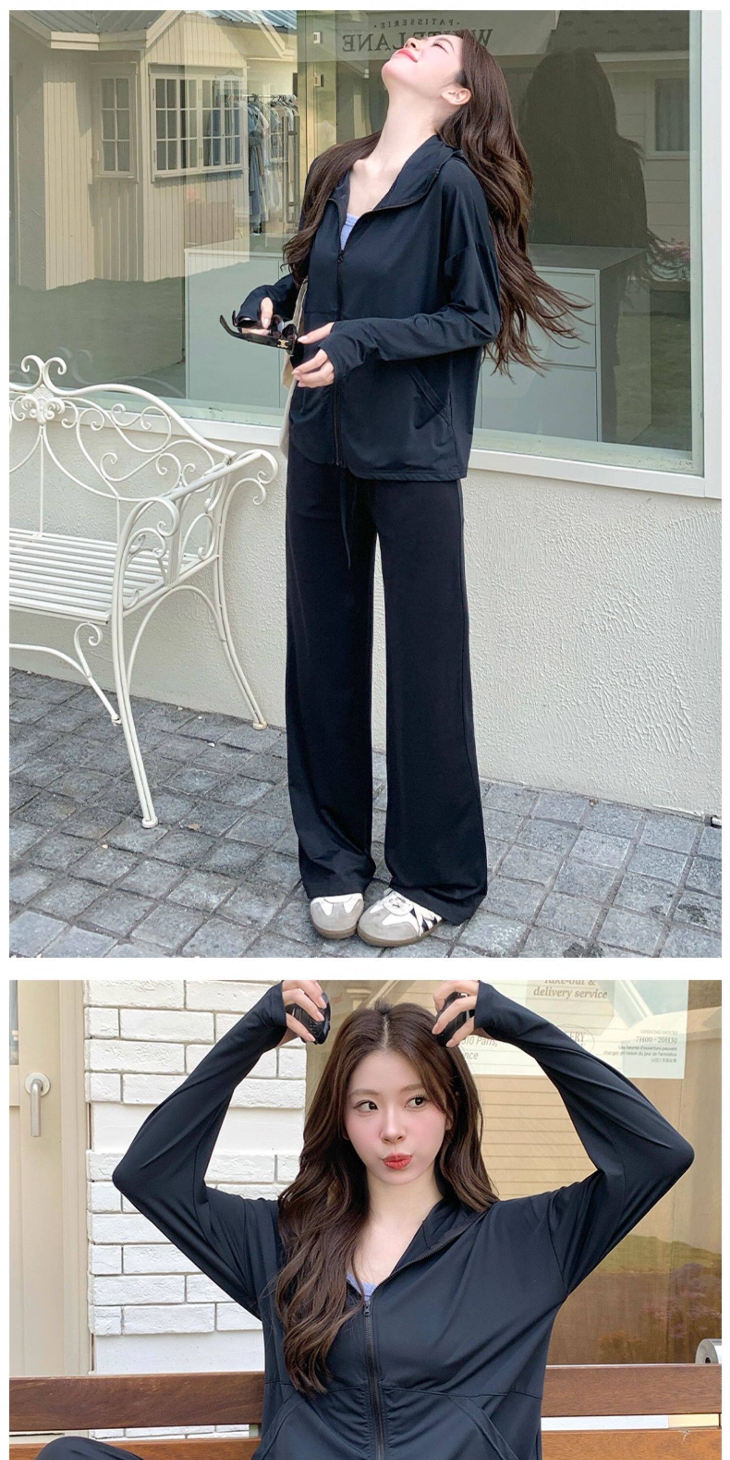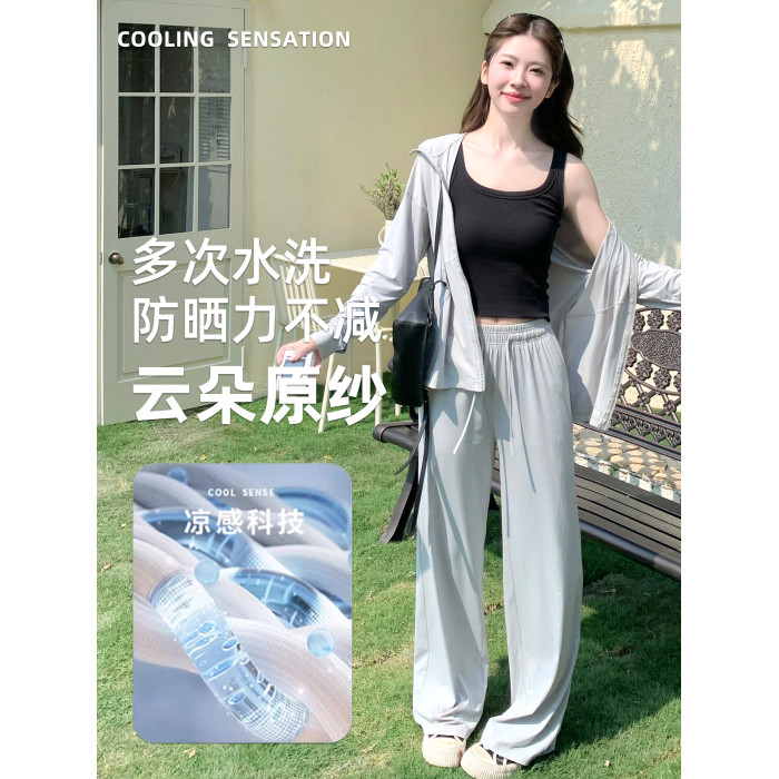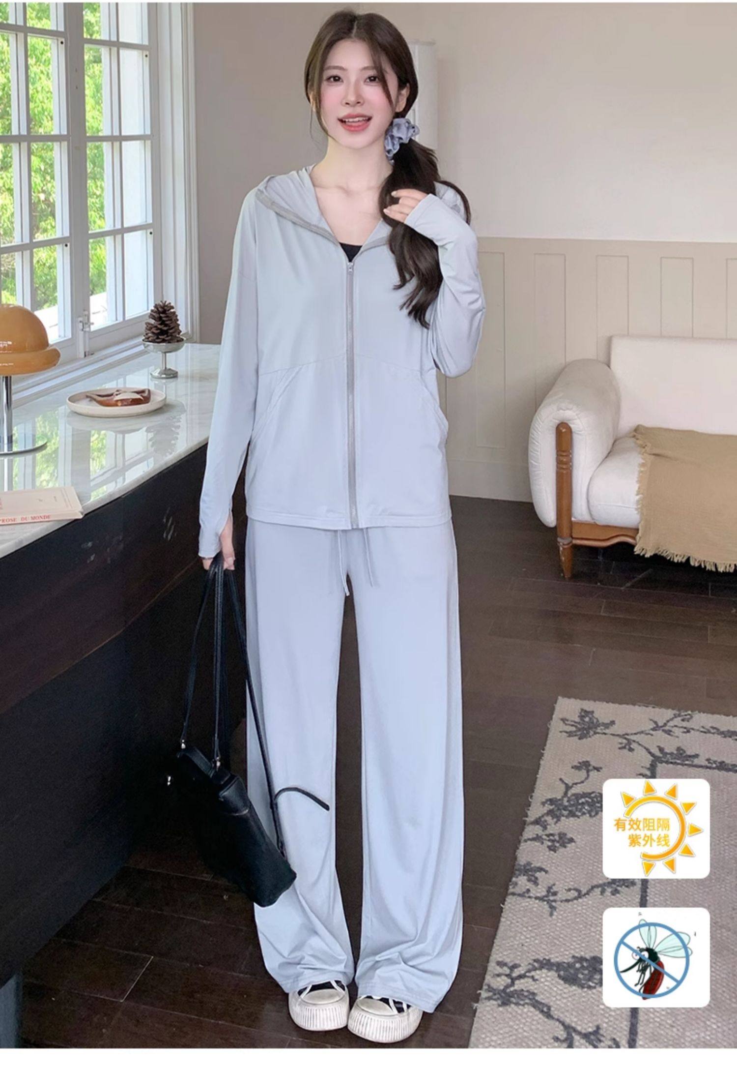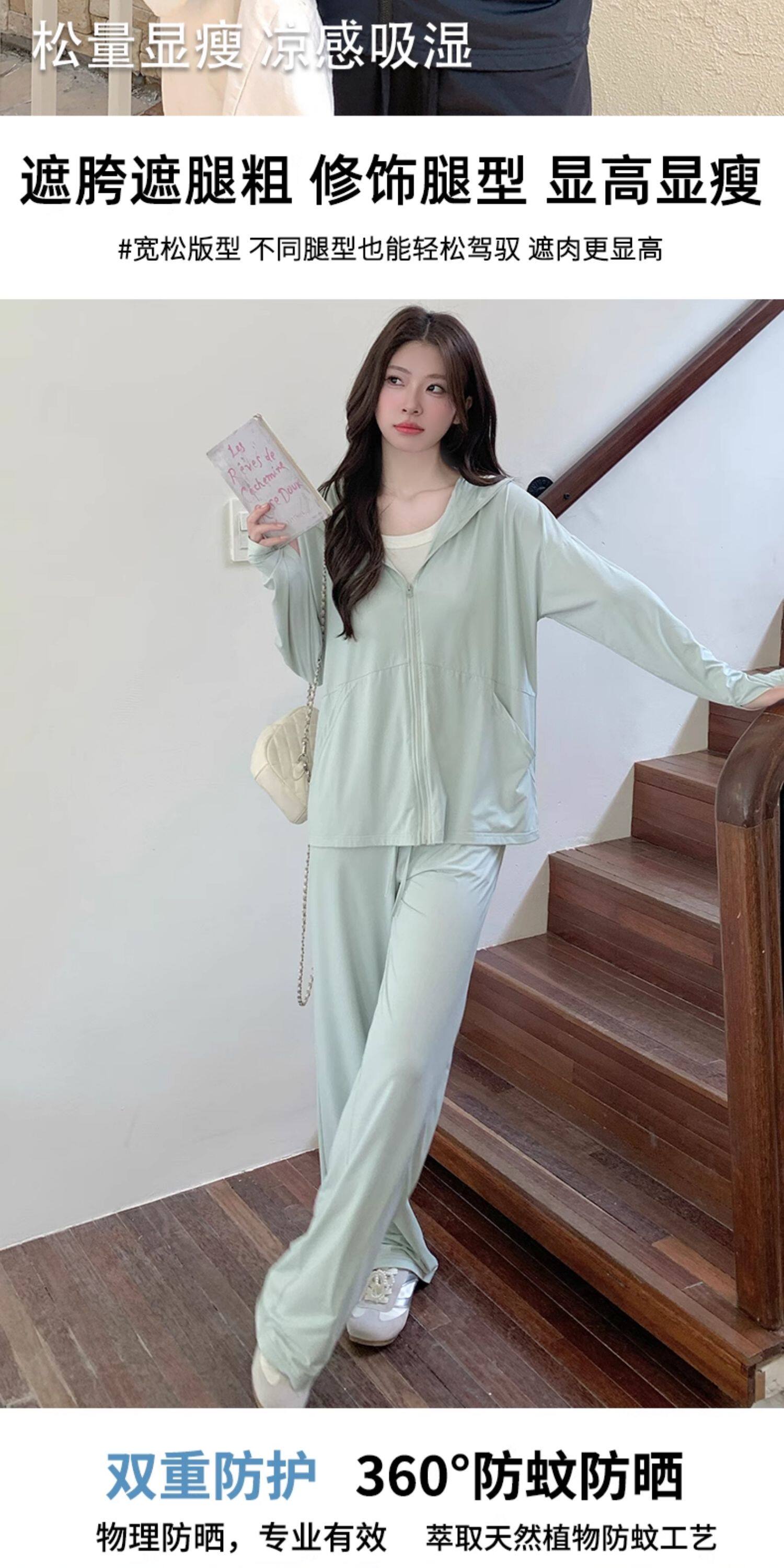 2026超火夏裝一整套防曬套裝女2026新款減齡長袖外套寬鬆濶腿褲子