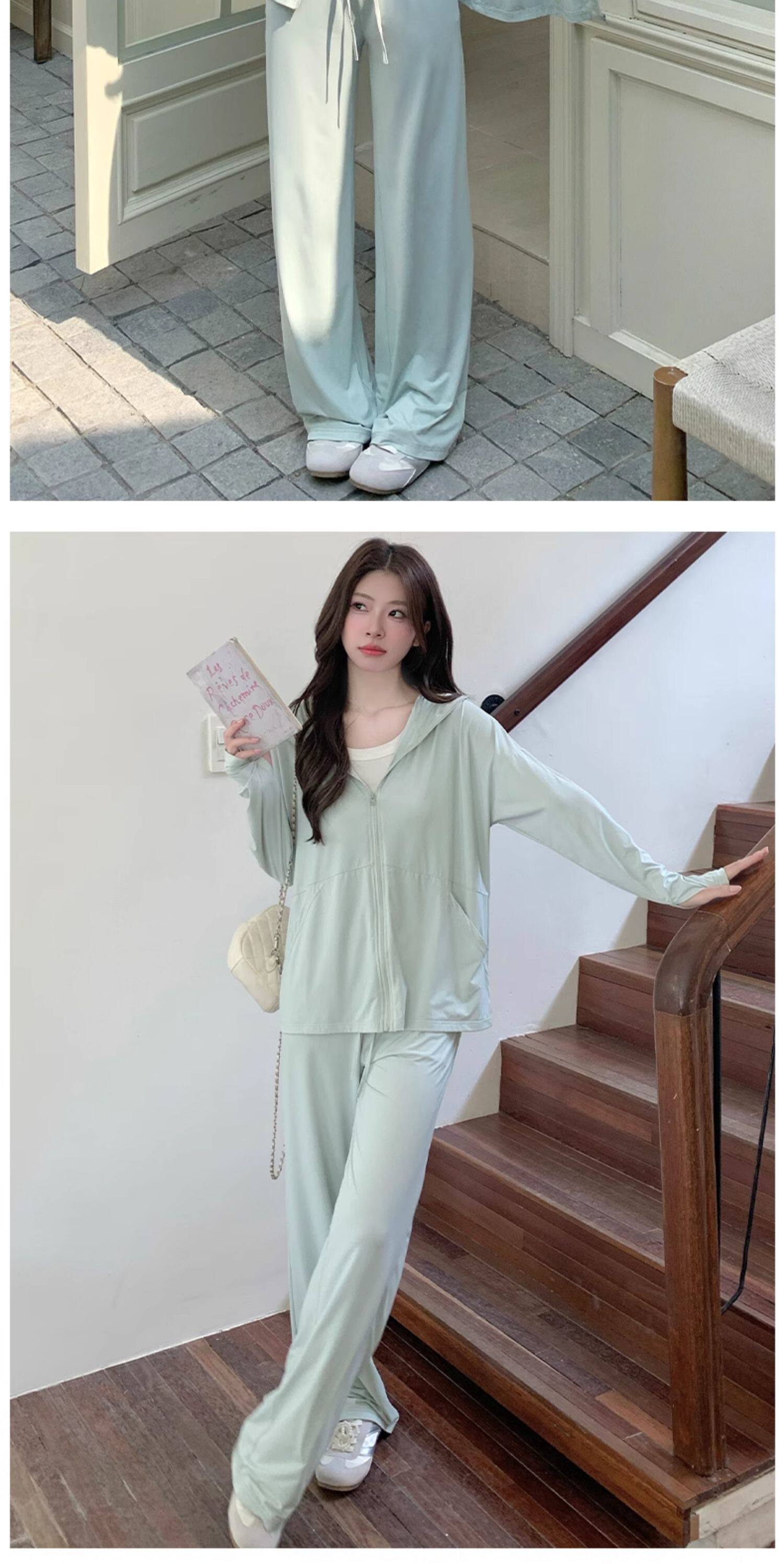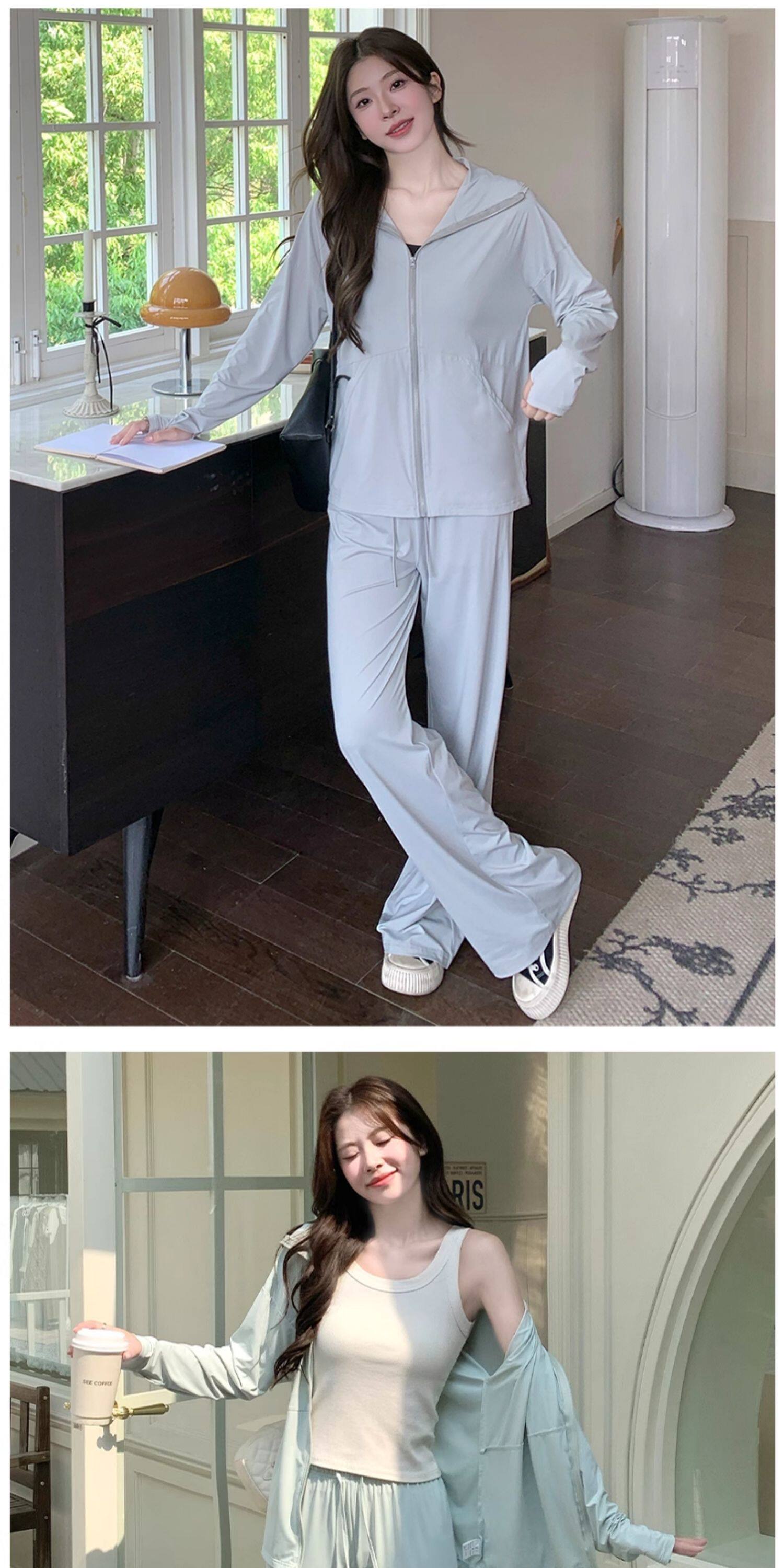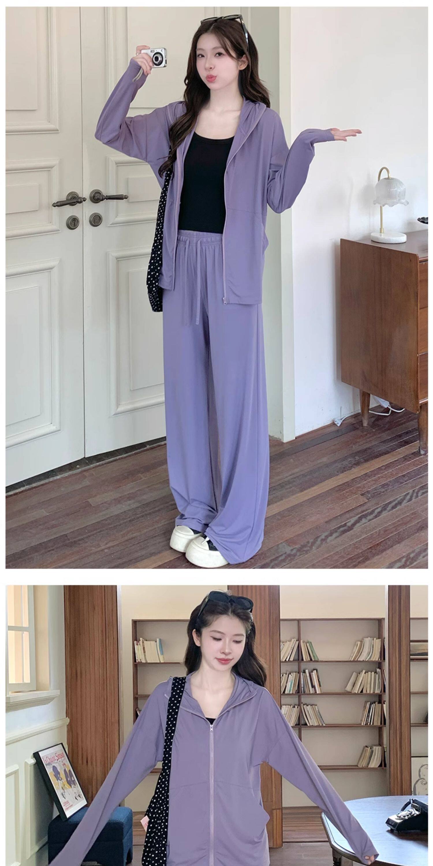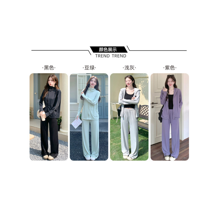 2026超火夏裝一整套防曬套裝女2026新款減齡長袖外套寬鬆濶腿褲子
