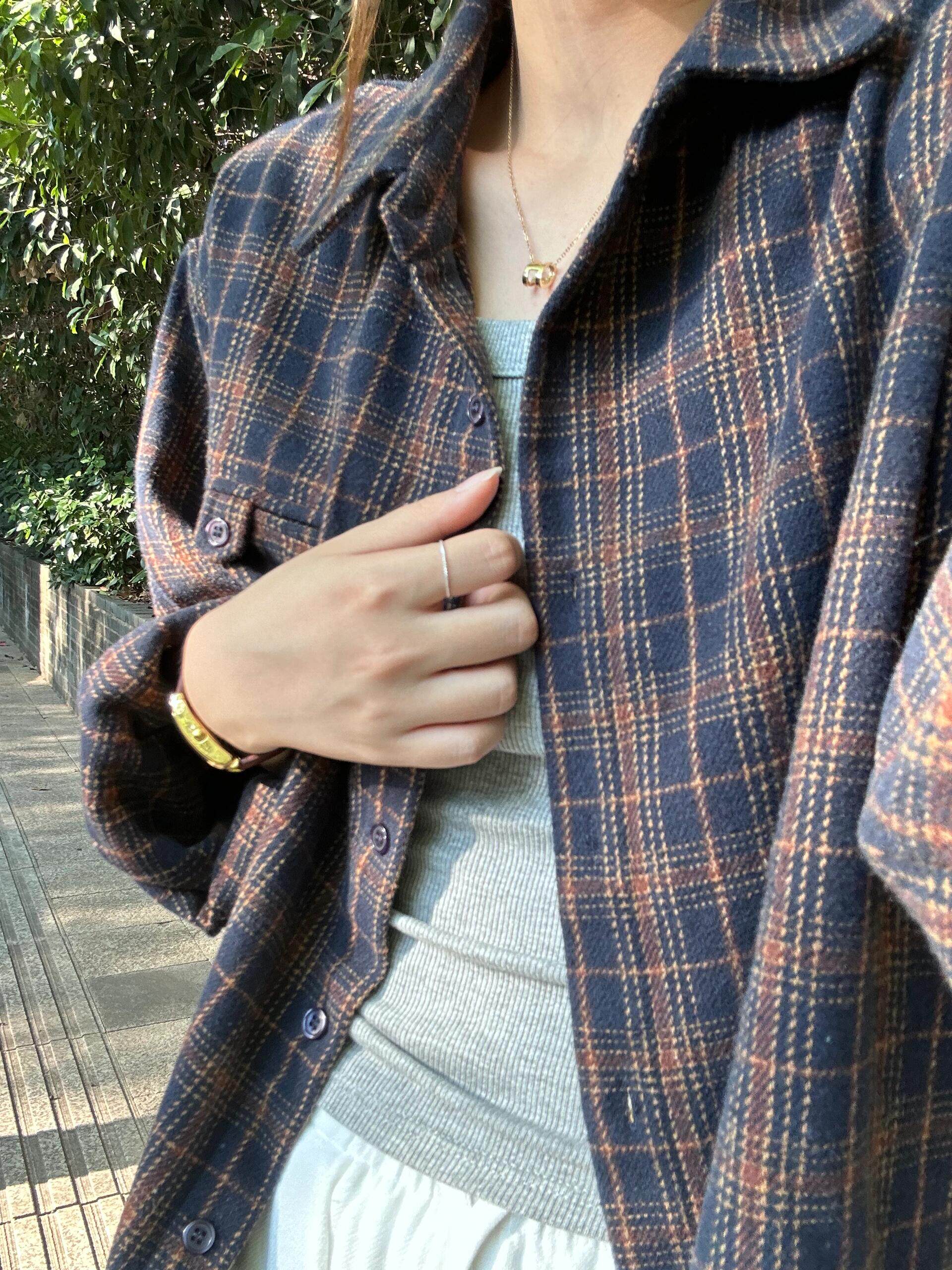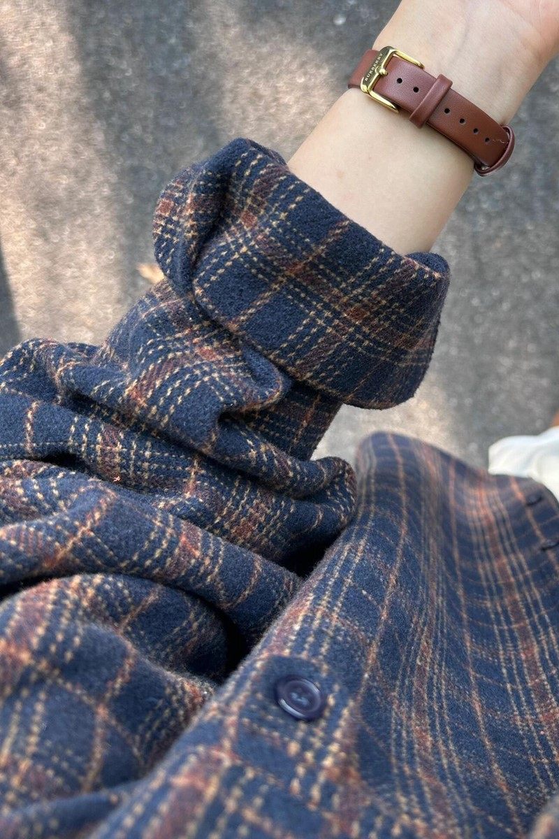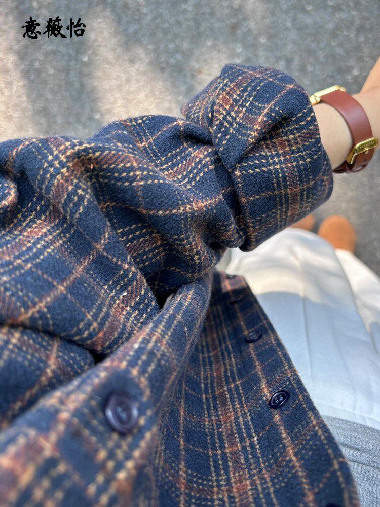 磨毛棉格子襯衫2024新款女復古高級感襯衣內搭曡穿上衣秋冬薄外套