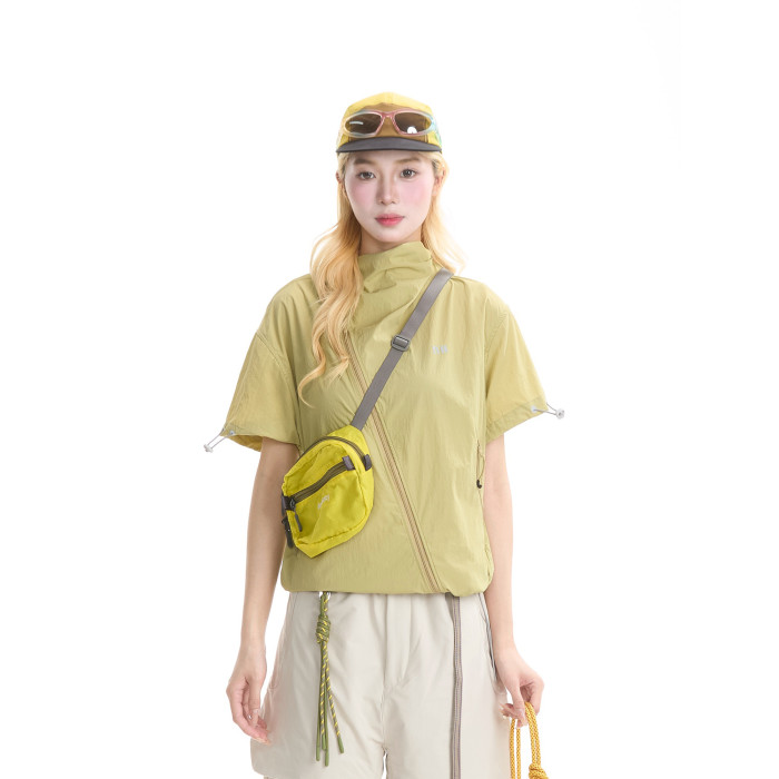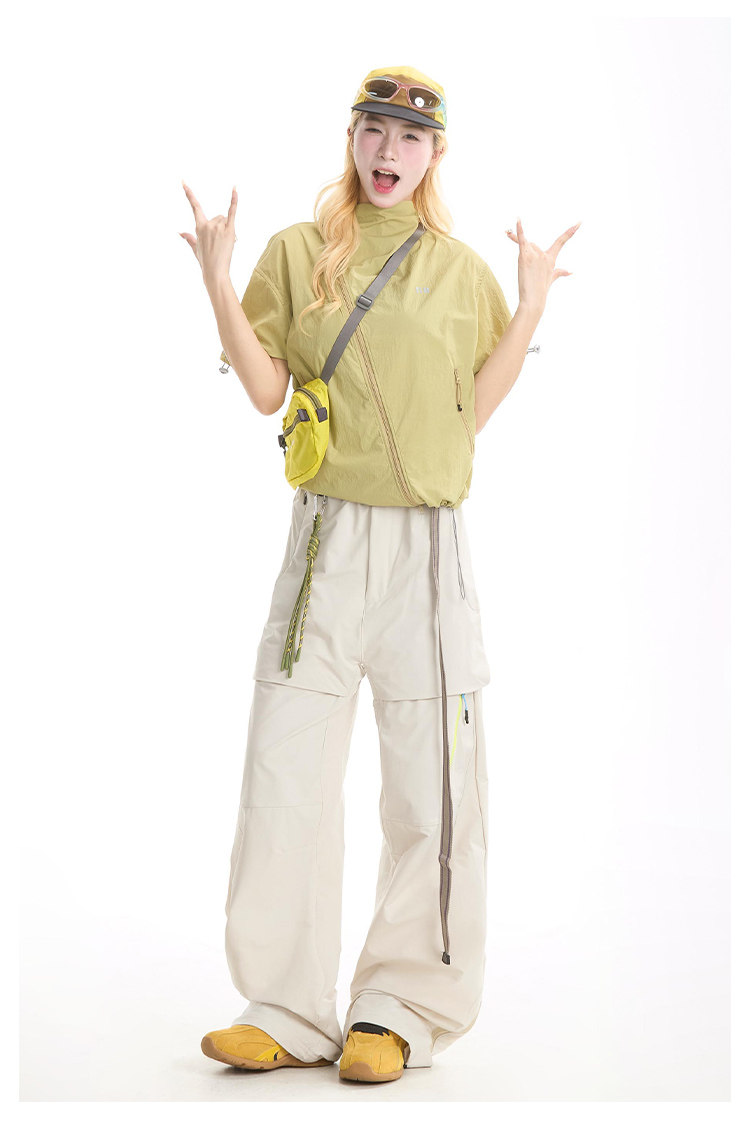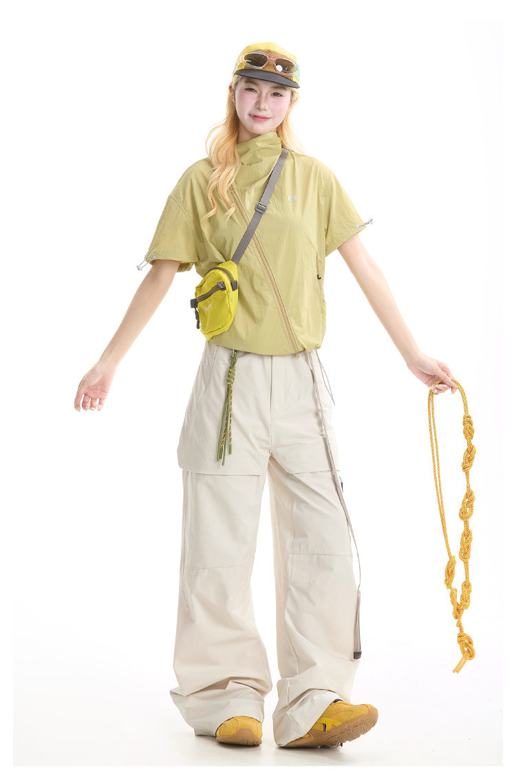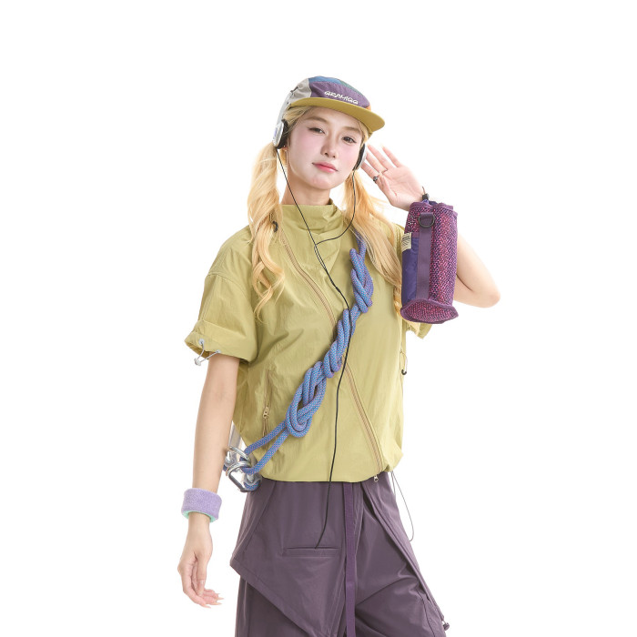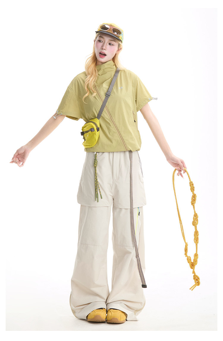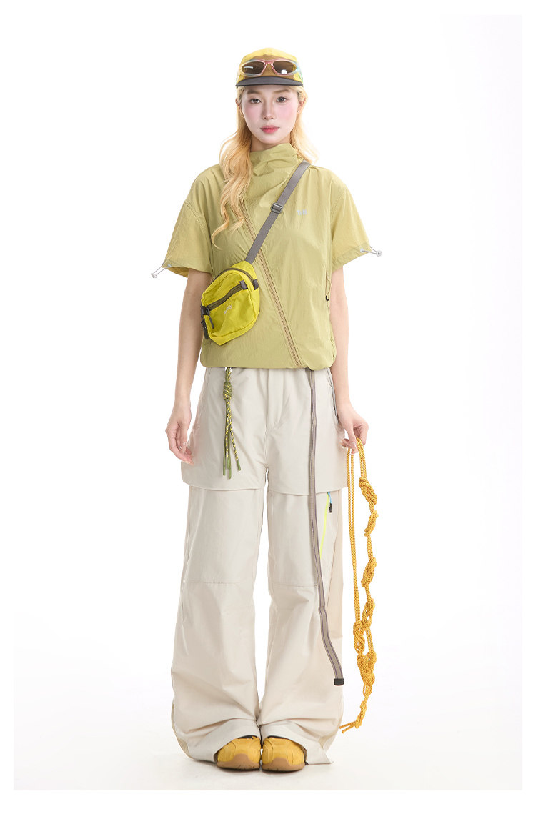 NERESUM美式機能風斜拉鍊短袖襯衫女戶外山系輕薄速乾工裝上衣