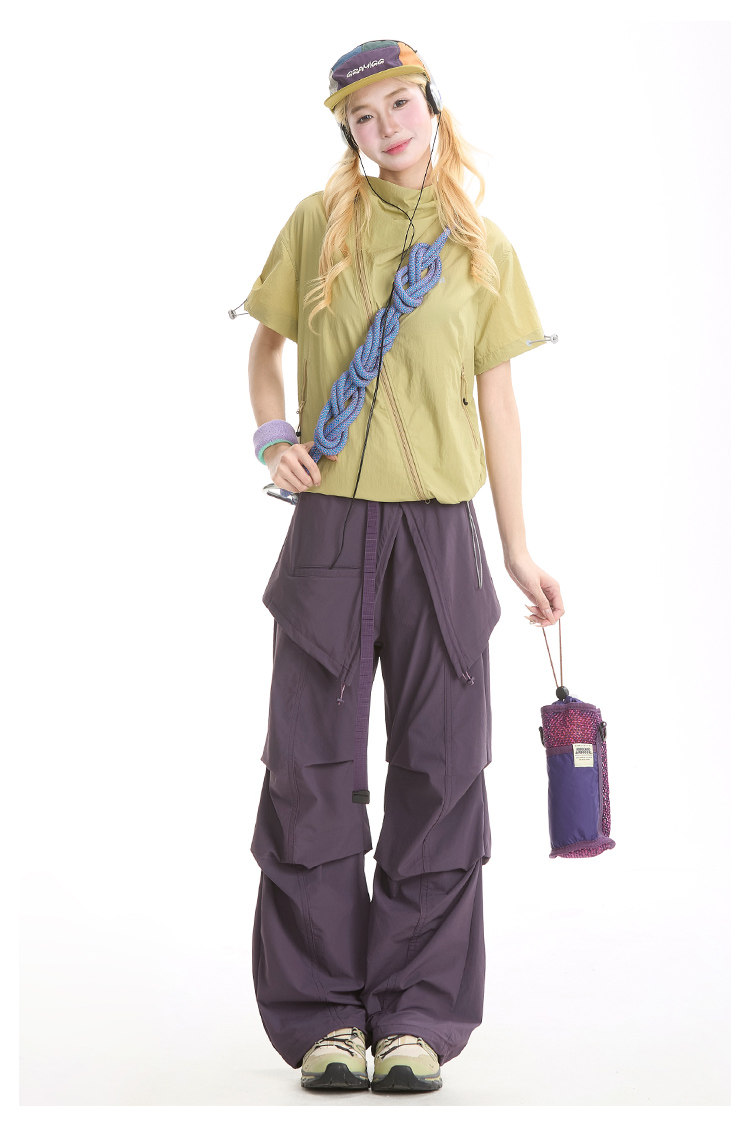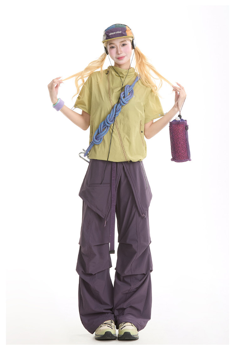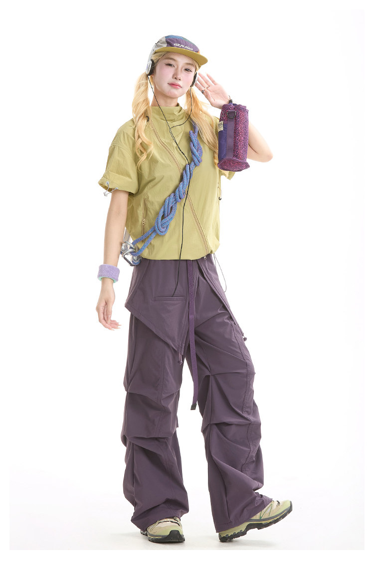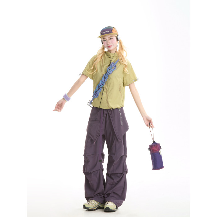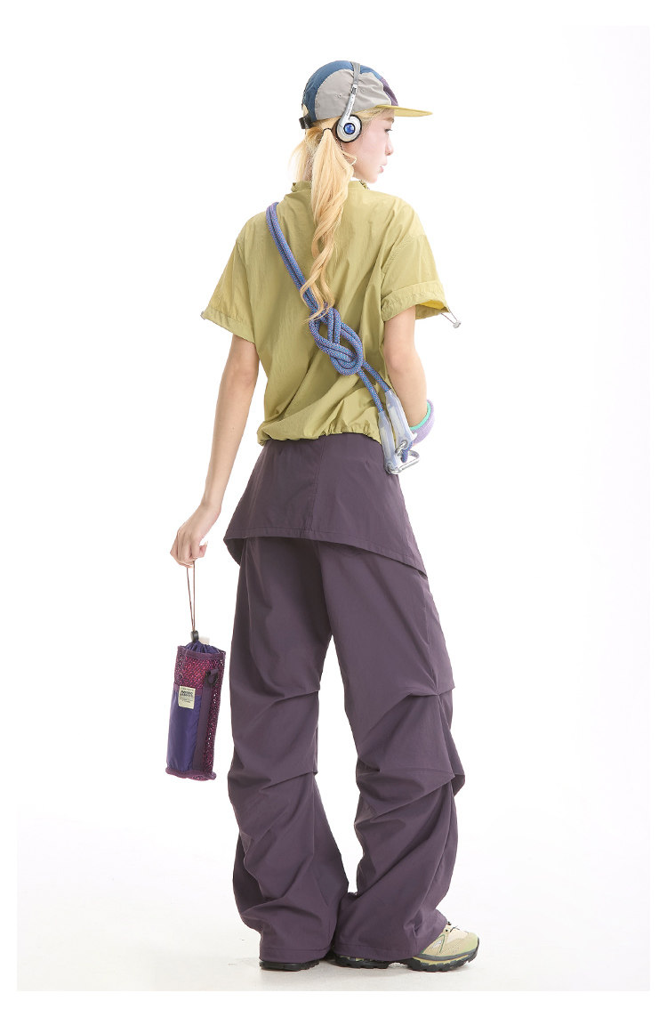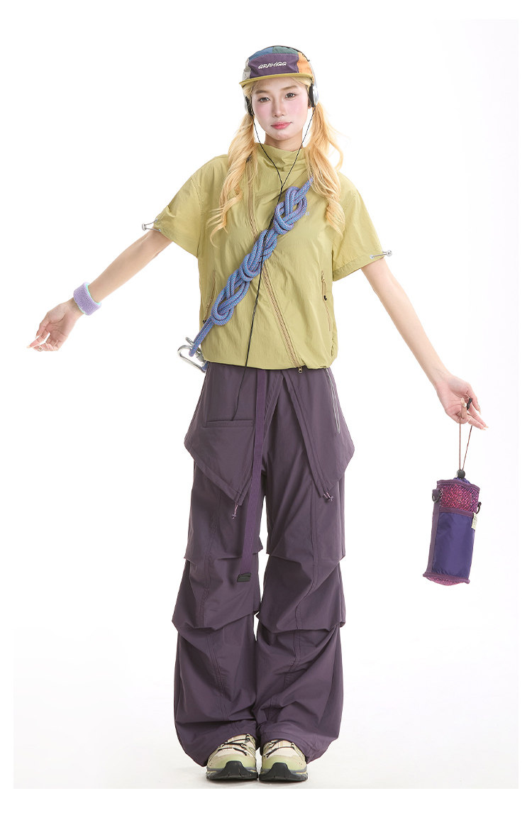 NERESUM美式機能風斜拉鍊短袖襯衫女戶外山系輕薄速乾工裝上衣