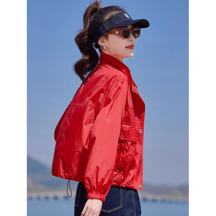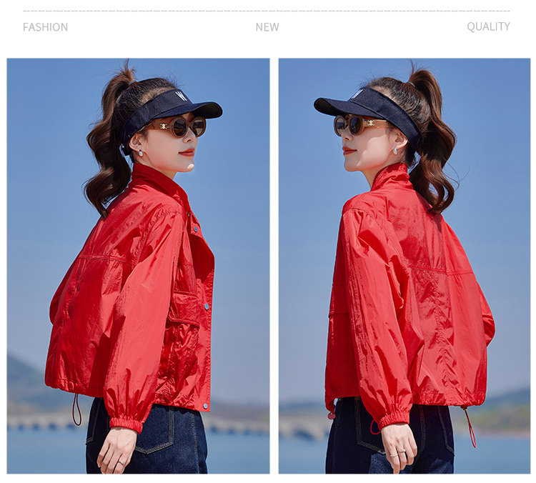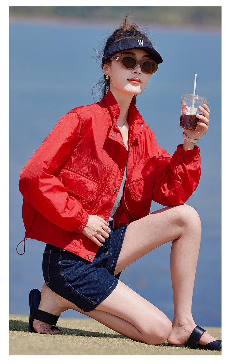 紅色防曬衣輕薄外套女夏季2025新款小個子時尚洋氣夾克防曬服上衣