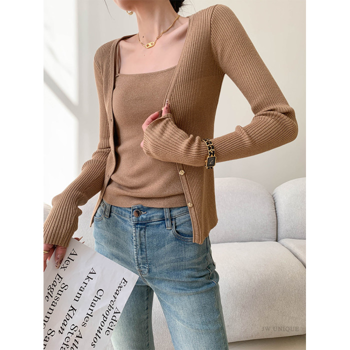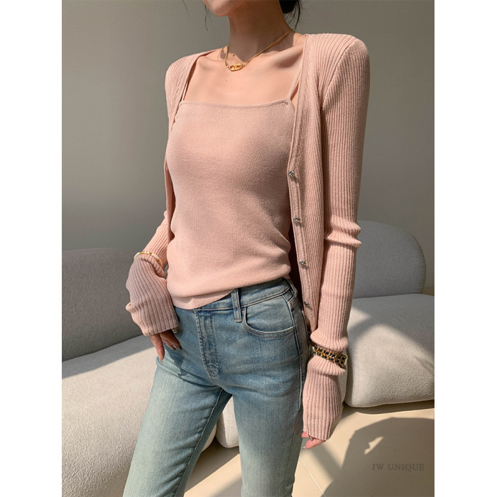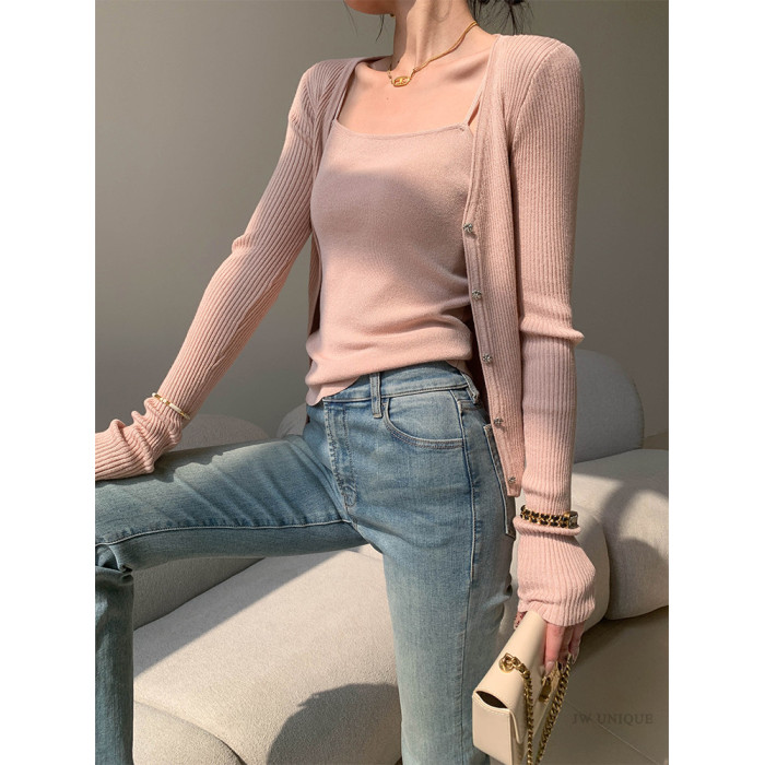 JWUNIQUE酒窩粉色薄款長袖針織開衫女秋冬2026年修身顯瘦防曬上衣