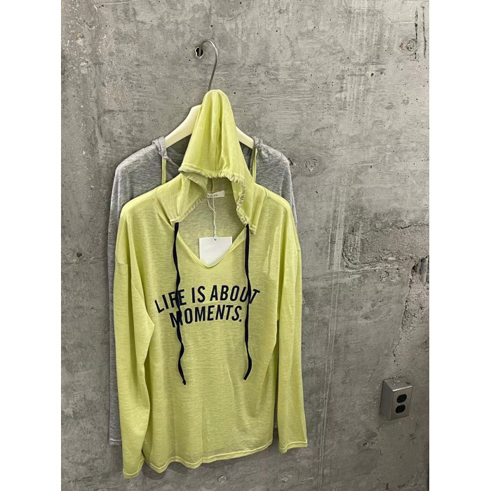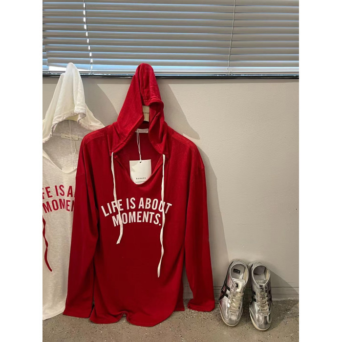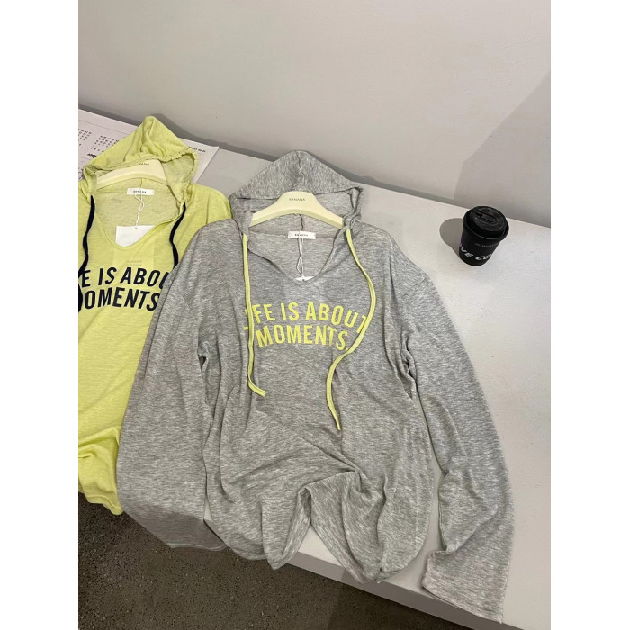 韓國時尚休閒字母印花連帽薄款防曬衫長袖T恤女夏寬鬆中長款上衣