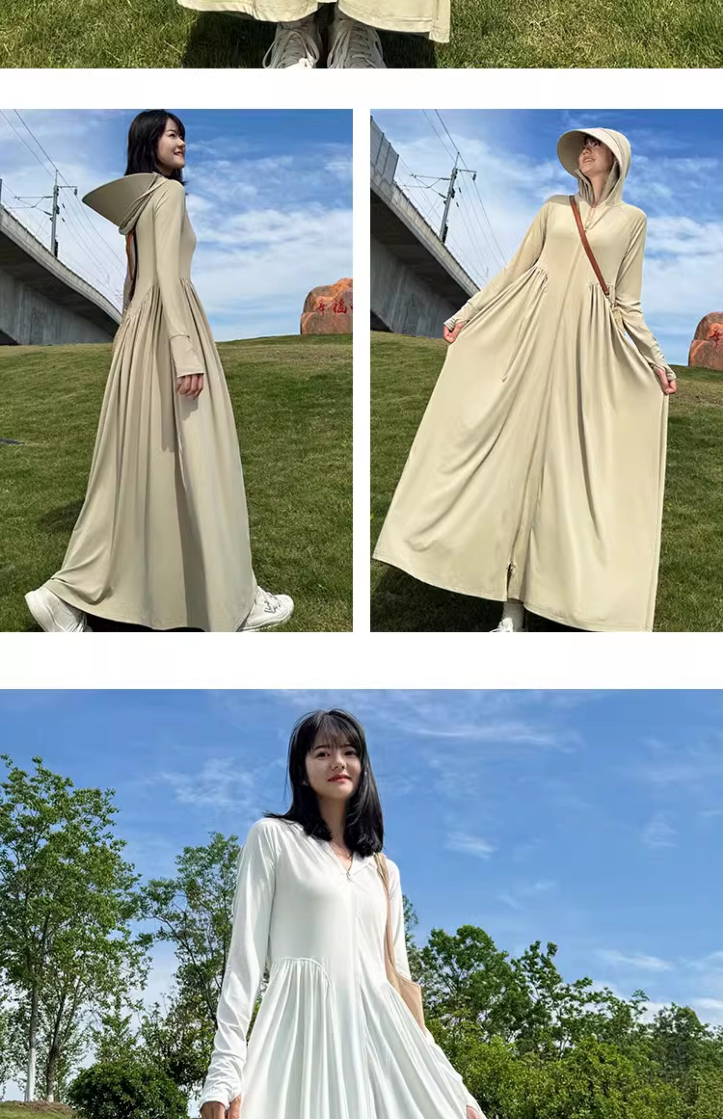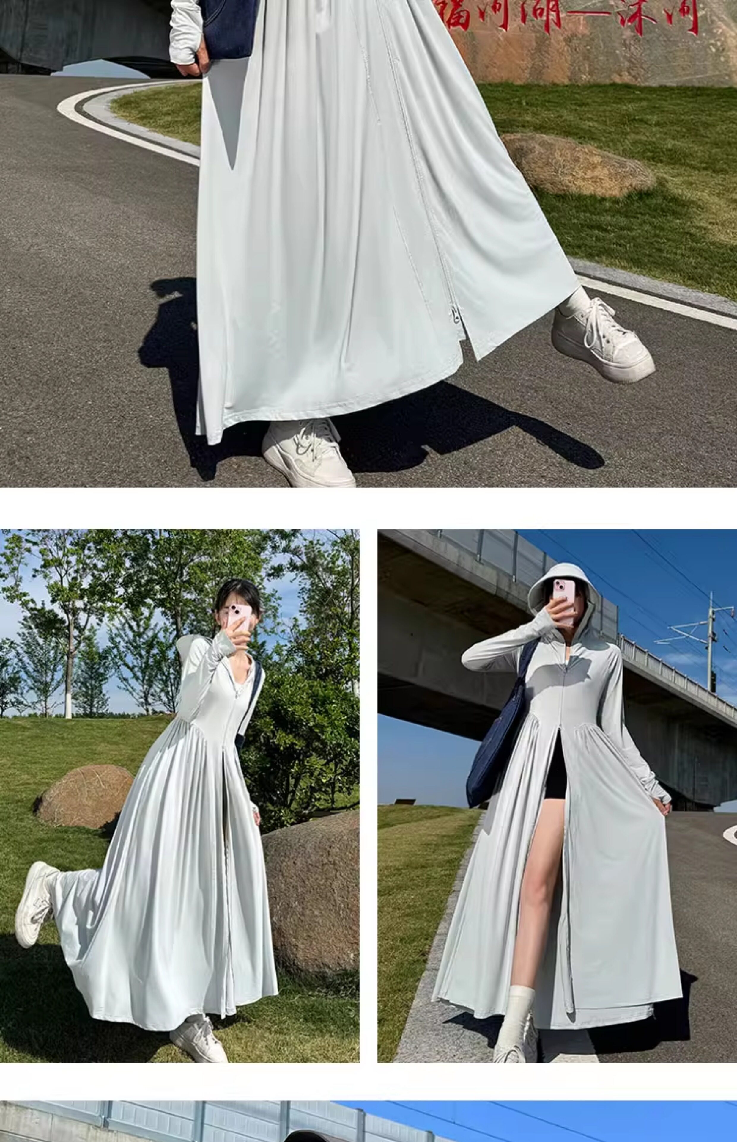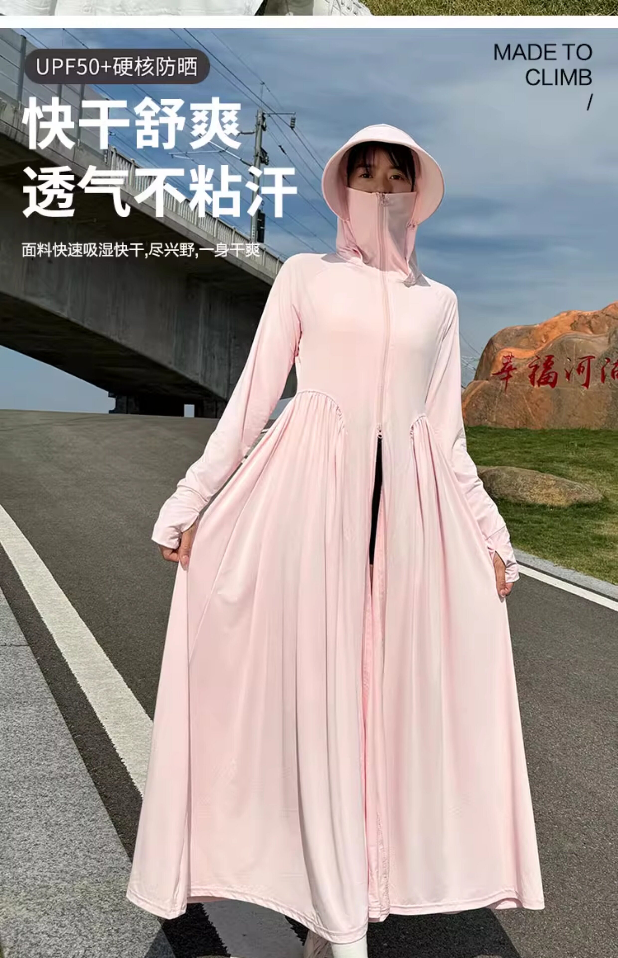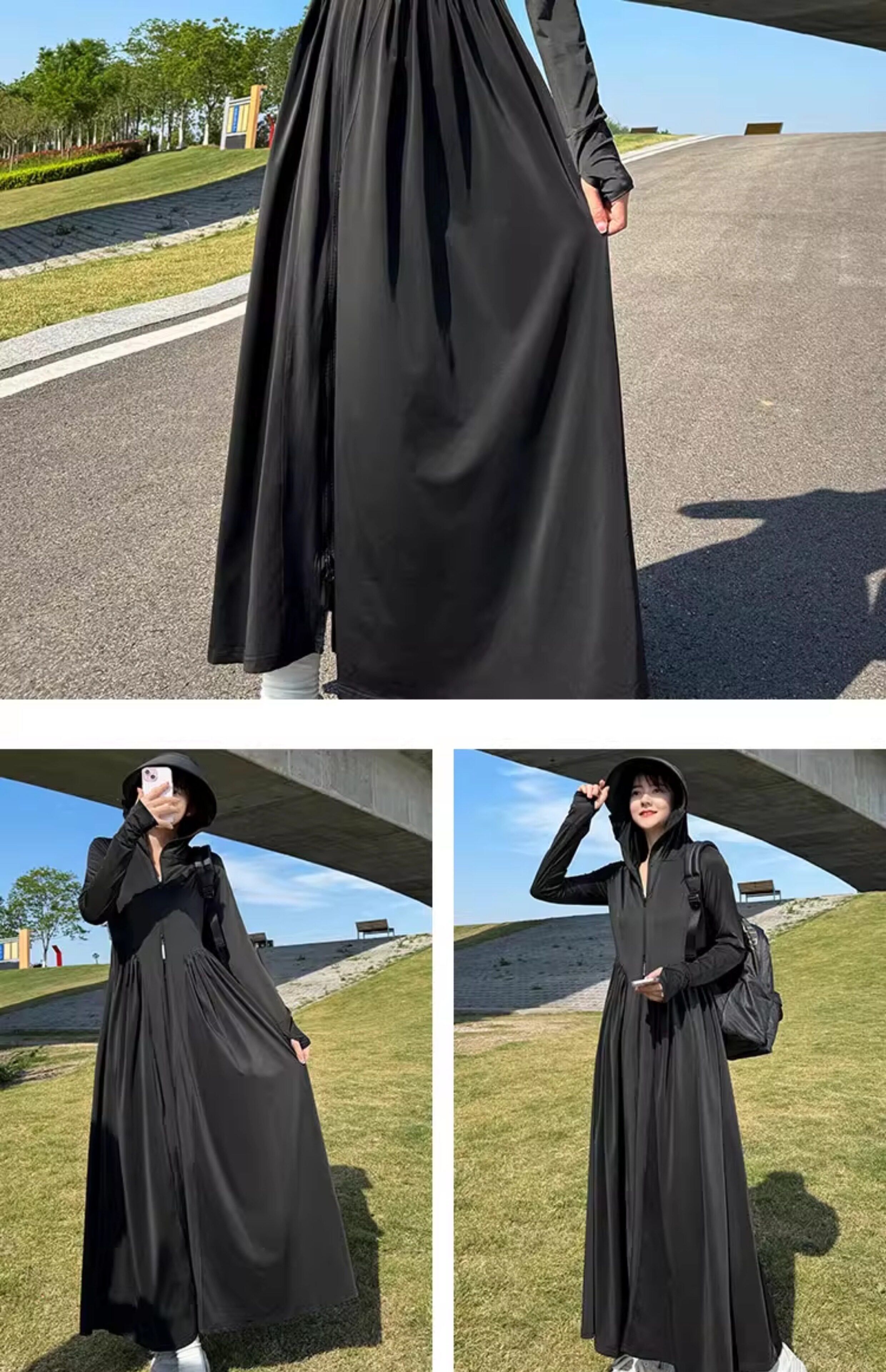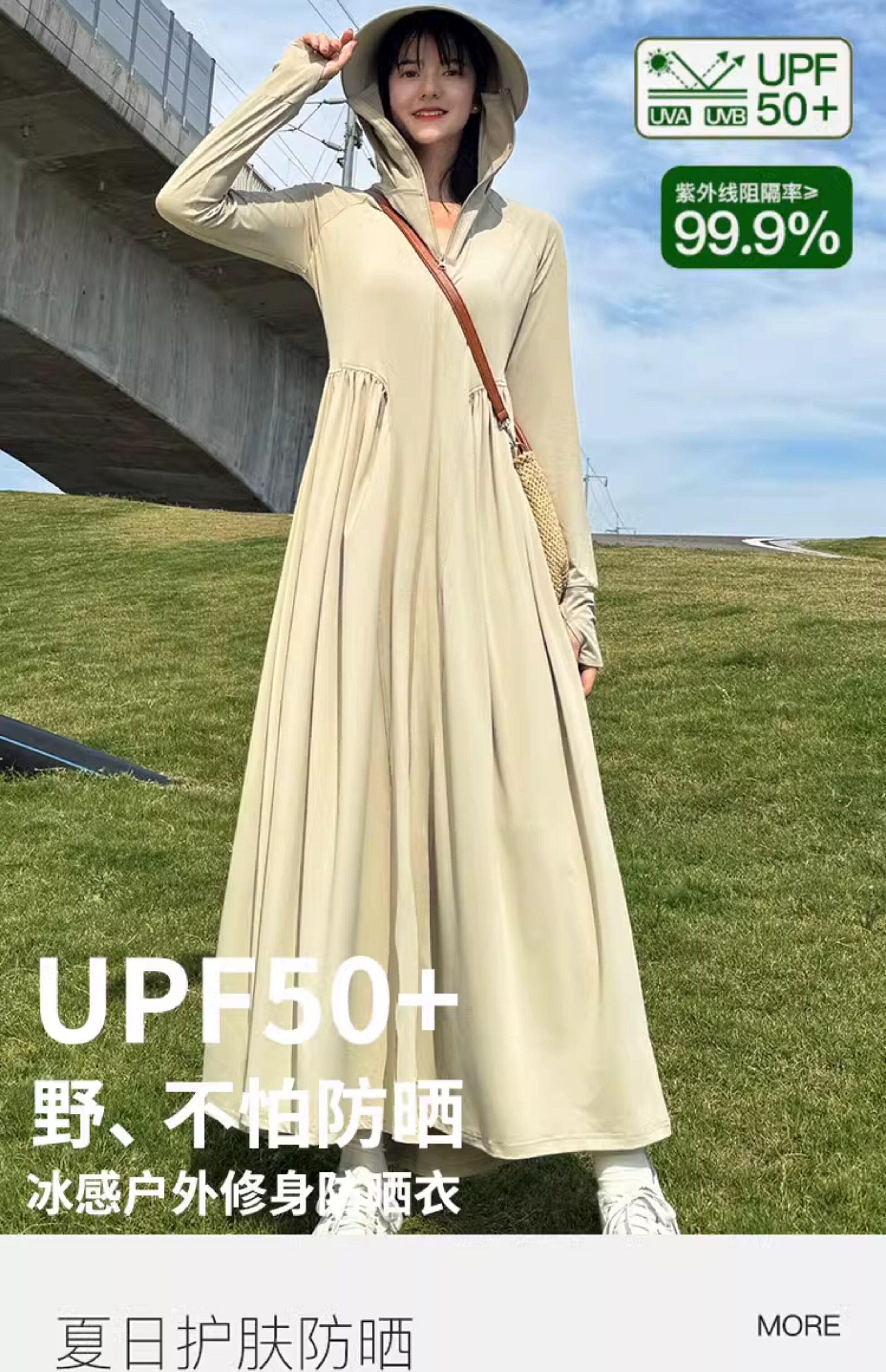 貓人冰絲防曬衣長款女夏全身防紫外線戶外出行輕薄透氣長裙防曬服